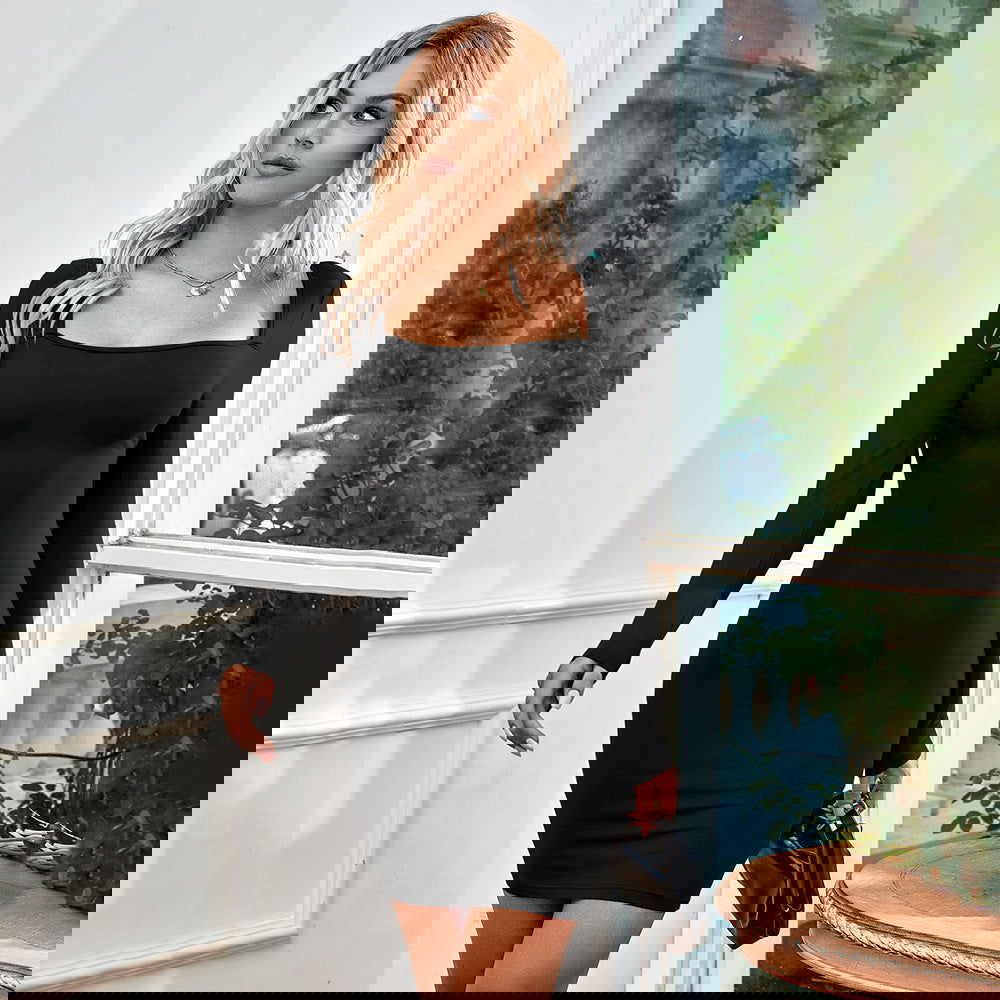Backless Waist Trimming Long Sleeved Knitted Sheath Dress Short Dress
