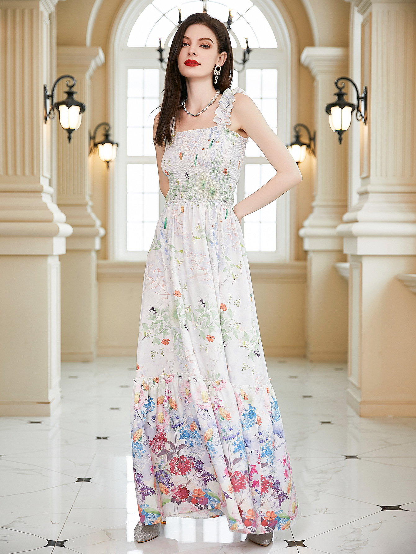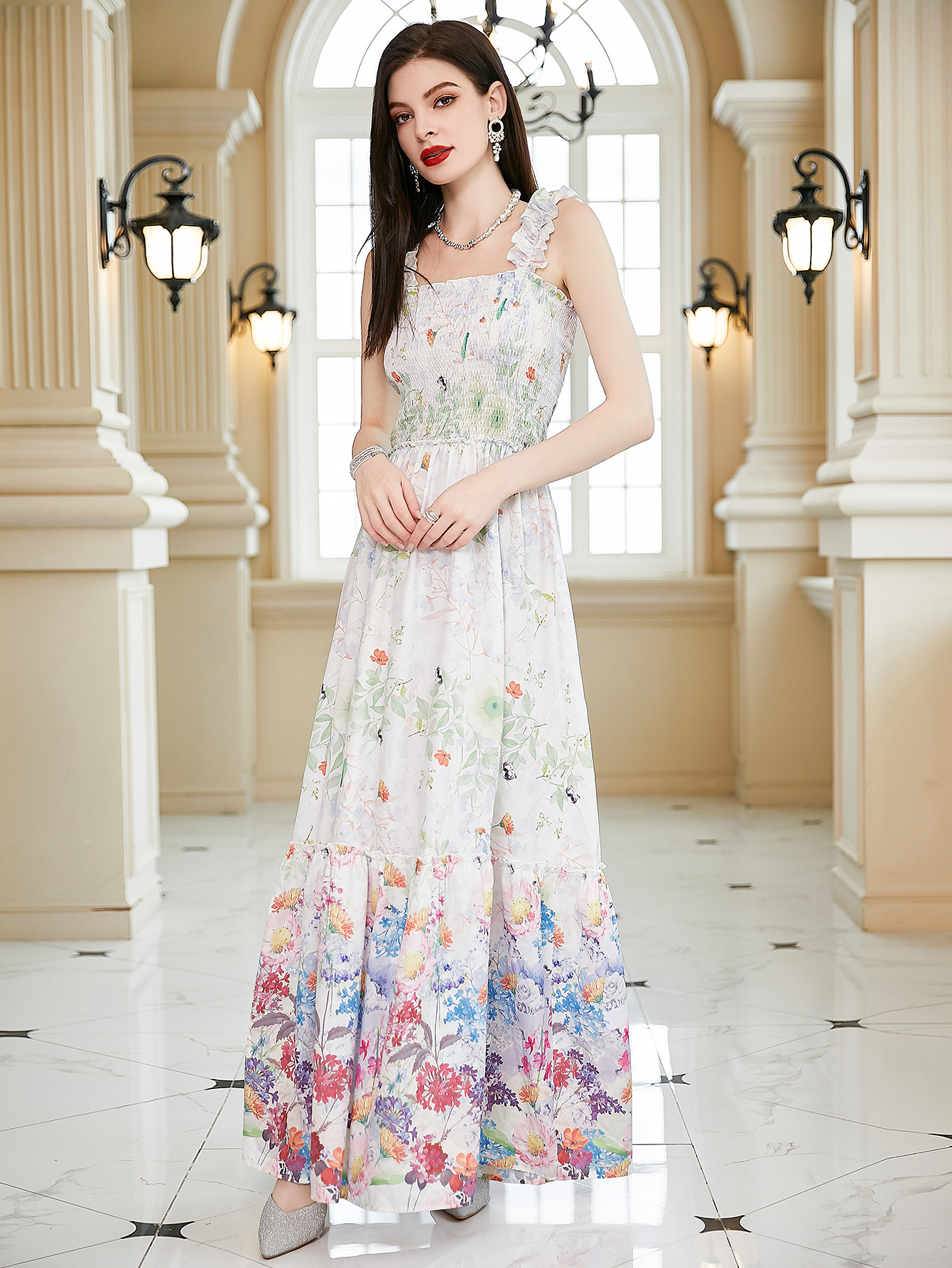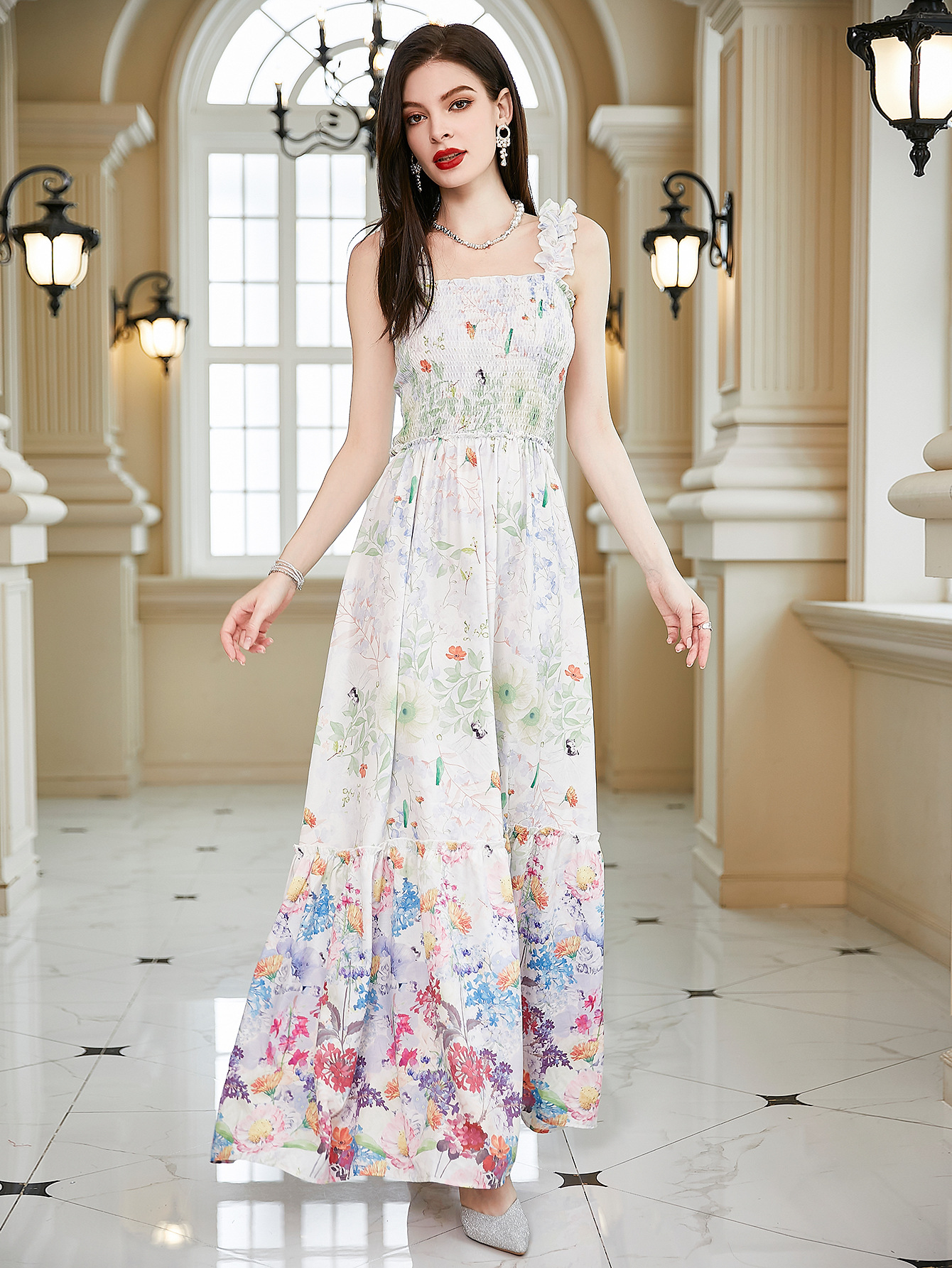 Product Type: A Line Dress.Maxi Dress.Ruffled Dress