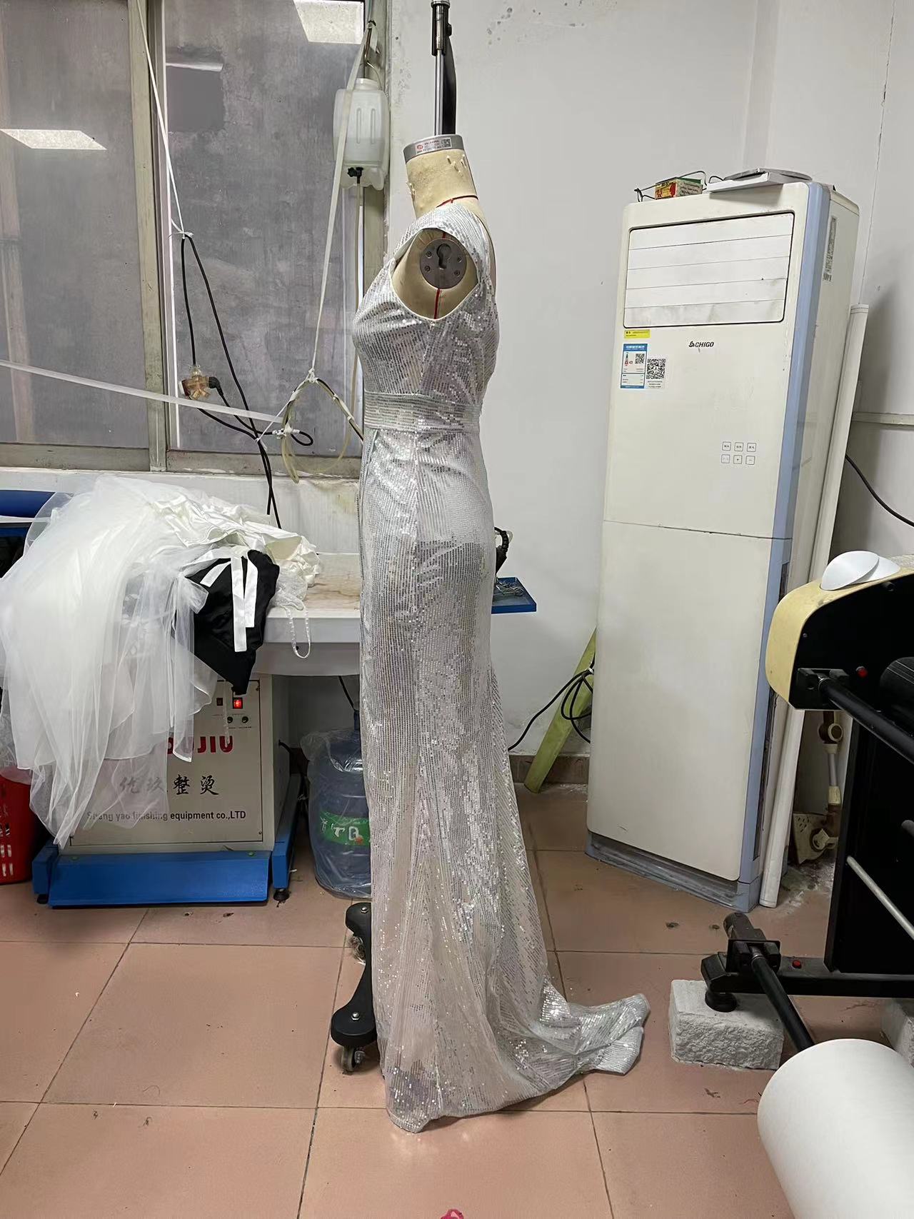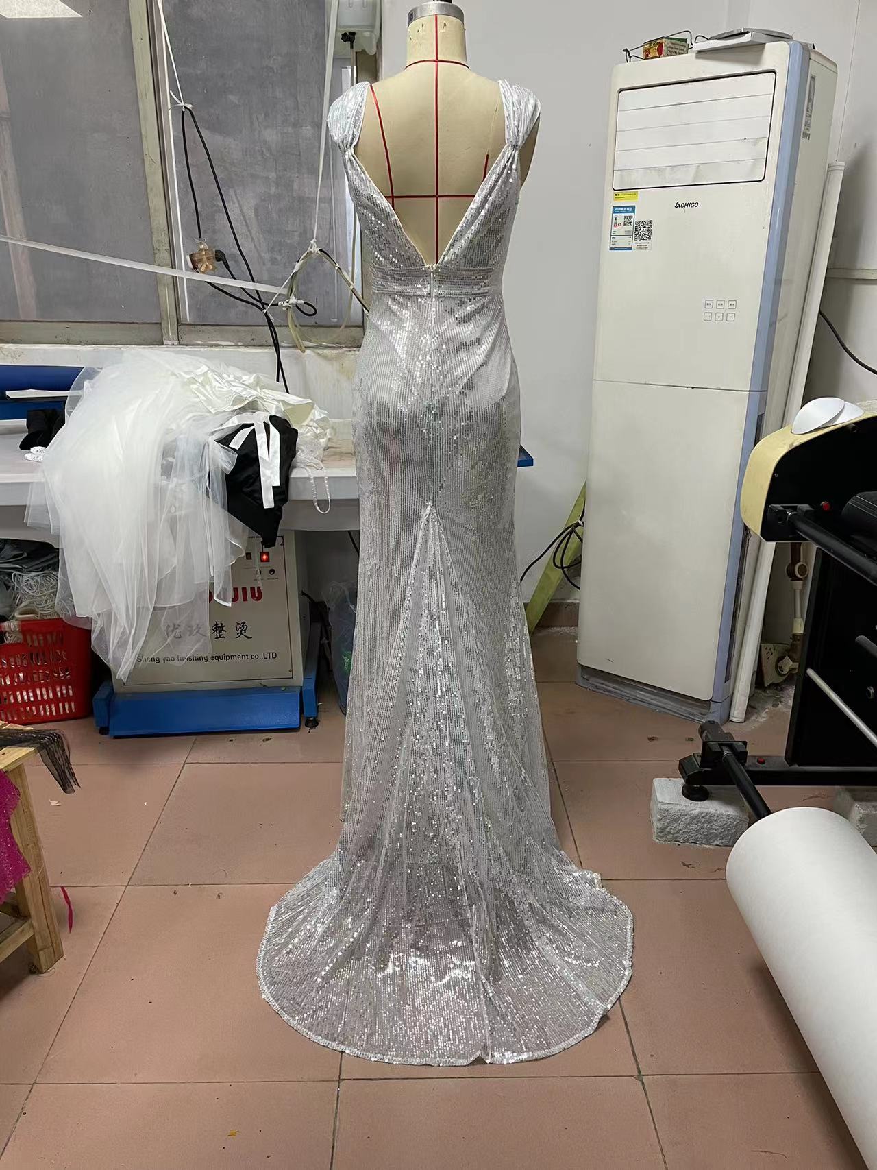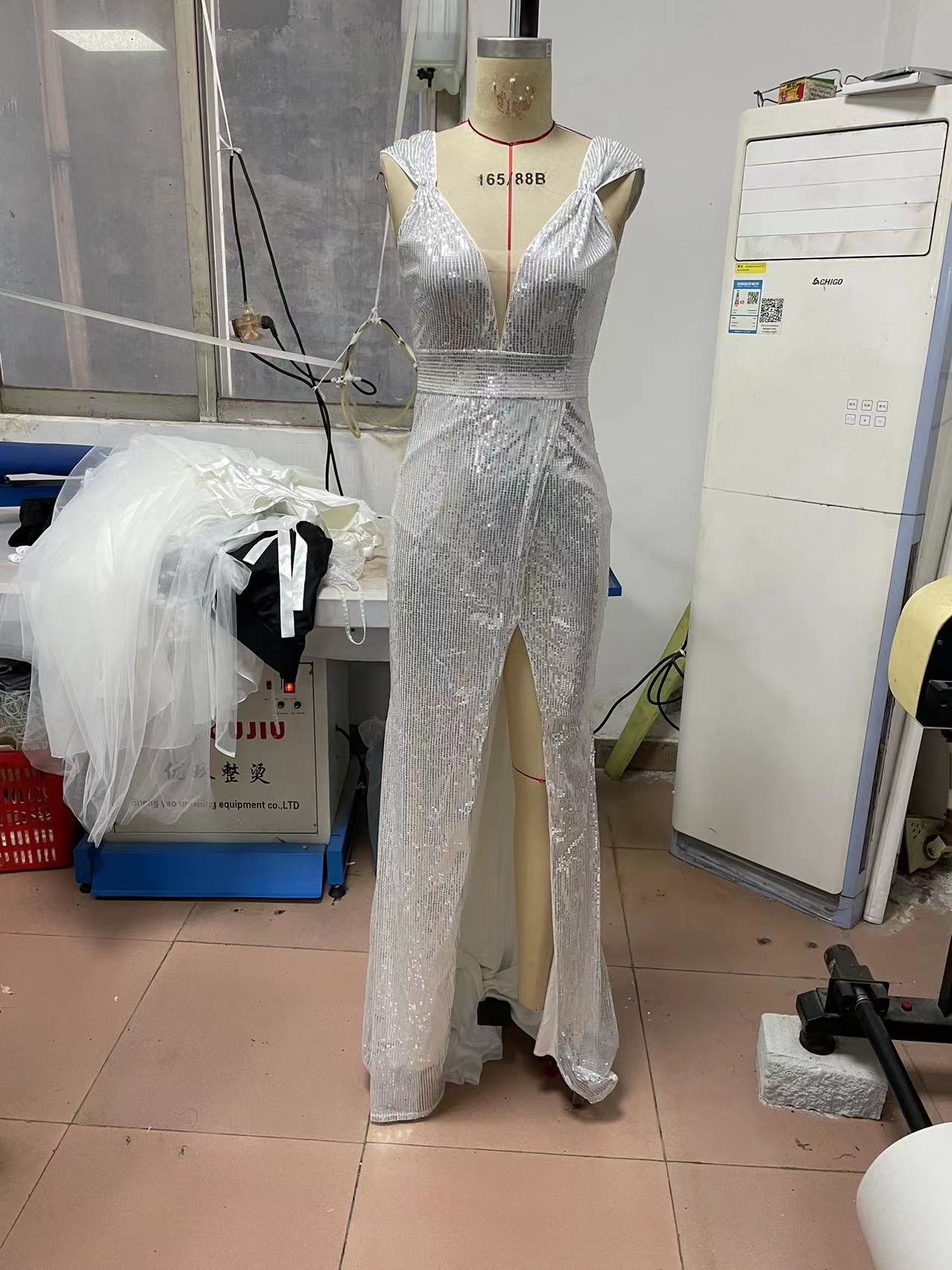 V Neck Slim Hip Wrapped Dress Sequined Split Dress