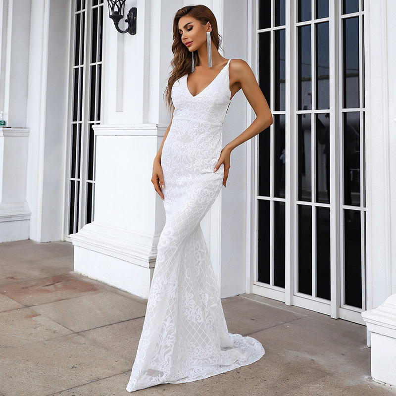 Sequined Geometric Abstract Pattern Strap Dress for Formal Gown Prom