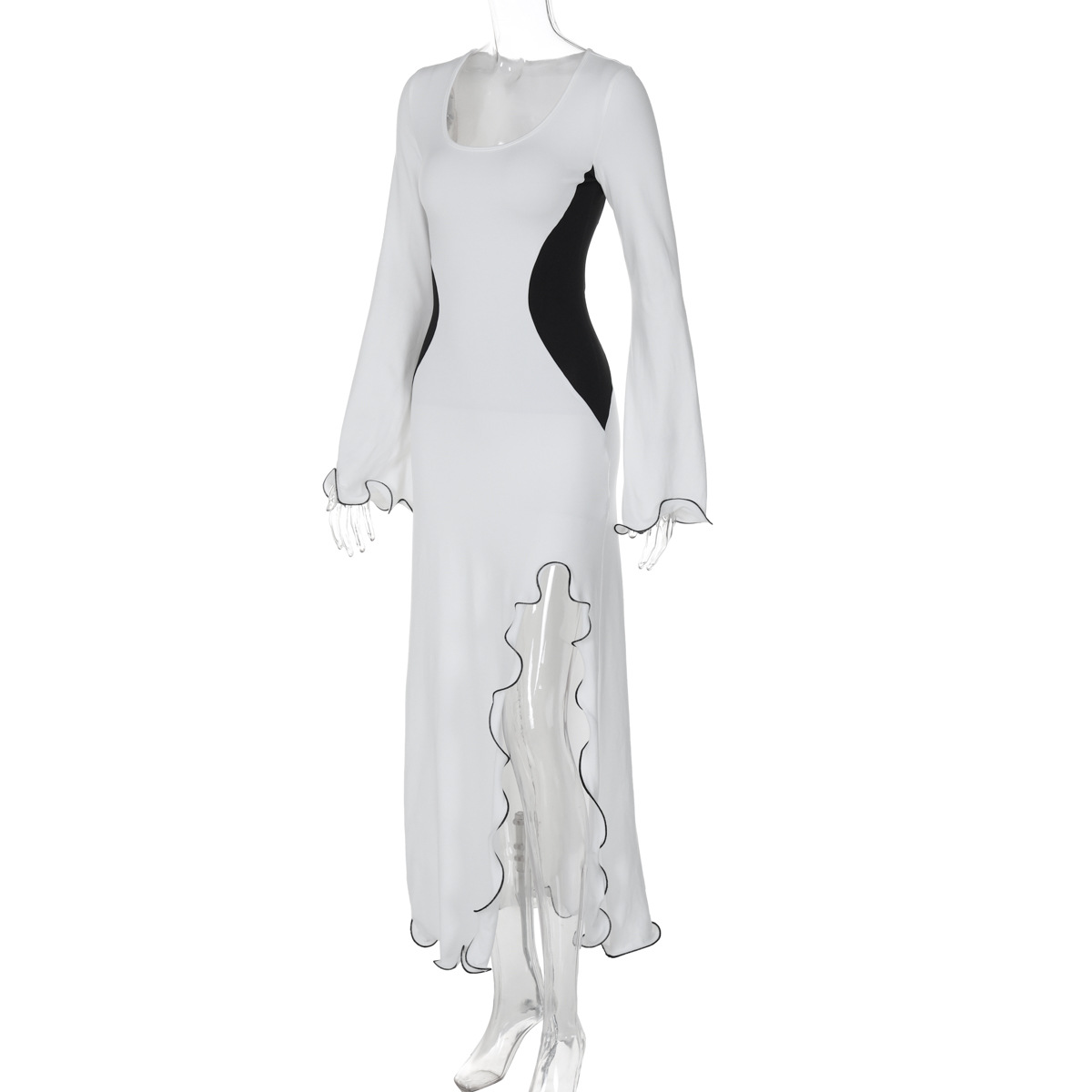 Fall Slim Fit High Waist Stitching Split Long Sleeve