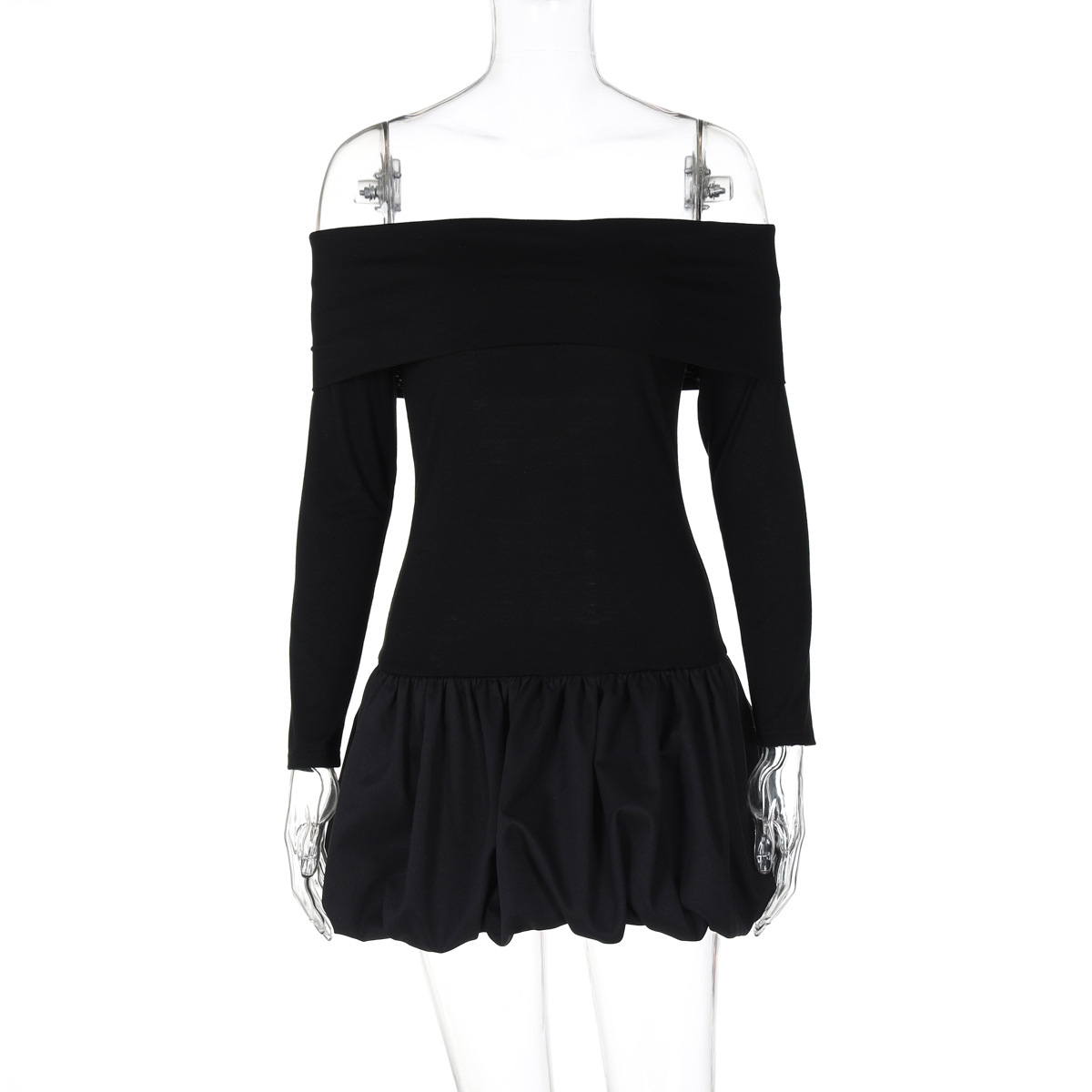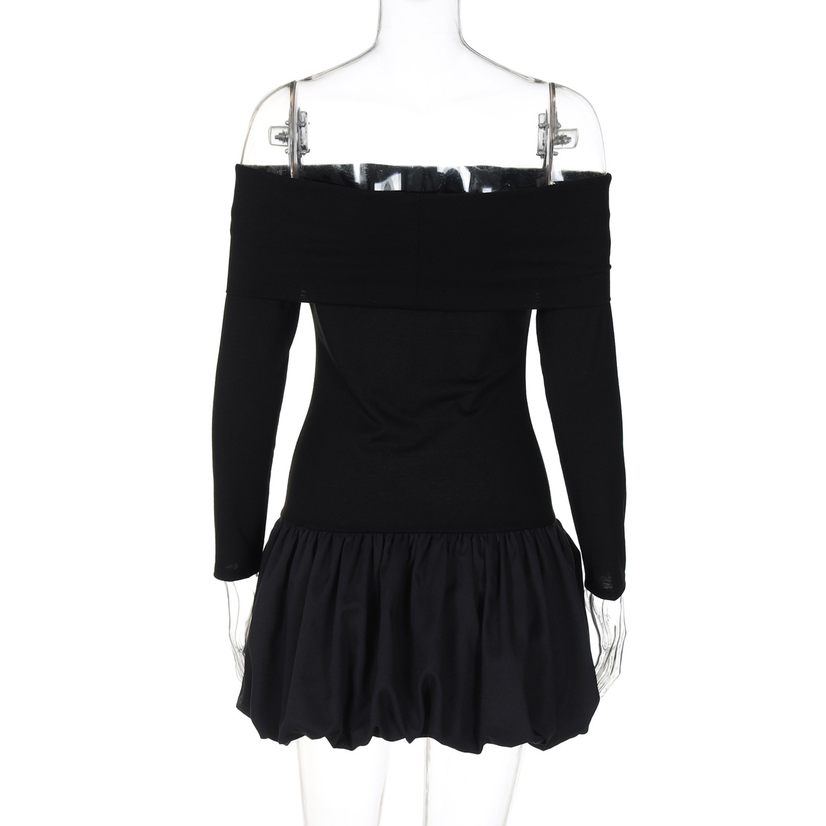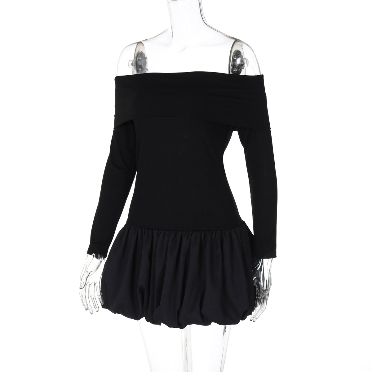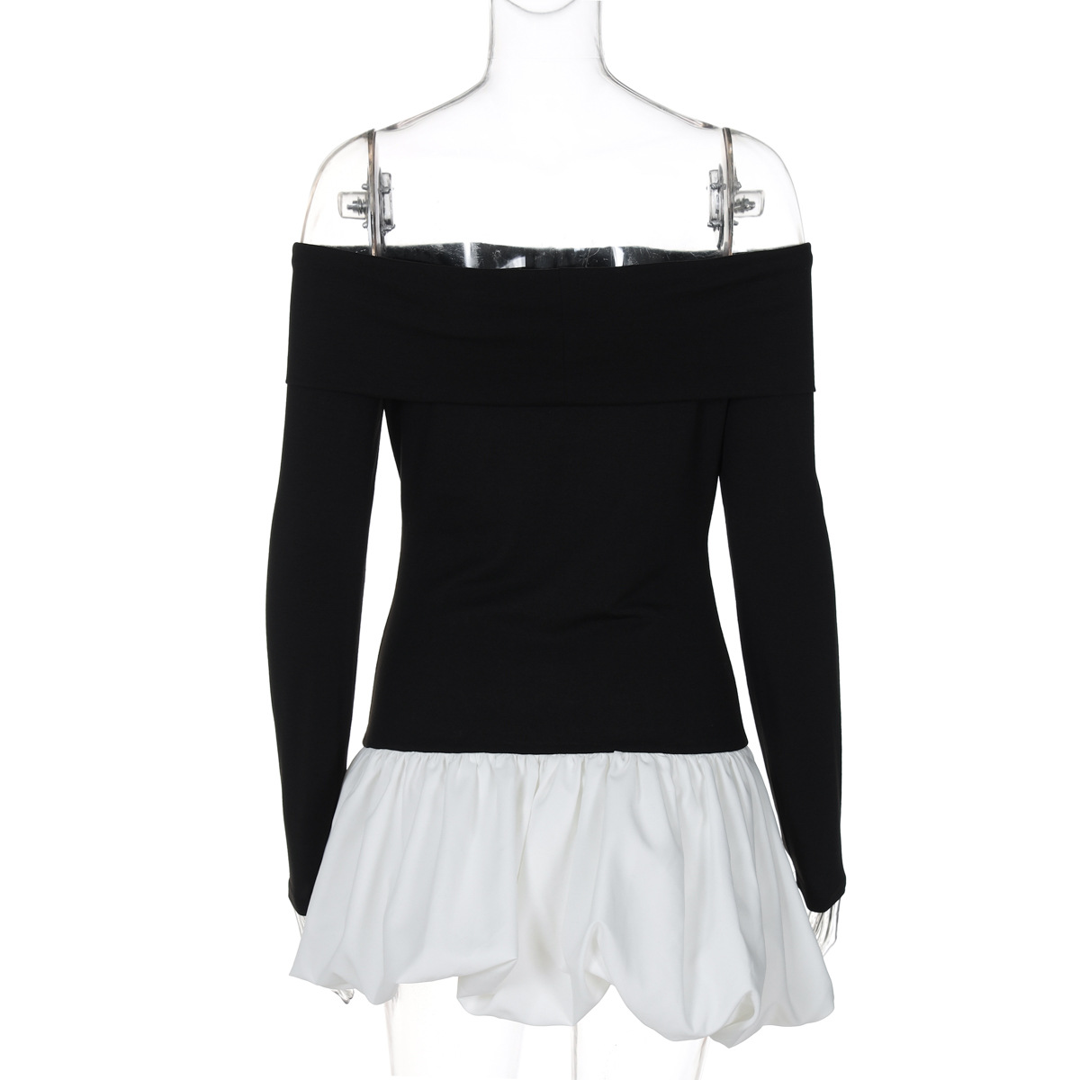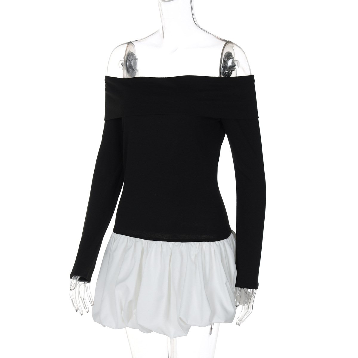 Retro Gracefuloff Shoulder Long Sleeve off the Shoulder Stitching Short Tulle Tutu