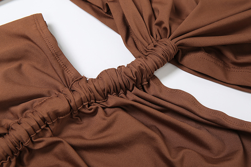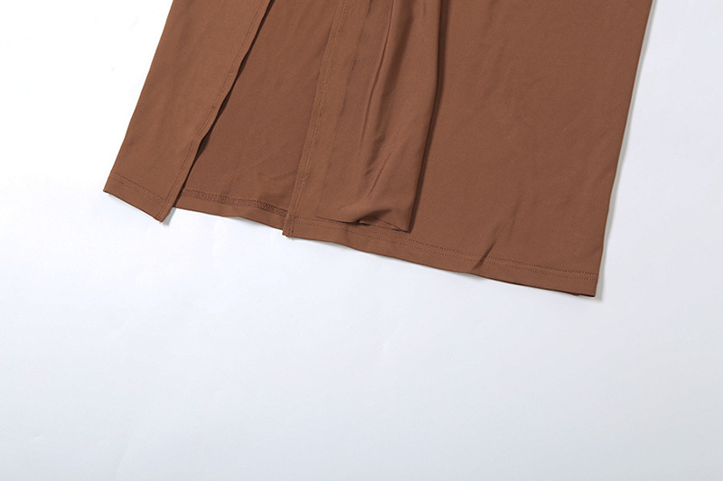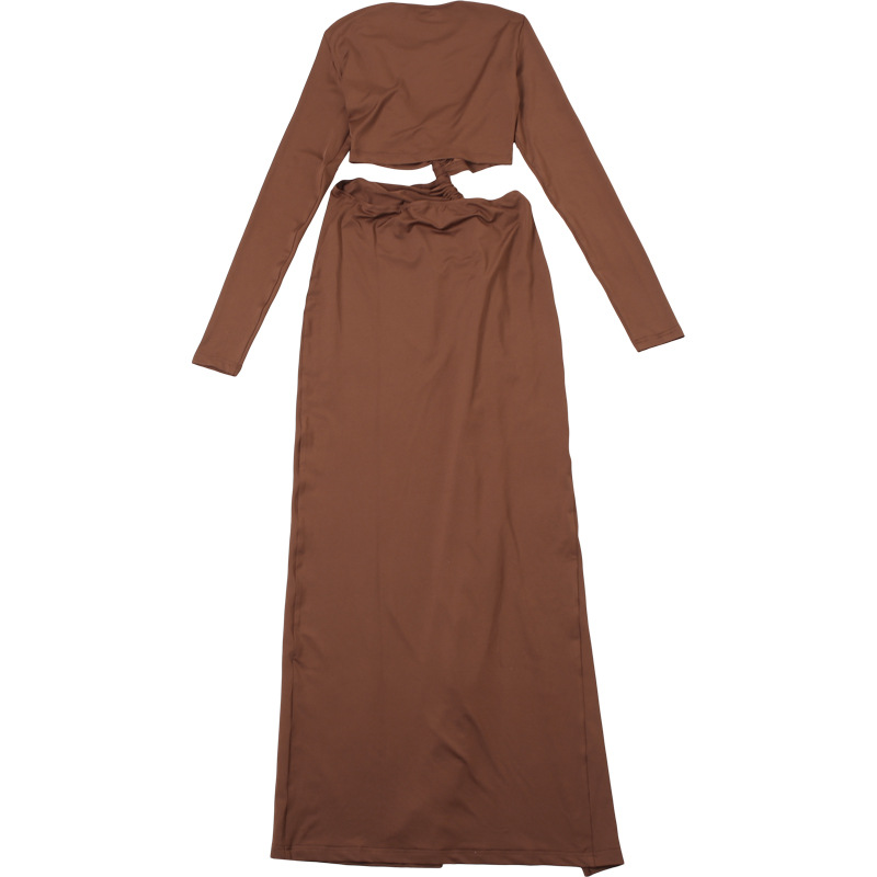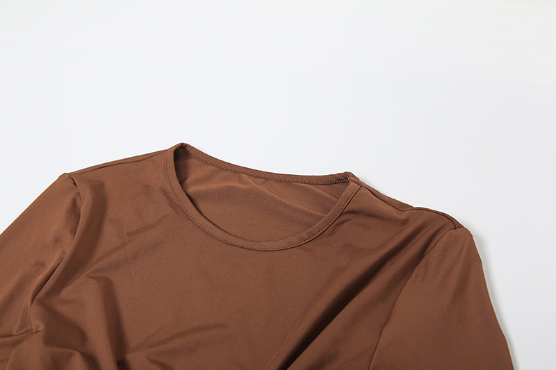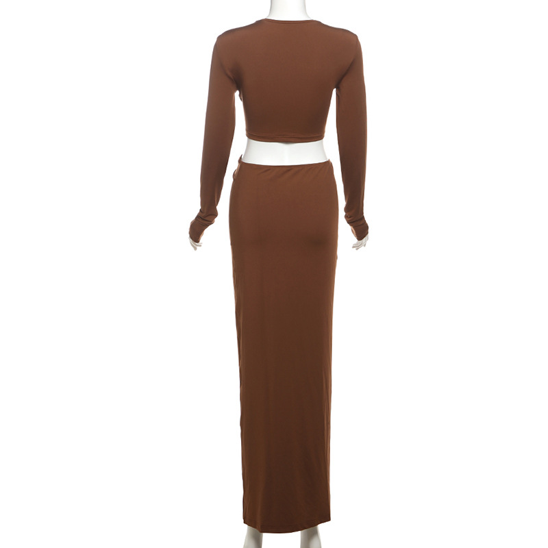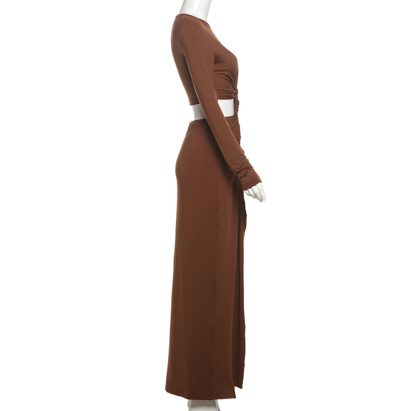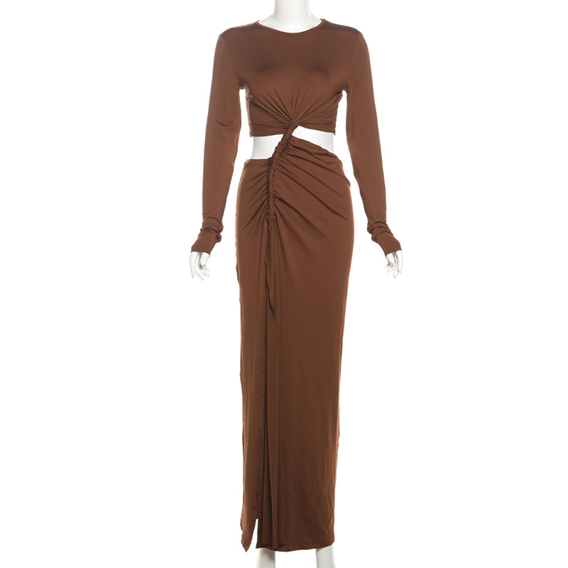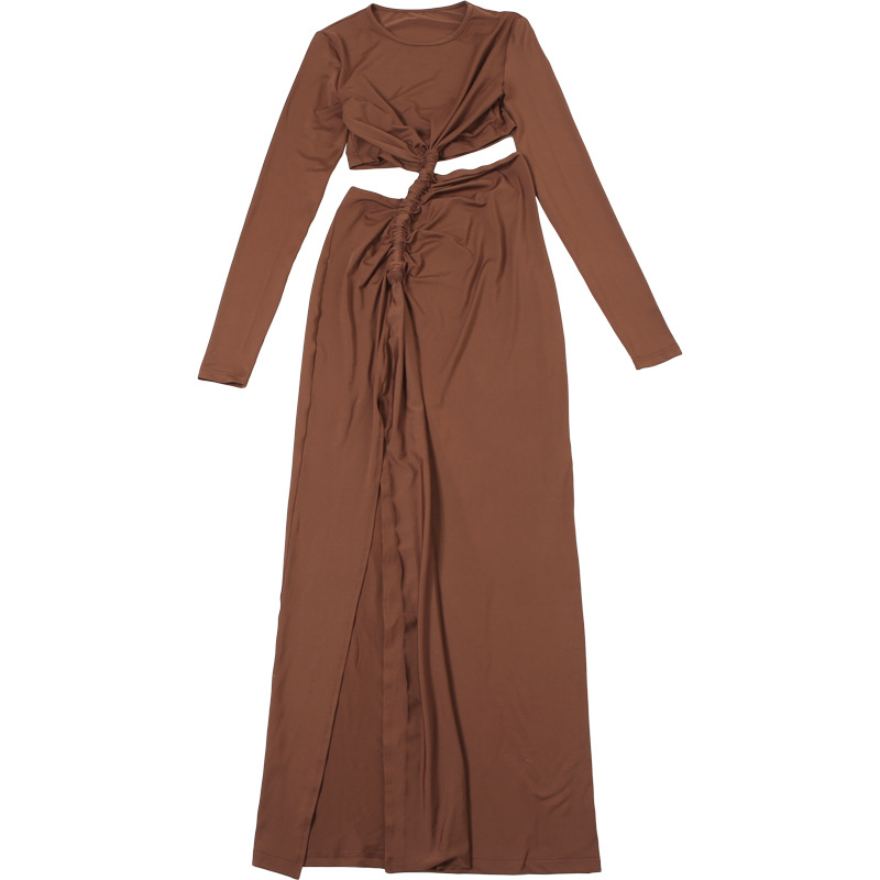 Elegant Solid Color round Neck High Slit Slim Long Sleeve Dress