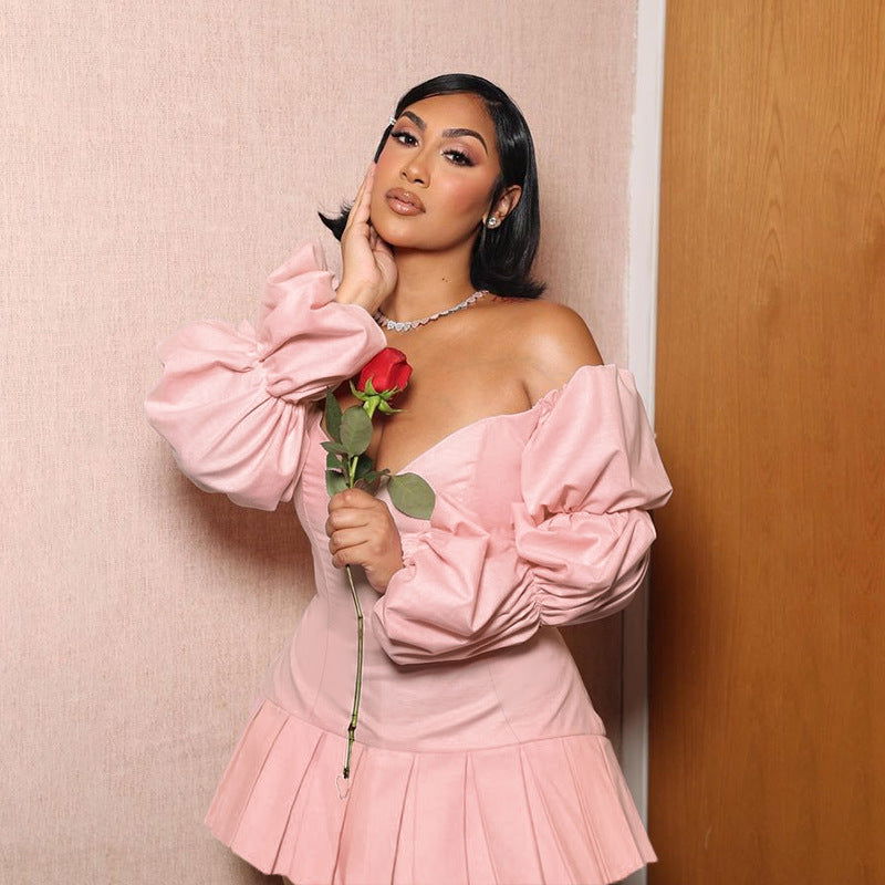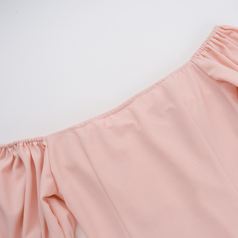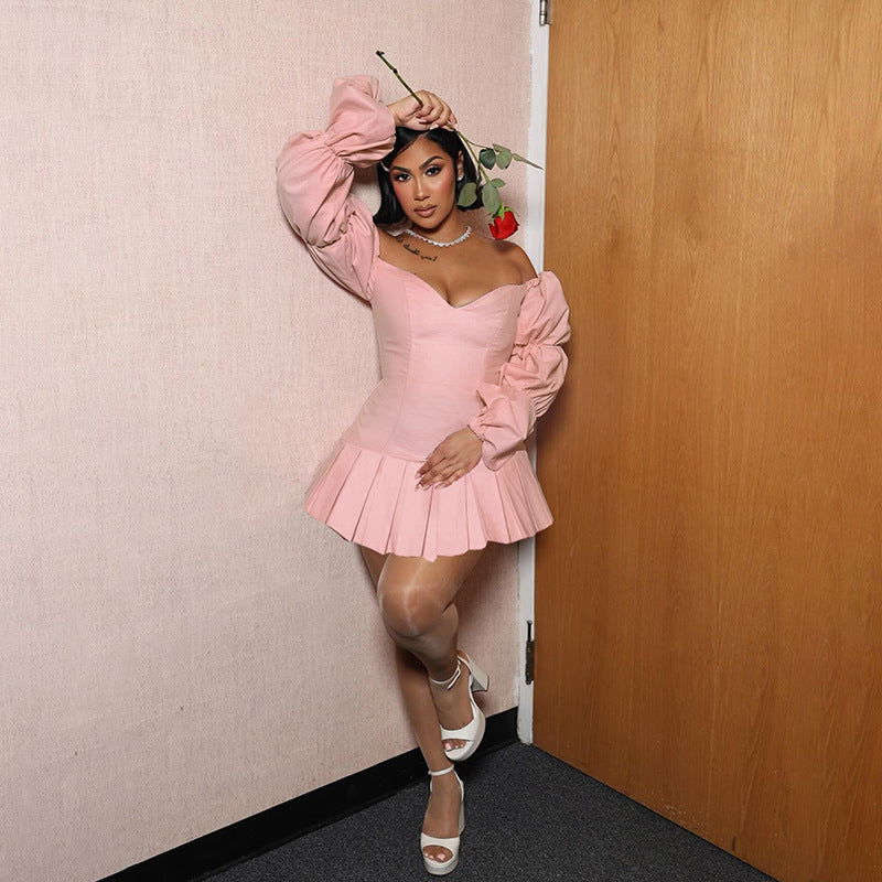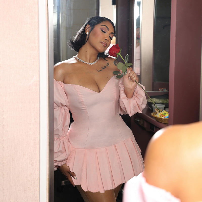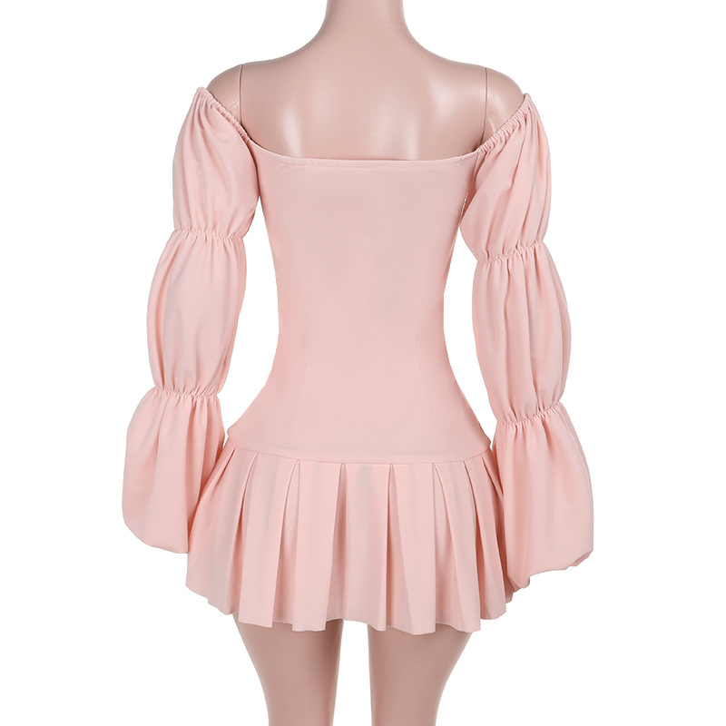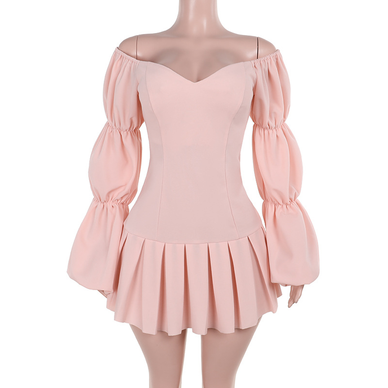 Elegant off the Shoulder Lantern Sleeve Pleated