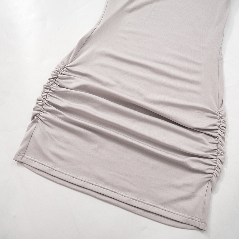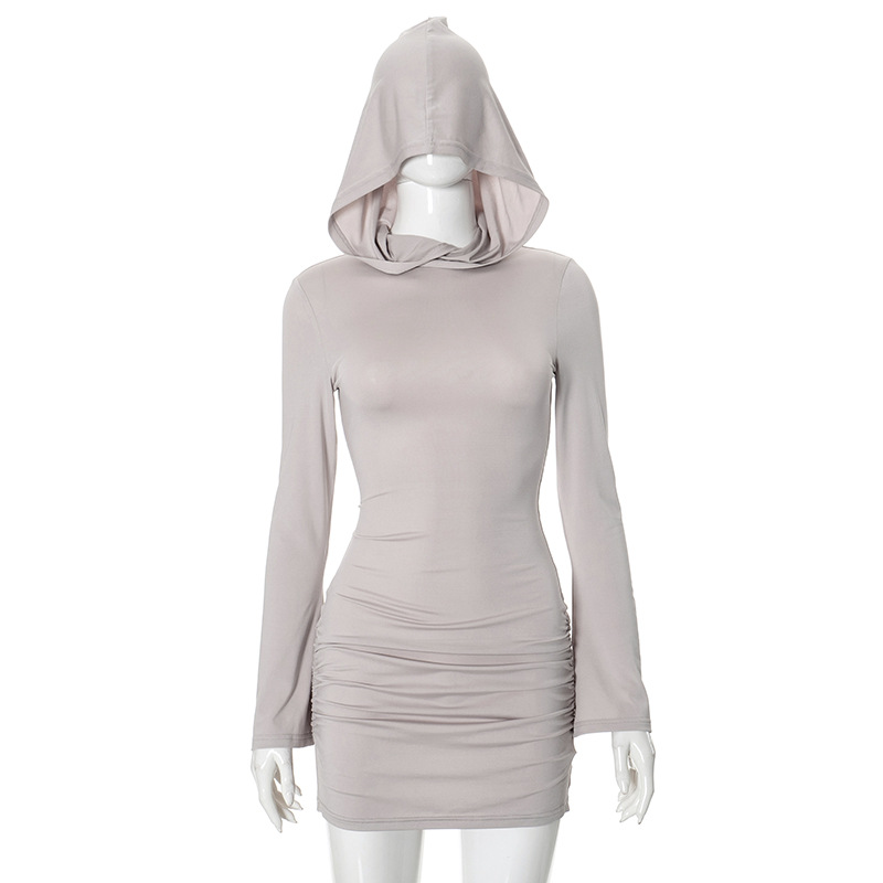 Solid Color Long Sleeve Hooded Pleated Hip High Waist Short Dress