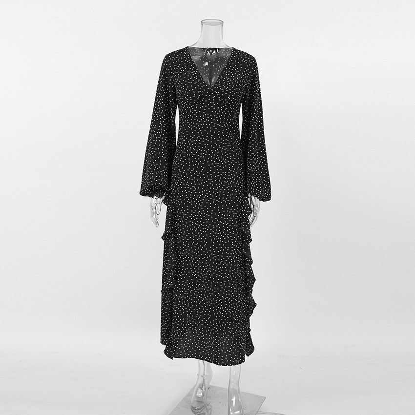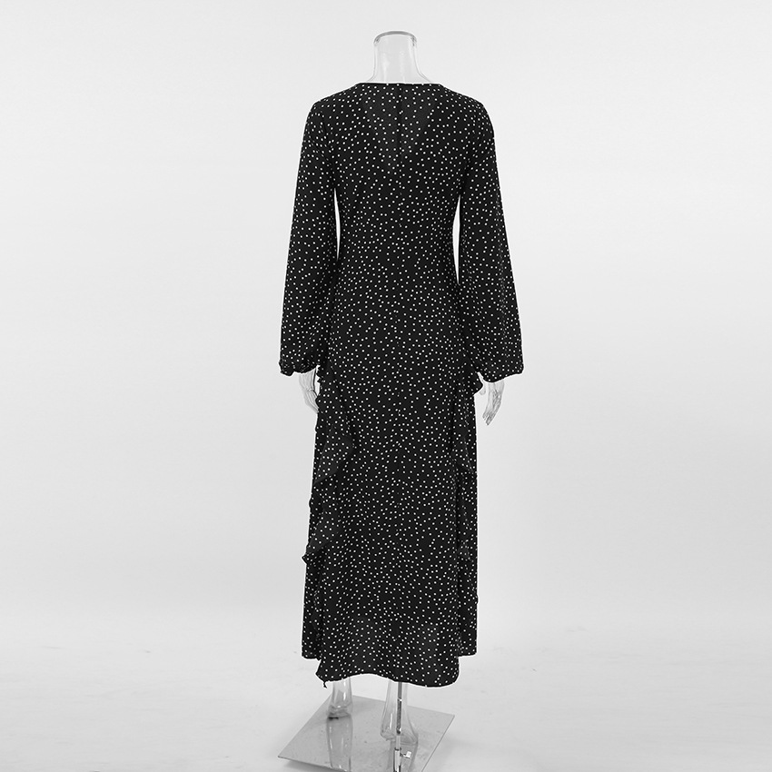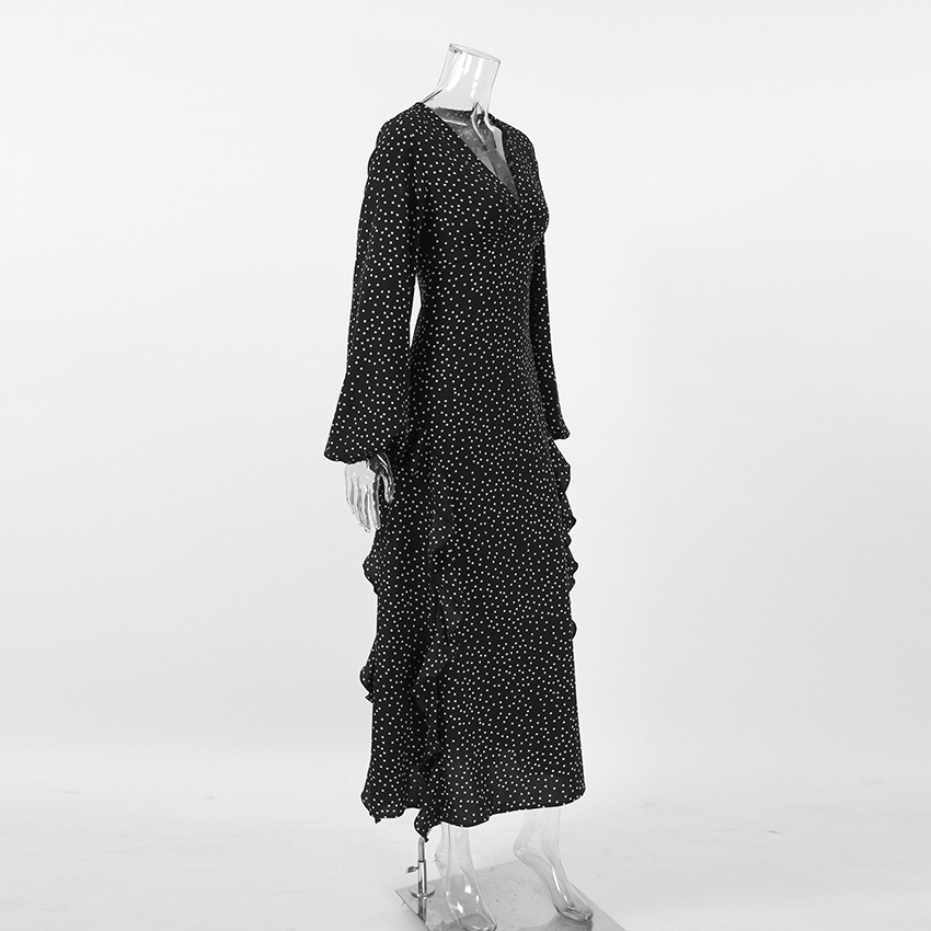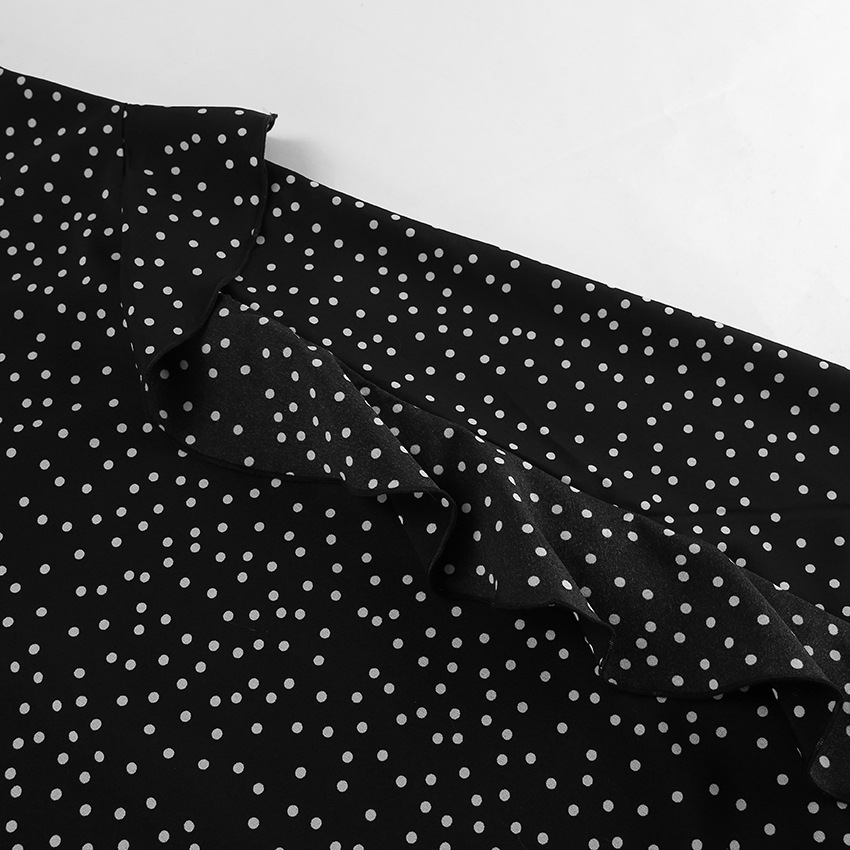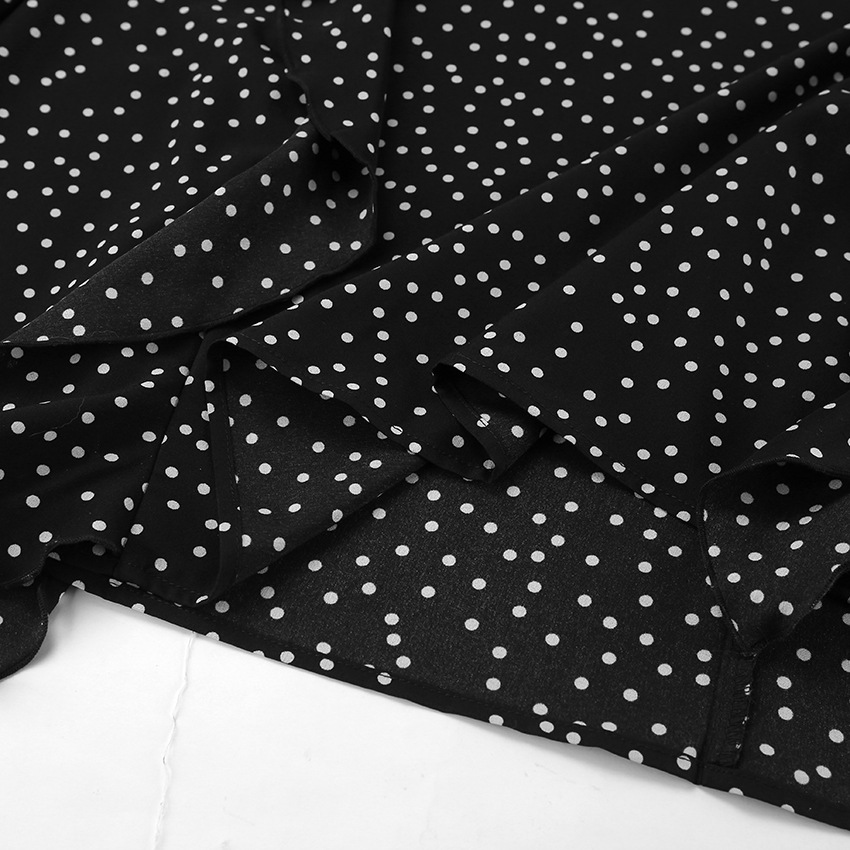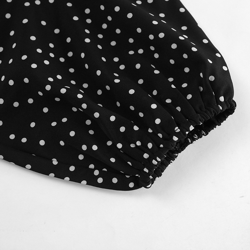 Retro V neck Puff Sleeve Polka Dot All Matching Long Sleeve Ruffled Elegant Slim Fit Slimming