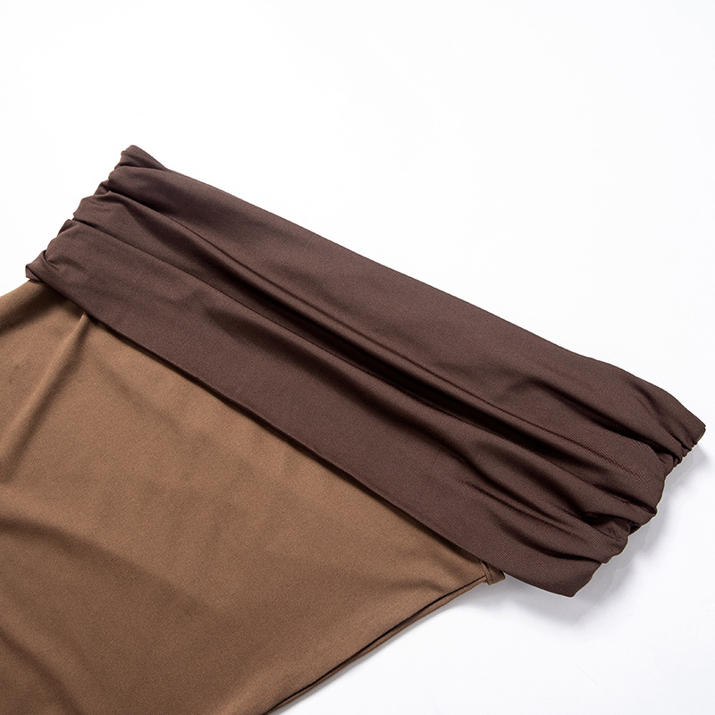 Diagonal Collar Contrast Color Sleeveless High Waist Dress