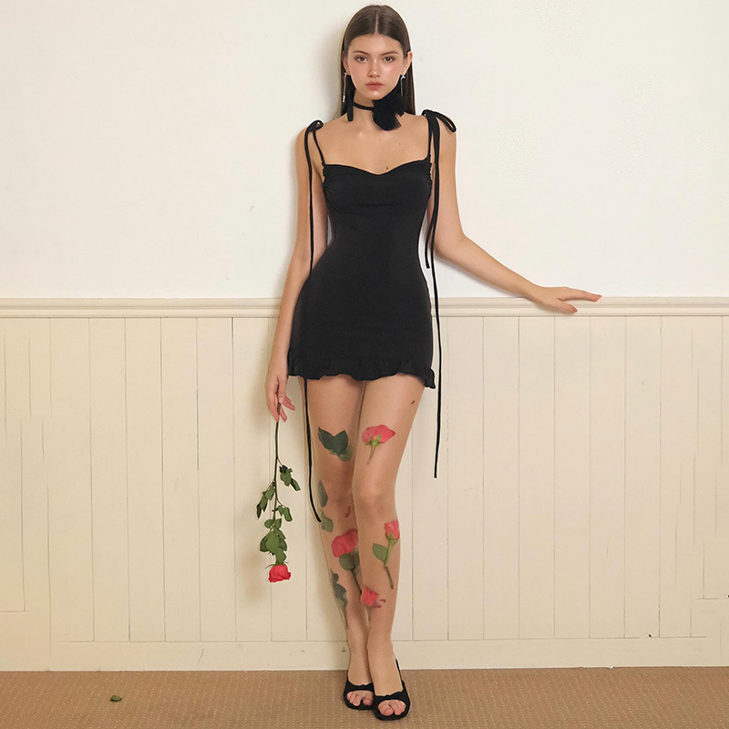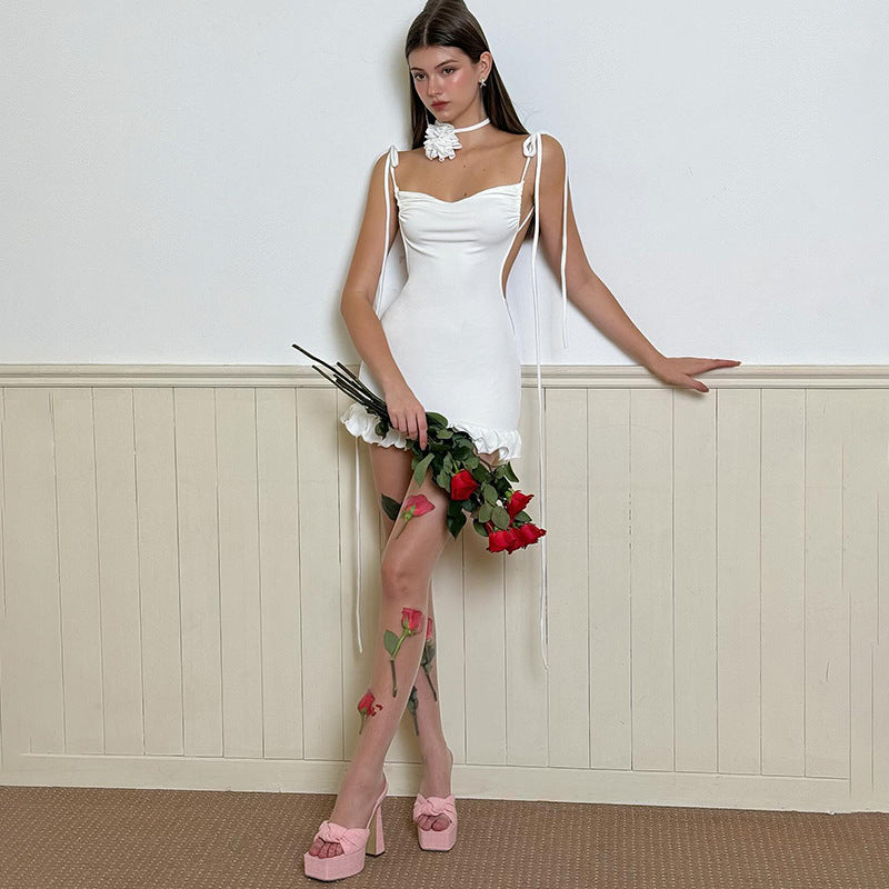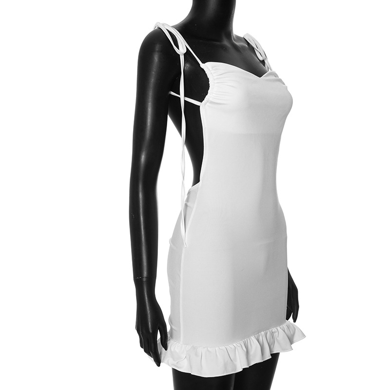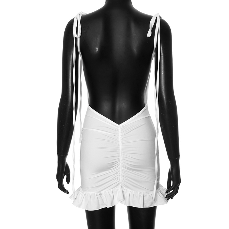 Solid Color Cami Dress Backless Pleated Dress