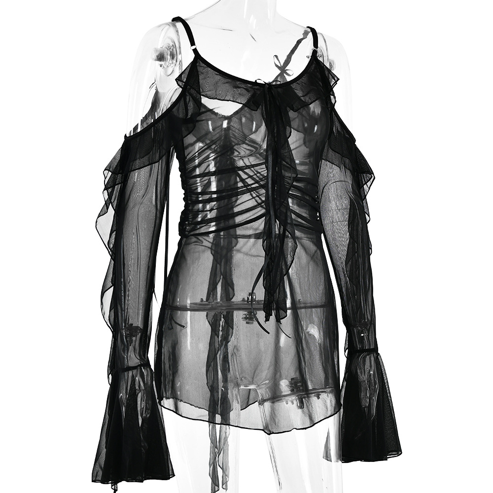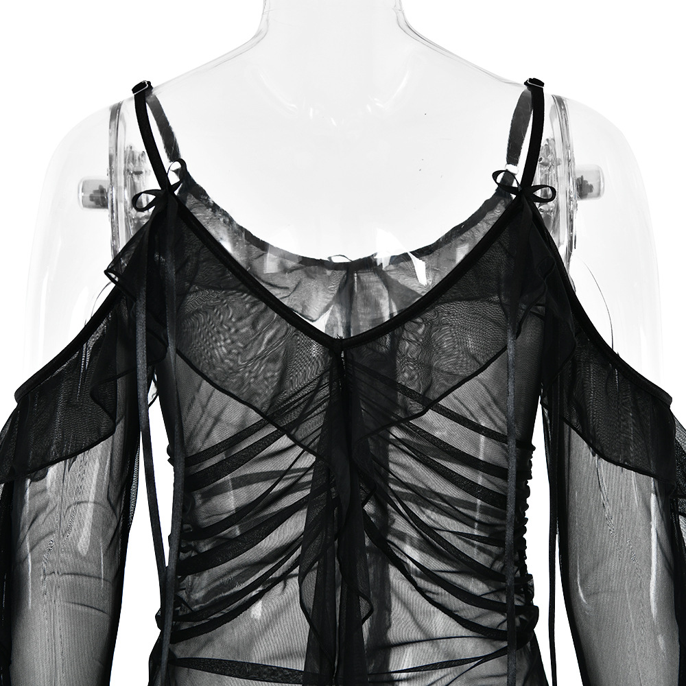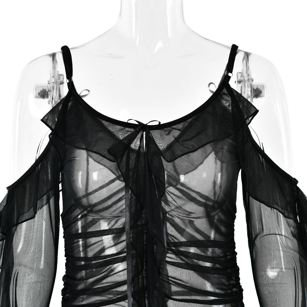 Dress Straps Tulle Sheer Long Sleeve Slim Fit Dress