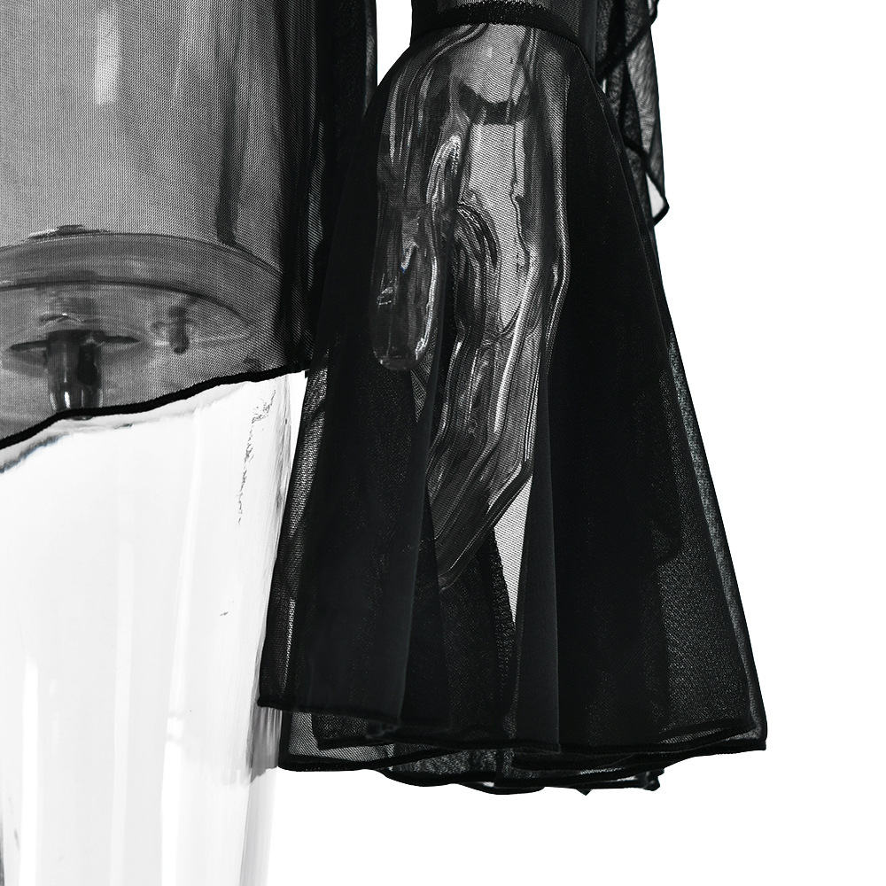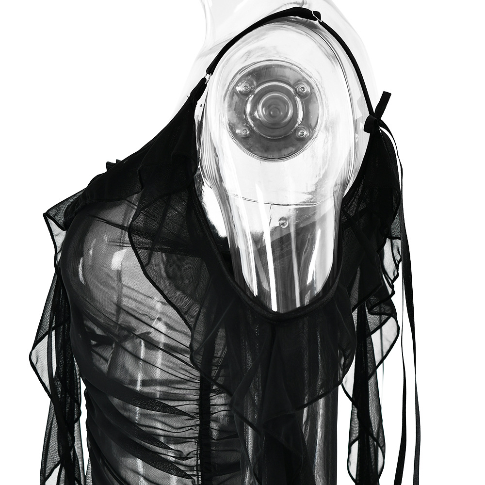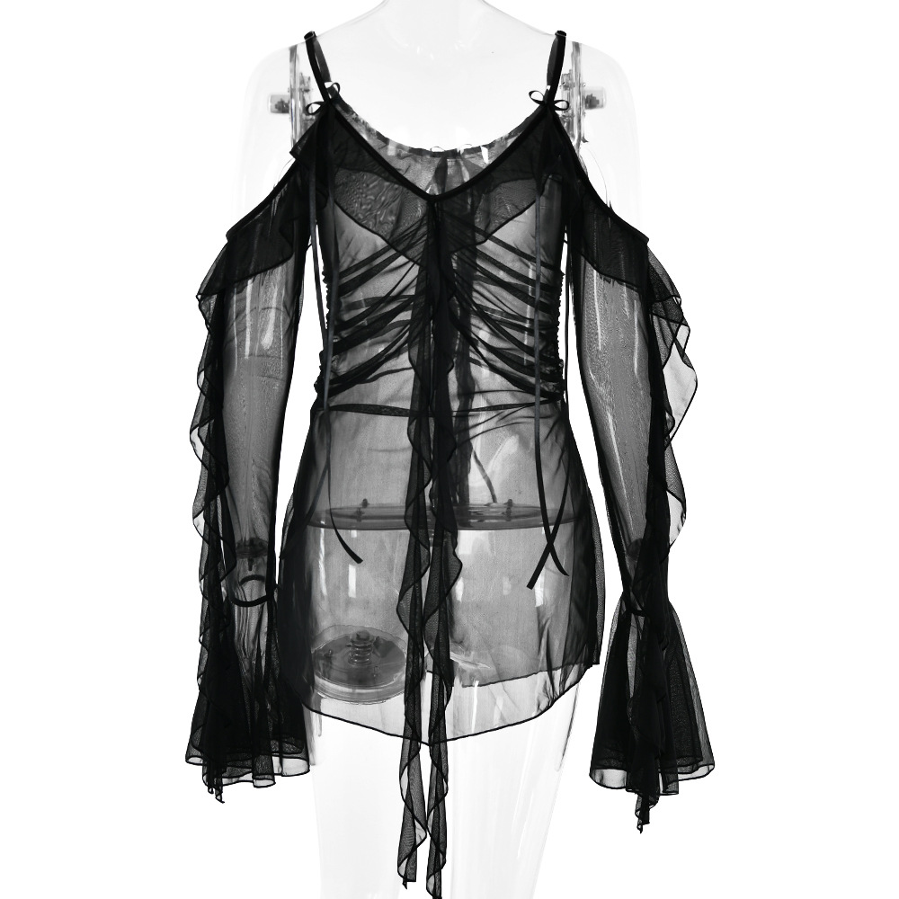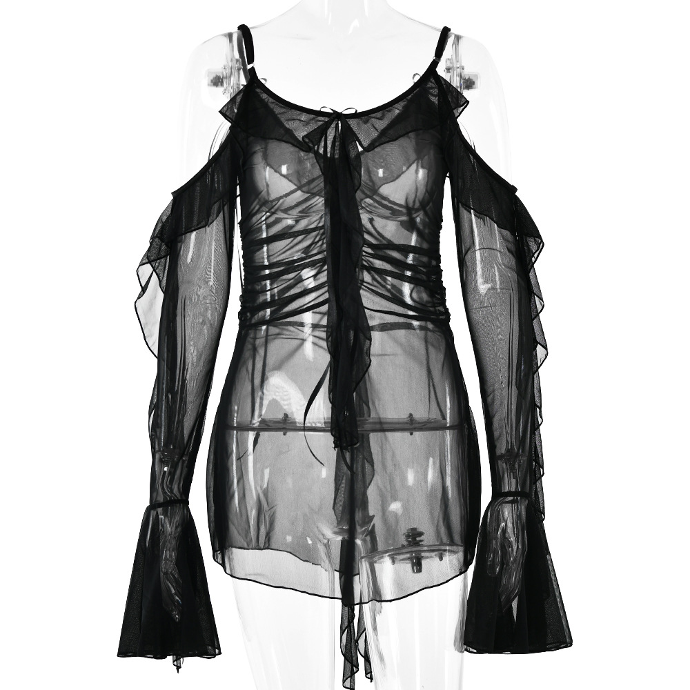 Dress Straps Tulle Sheer Long Sleeve Slim Fit Dress
