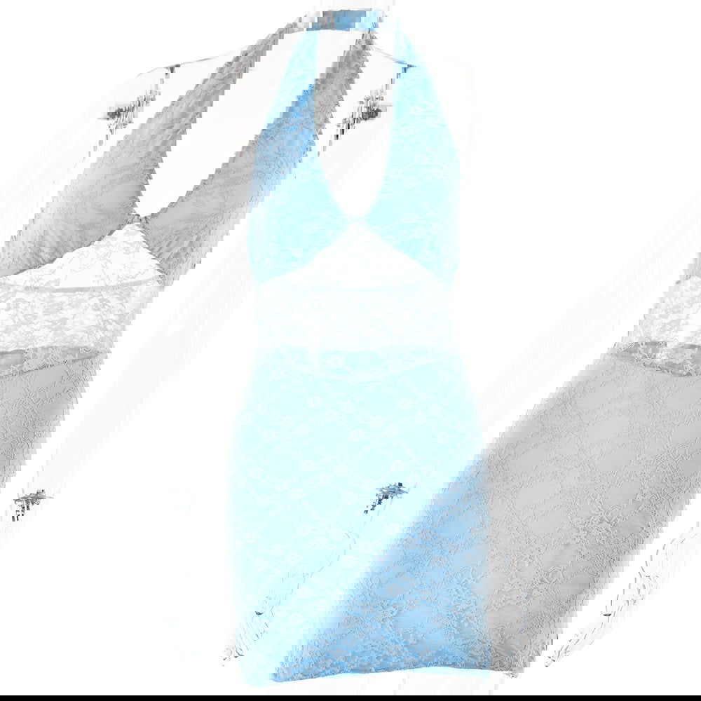 Dress Trend V neck Halter Lace Stitched Backless Dress