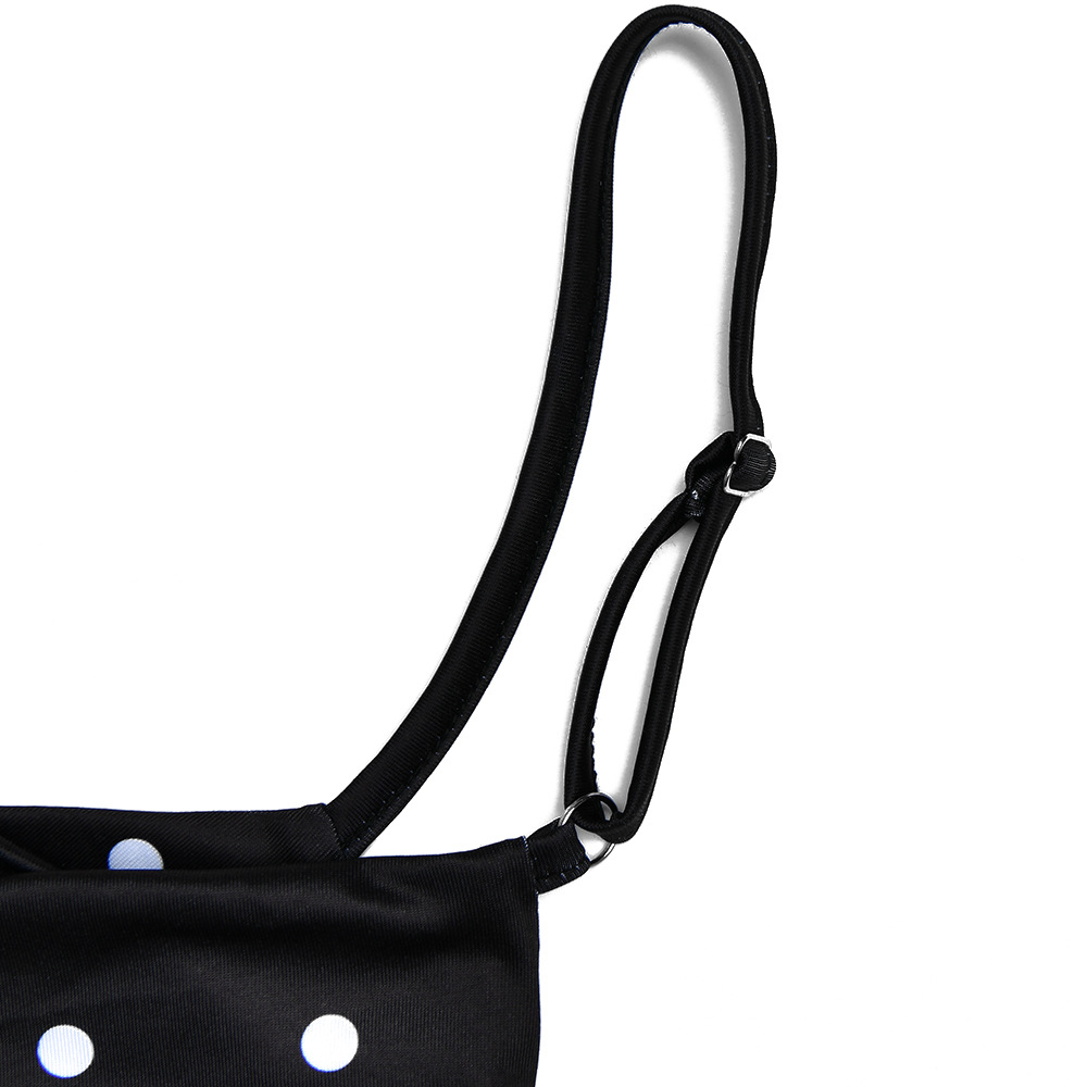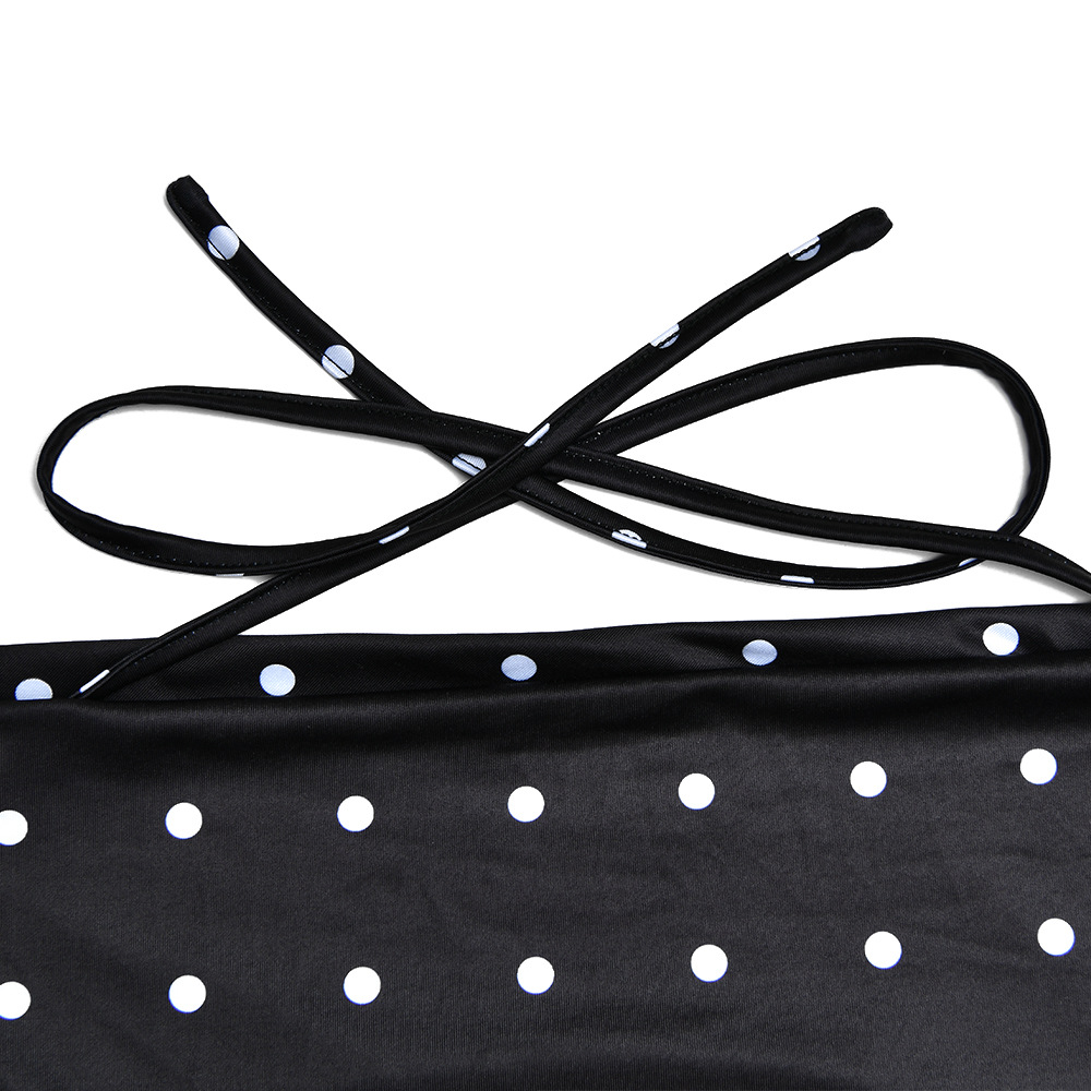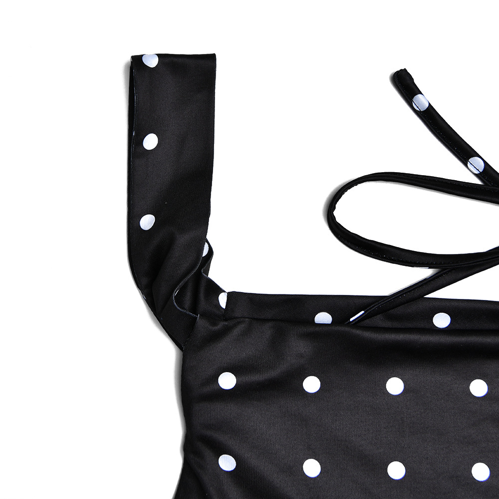Polka Dot Brace Swing Collar Dress Sleeveless Backless Slit Maxi Dress