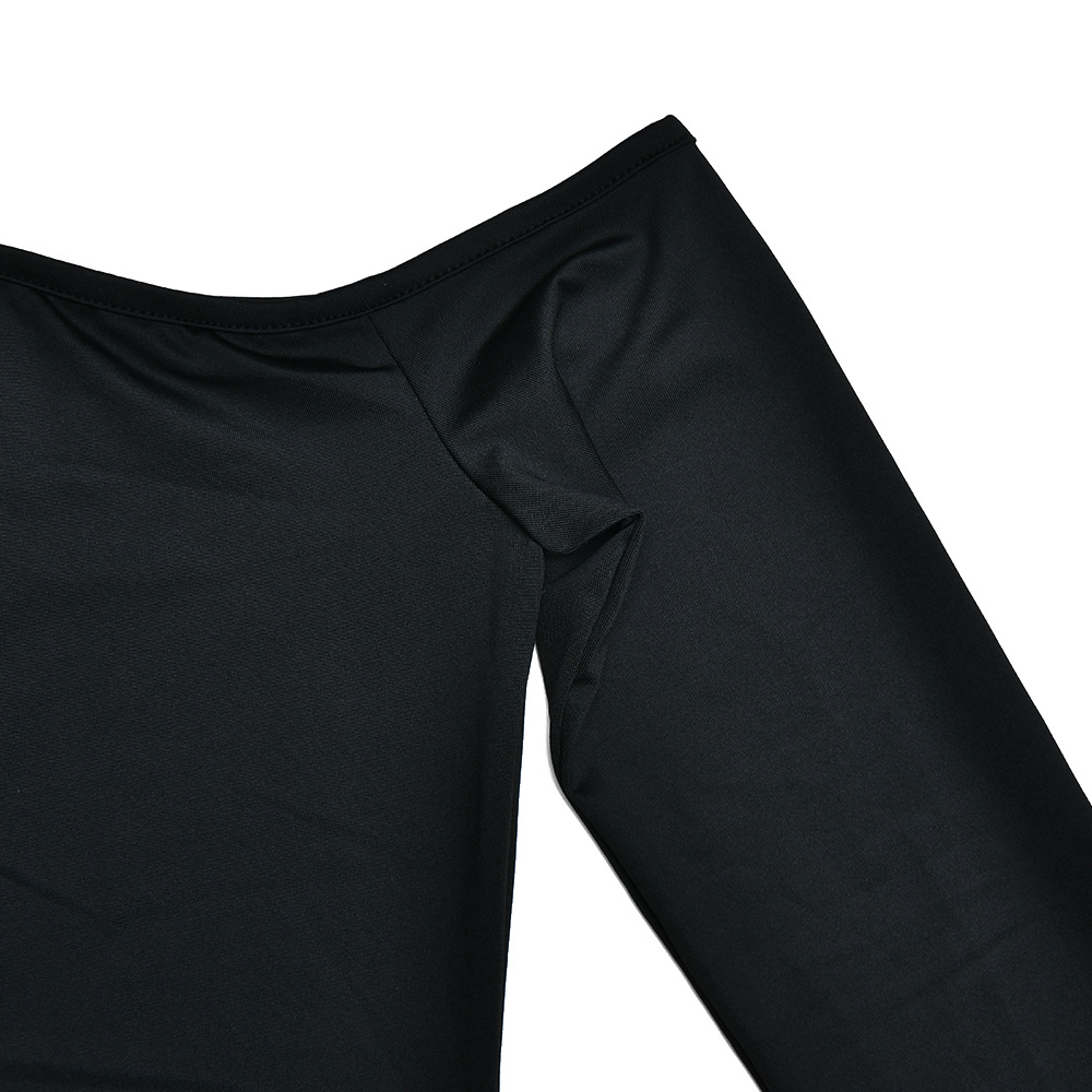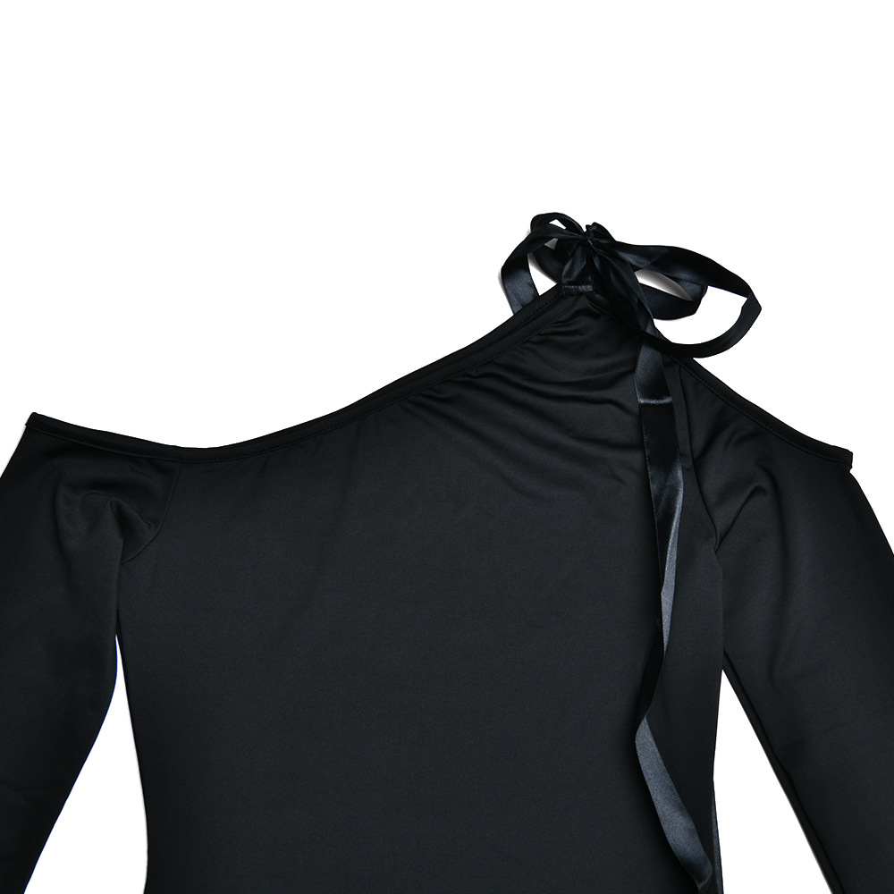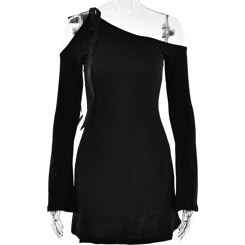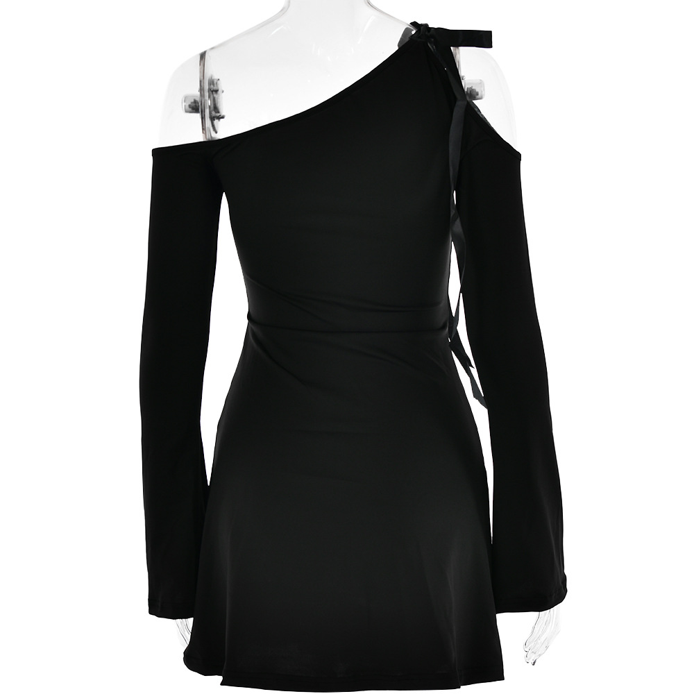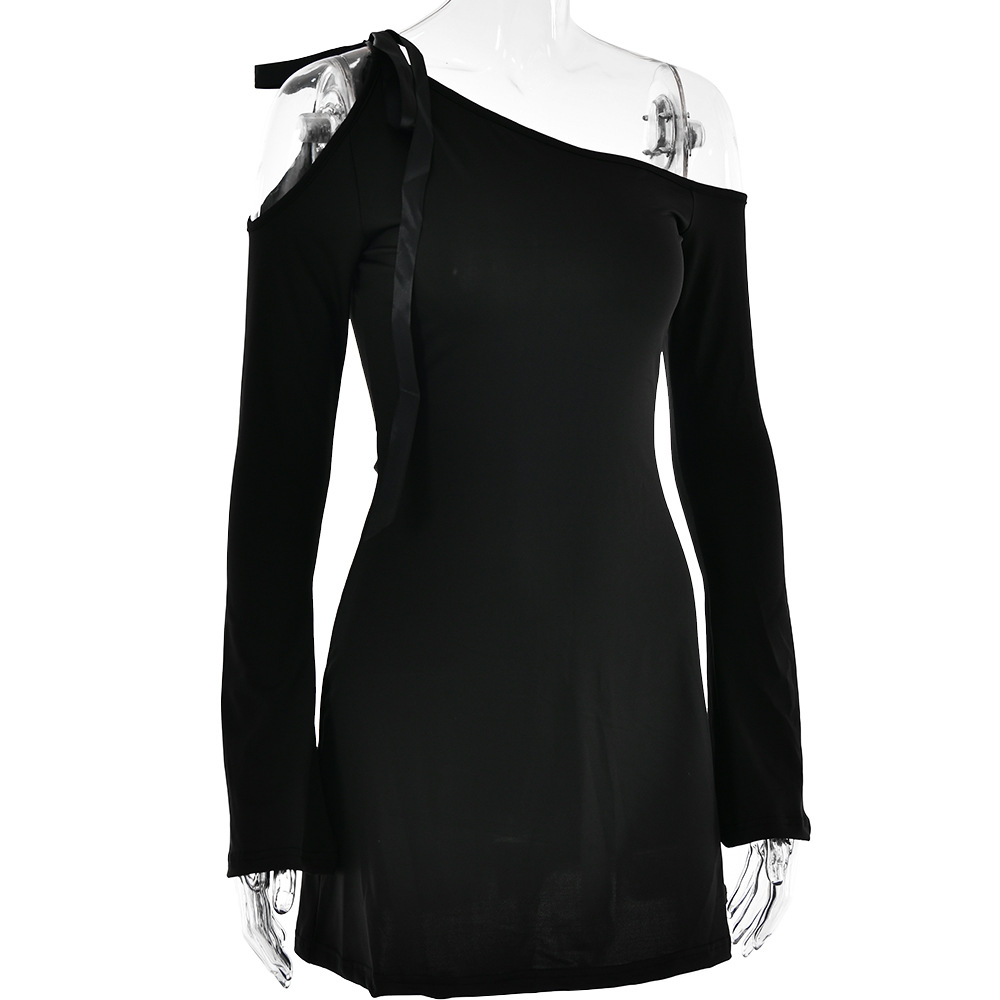 Dress Diagonal Collar off the Shoulder Stitching High Waist Long Sleeves Hip