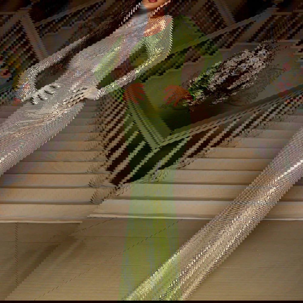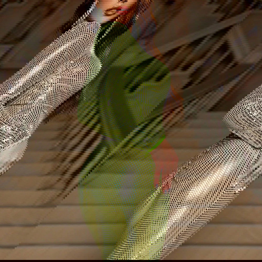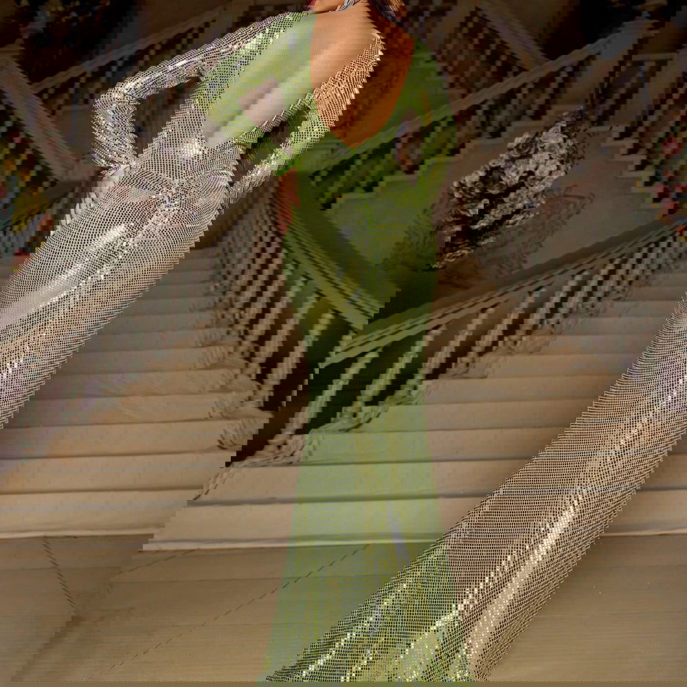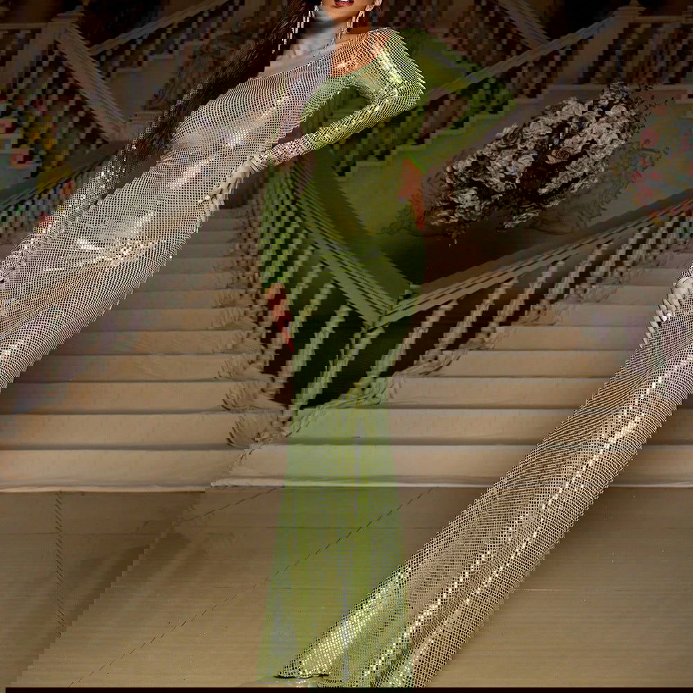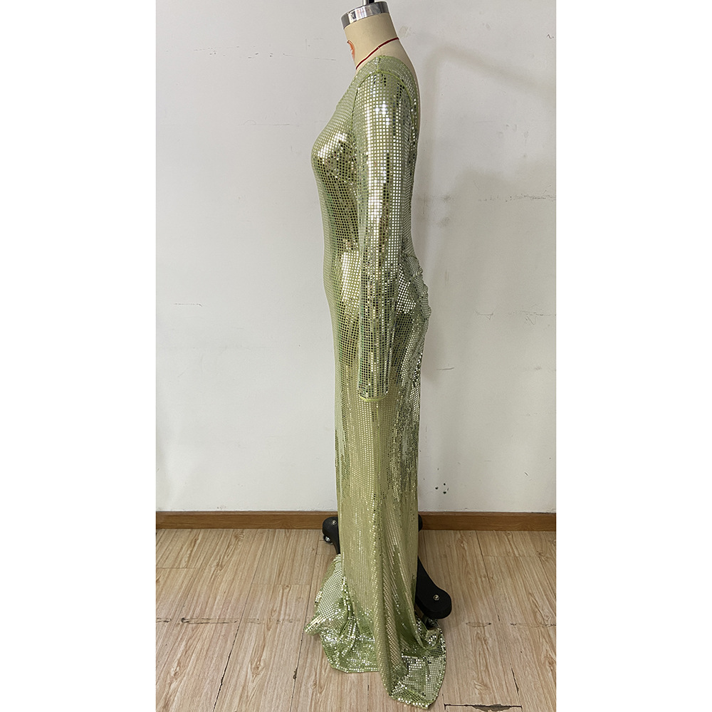 Slim Fit Long Sleeved Mopping Party Cocktail Sequined Evening Dress