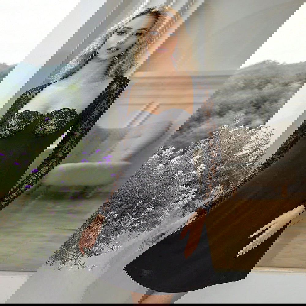 Best Gentle Stylish Dress Lace Slim Fit Patchwork Long Sleeve Short Dress Fairy Dress
