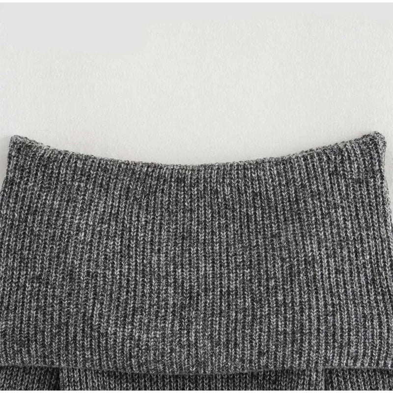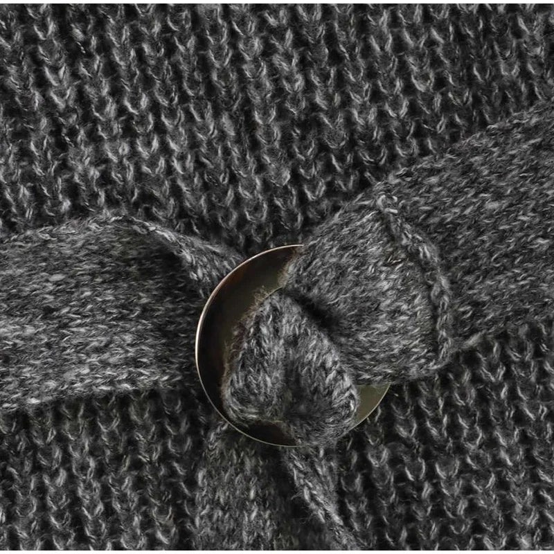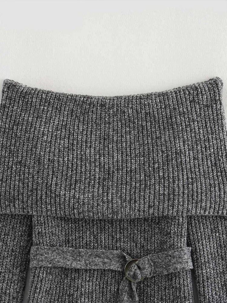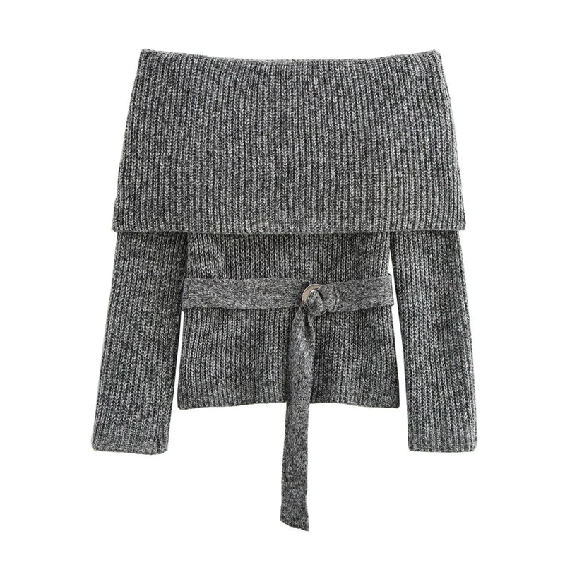 Vintage Off Shoulder Sweater With Belt Women Elegant Knitted Solid Thick Long Sleeve Sweaters Female Winter Chic Street Knitwear