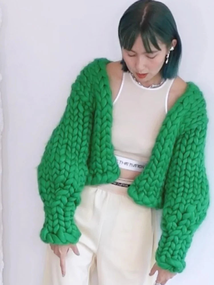 Knitted Twist Chic Cardigans Women Elegant Long Sleeve Loose O-neck Sweaters Female Autumn Vintage All-match Coats Tops