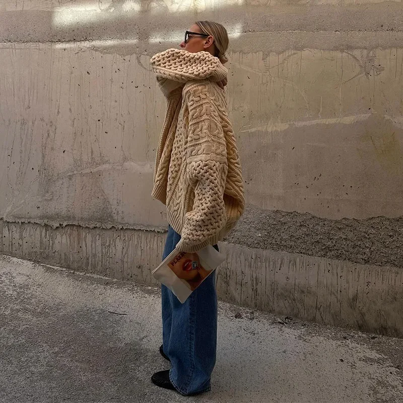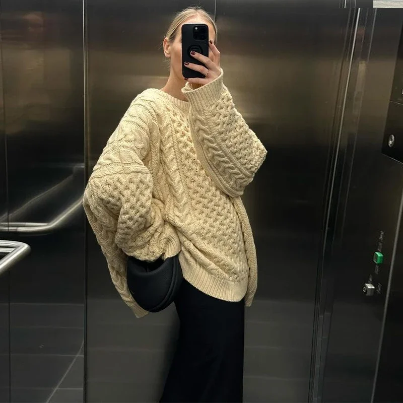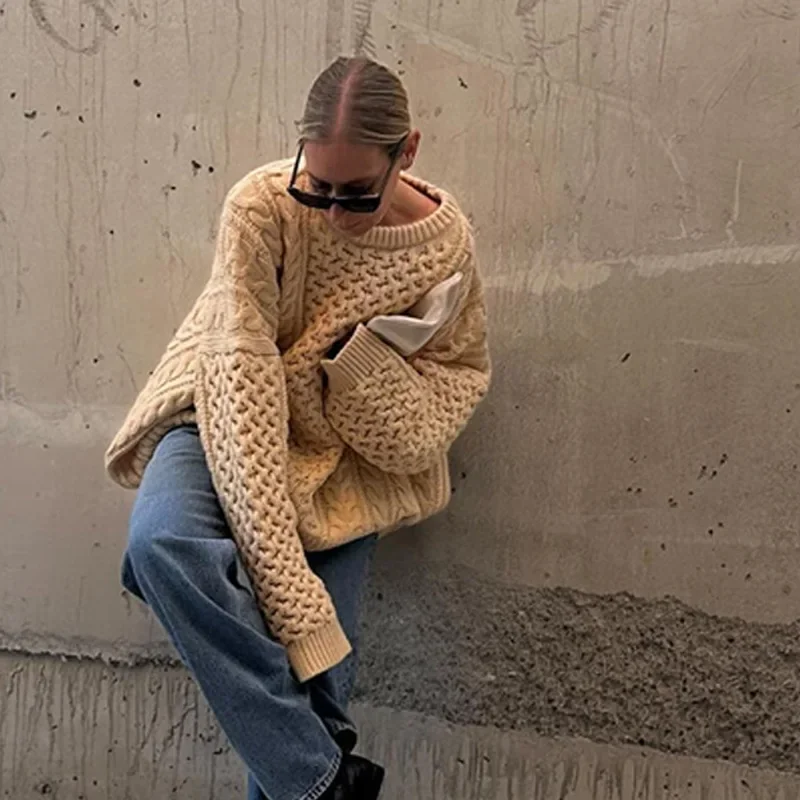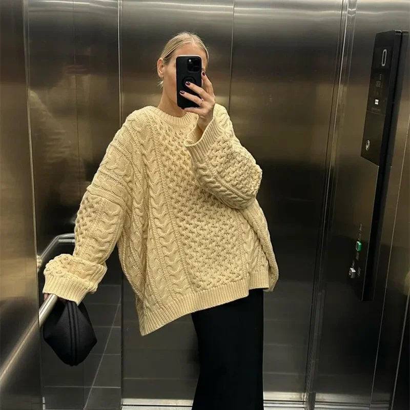 Oversized Knit Twist Pullovers Women Loose Lazy O-Neck Long Sleeve Solid Sweaters Female Autumn New Casual Street Knitwear