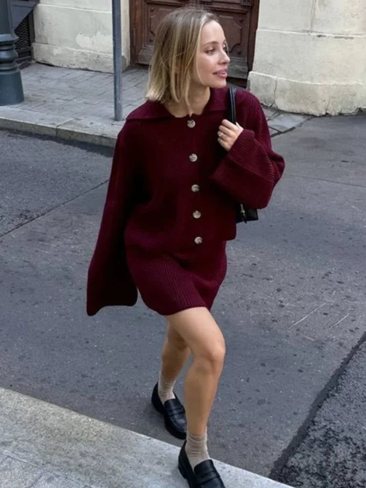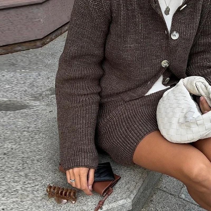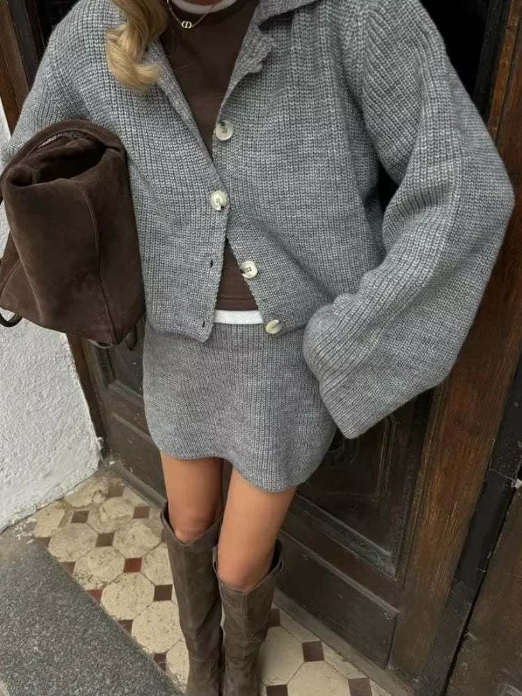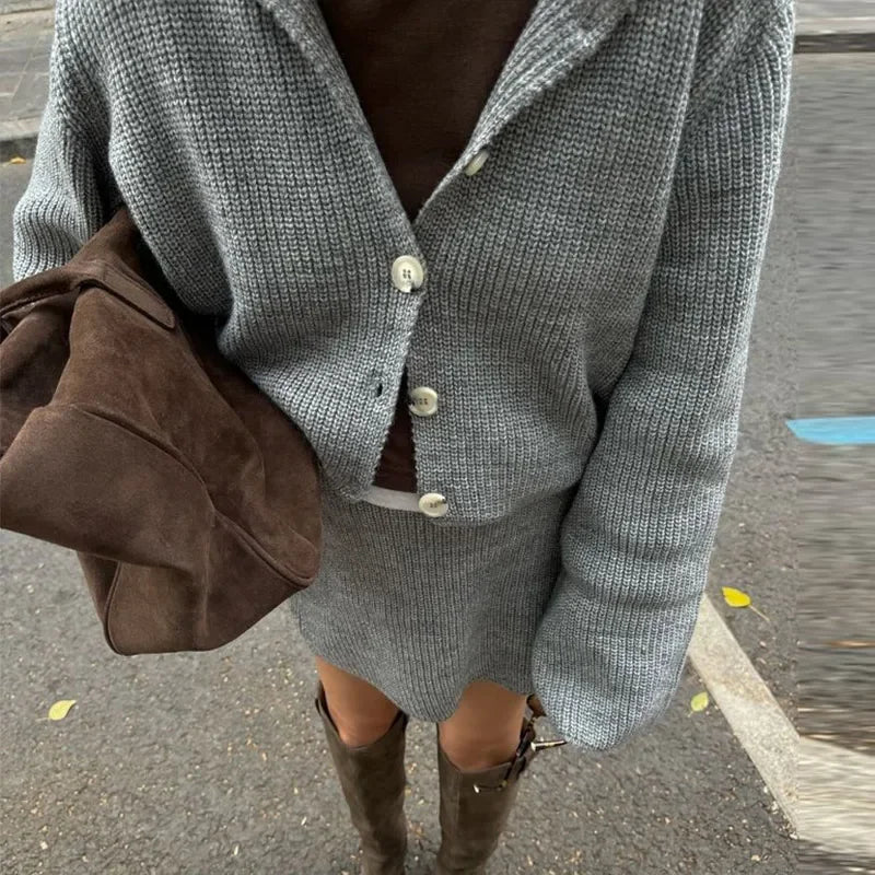 Knitted Skirts 2 Piece Set Women Fashion Lapel Flare Button Knitted Cardigan Top Mini Skirt Autumn Lady All-matching Outfit