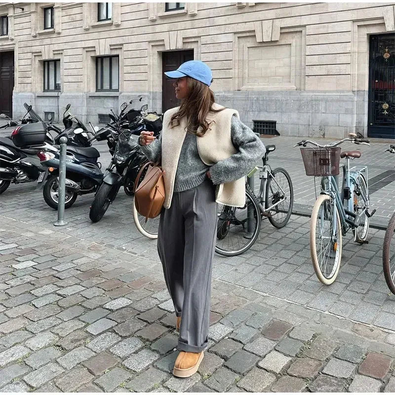 New Solid Lamb Wool Single Breasted Vest For Women Casual V Neck Sleeveless Warm Waistcoat Autumn High Street Outerwear Y2K