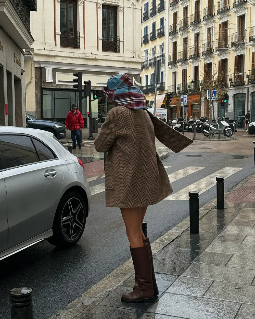 Retro Striped Scarf Collar Wool Blends Jacket Women Chic Pockets Single Breasted Full Sleeve Coat Lady New Elegant Outwear