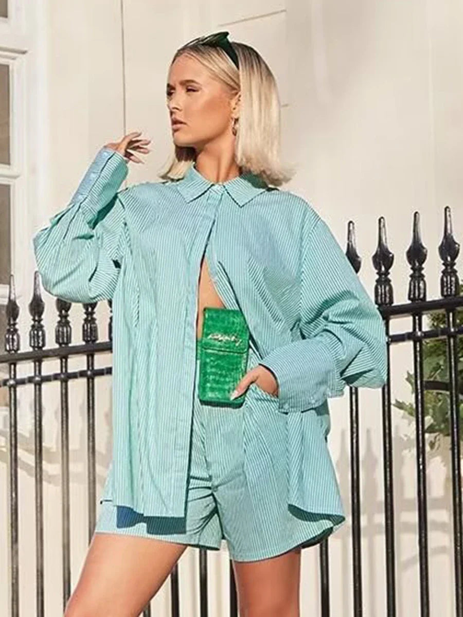 Drawstring Short Pants Sets 2024 New Summer Long Sleeve Pocket Irregular Blouse+Shorts Outfits Streetwear Casual Two-piece Set