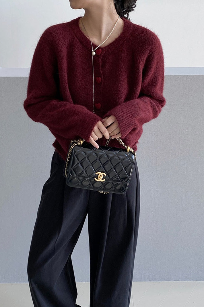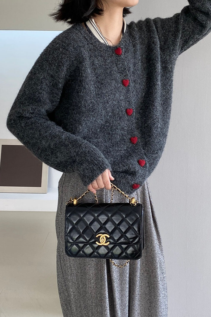 Oversized Heart Button Round Neck Christmas Cardigan