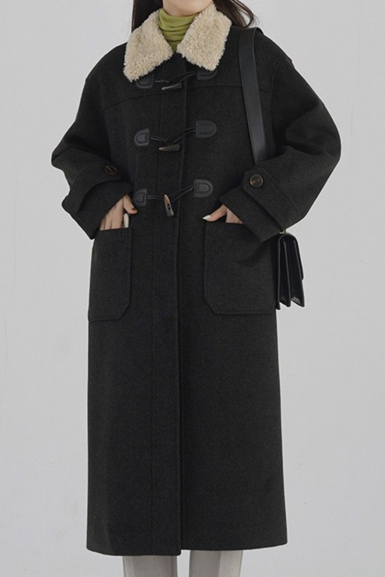 Vintage Horn Button Shearling Collar Red Christmas Outerwear