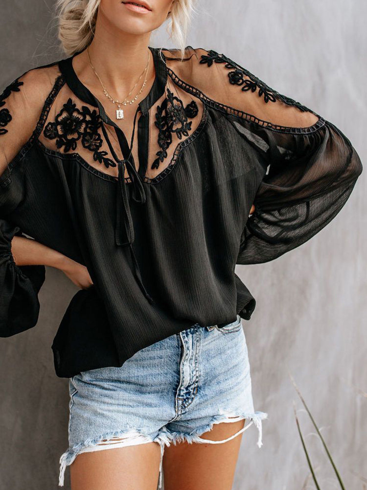 JuliaFashion - 2024 Women Embroidery Patchwork Casual Long Sleeve Chiffon Blouse