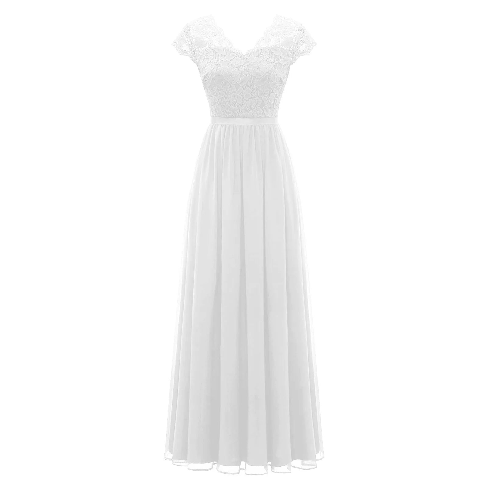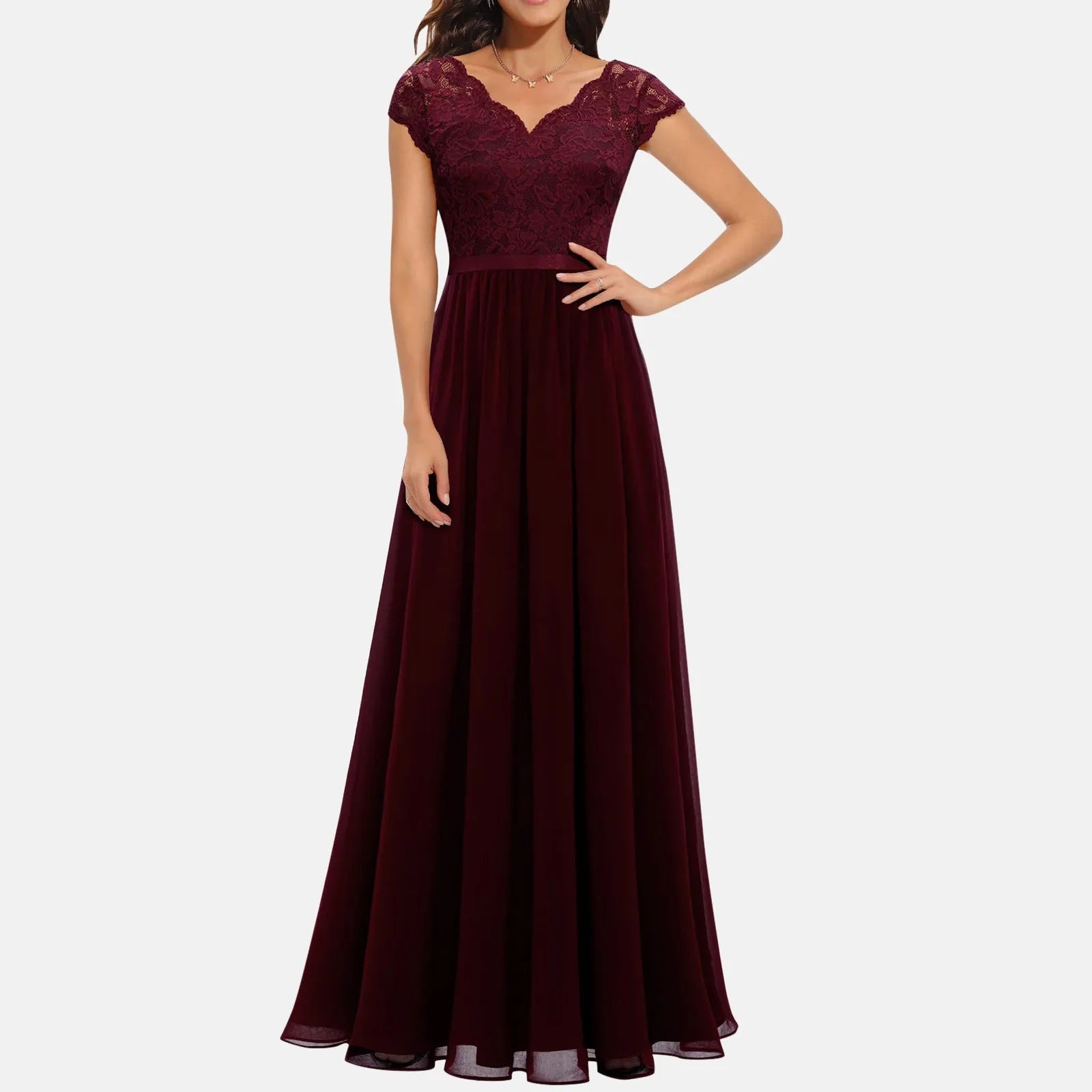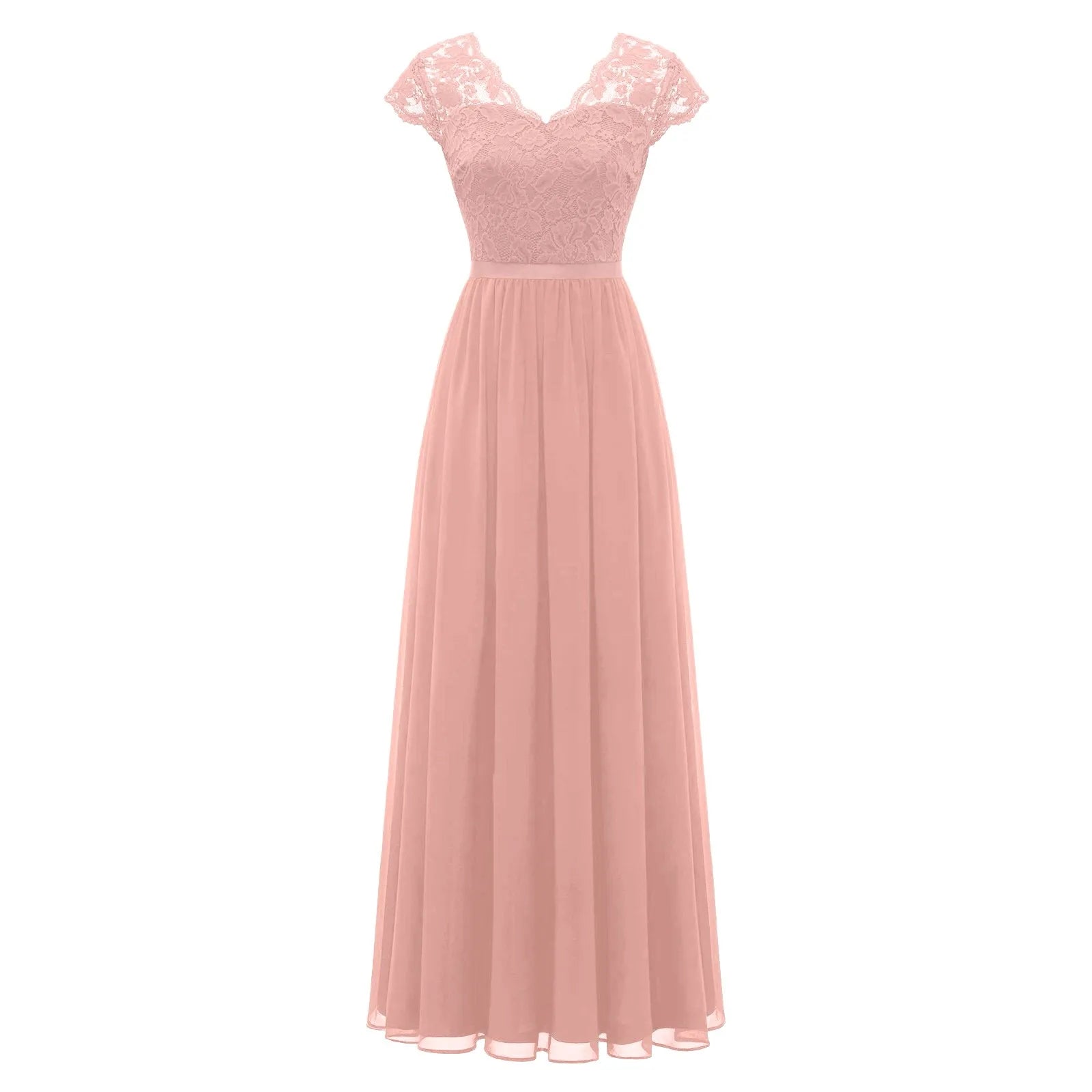 JuliaFashion - Lace Patchwork Maxi Long Evening Solid Lace Patchwork Backless V Neck High Waist Elegant Wedding Party Dress