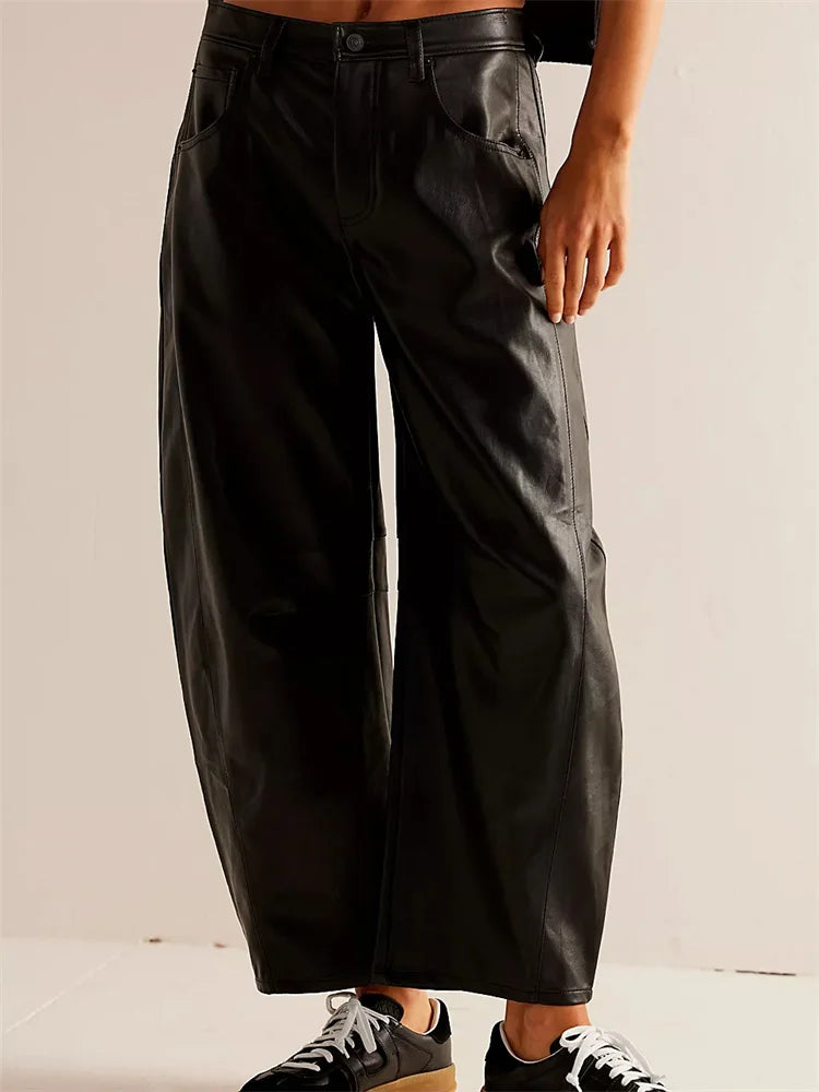 JuliaFashion - Loose PU Leather Wide Leg with Pockets Pants