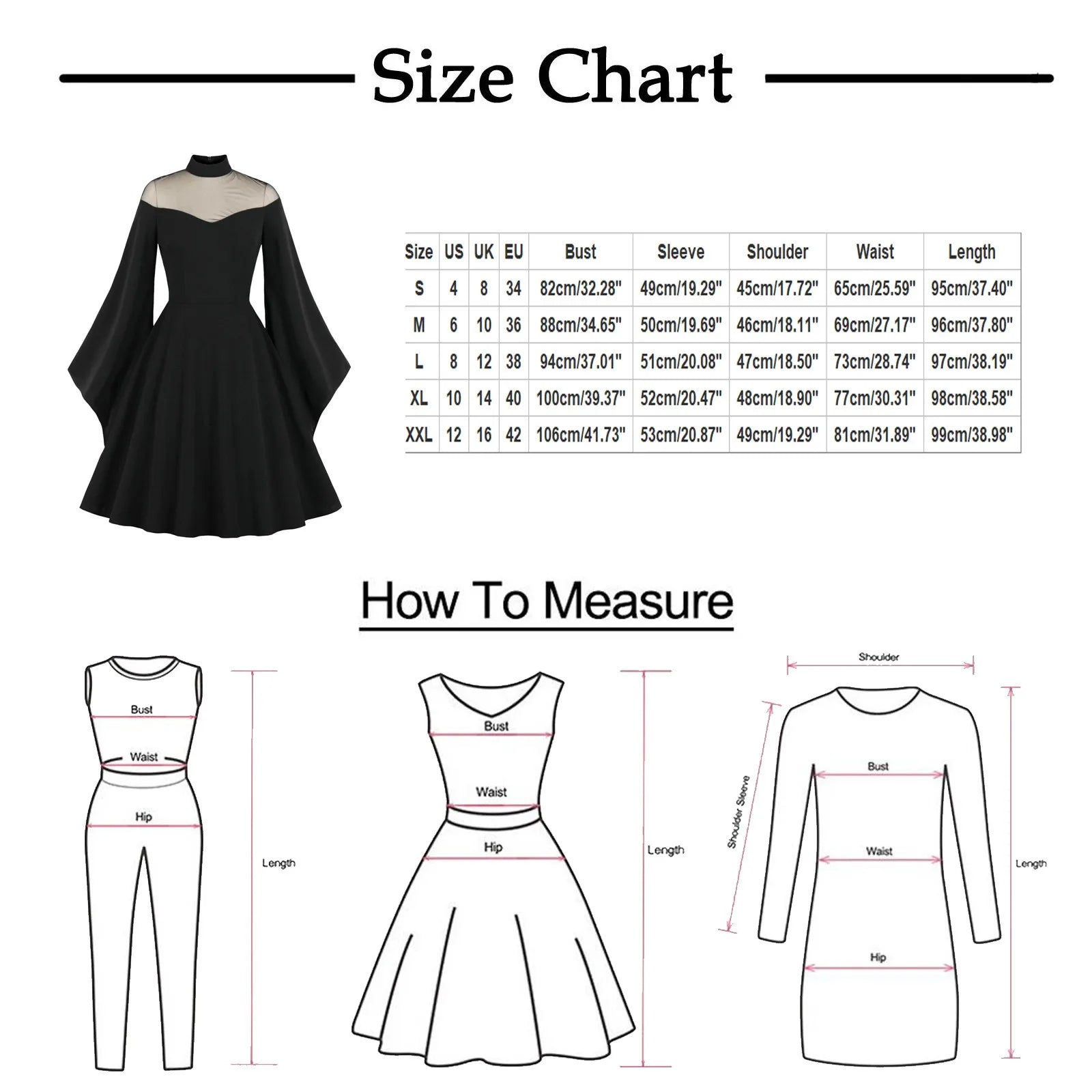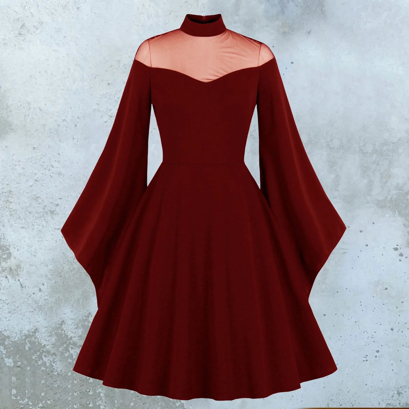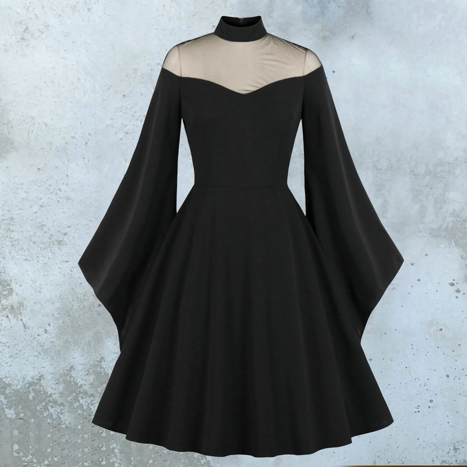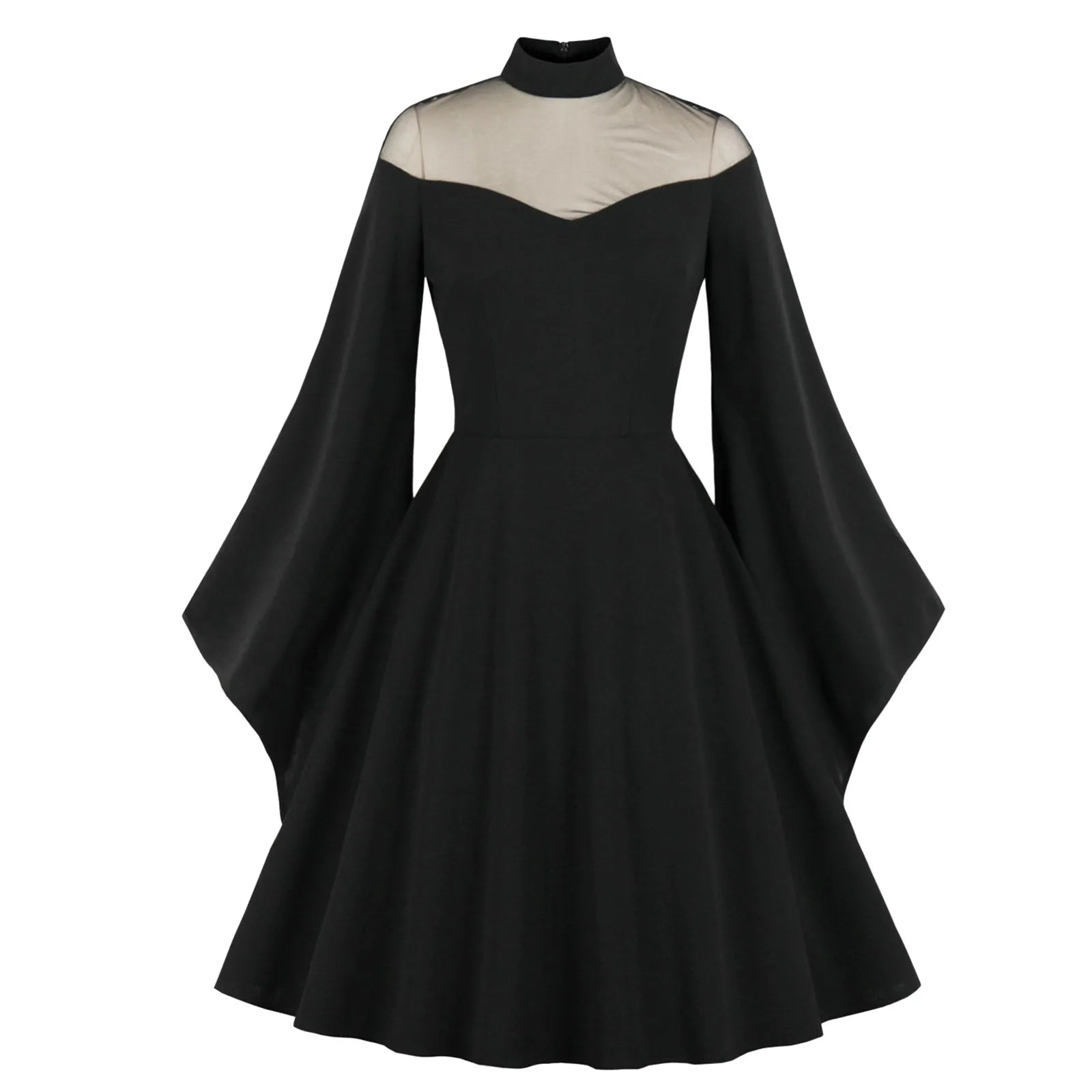 JuliaFashion - Medieval Retro Queen Princess Party Long Sleeve Punk Vintage Gothic 50s Flare Sleeve Swing Cosplay Costume Dress