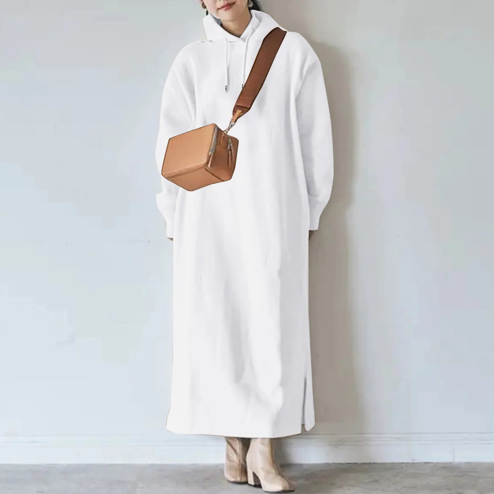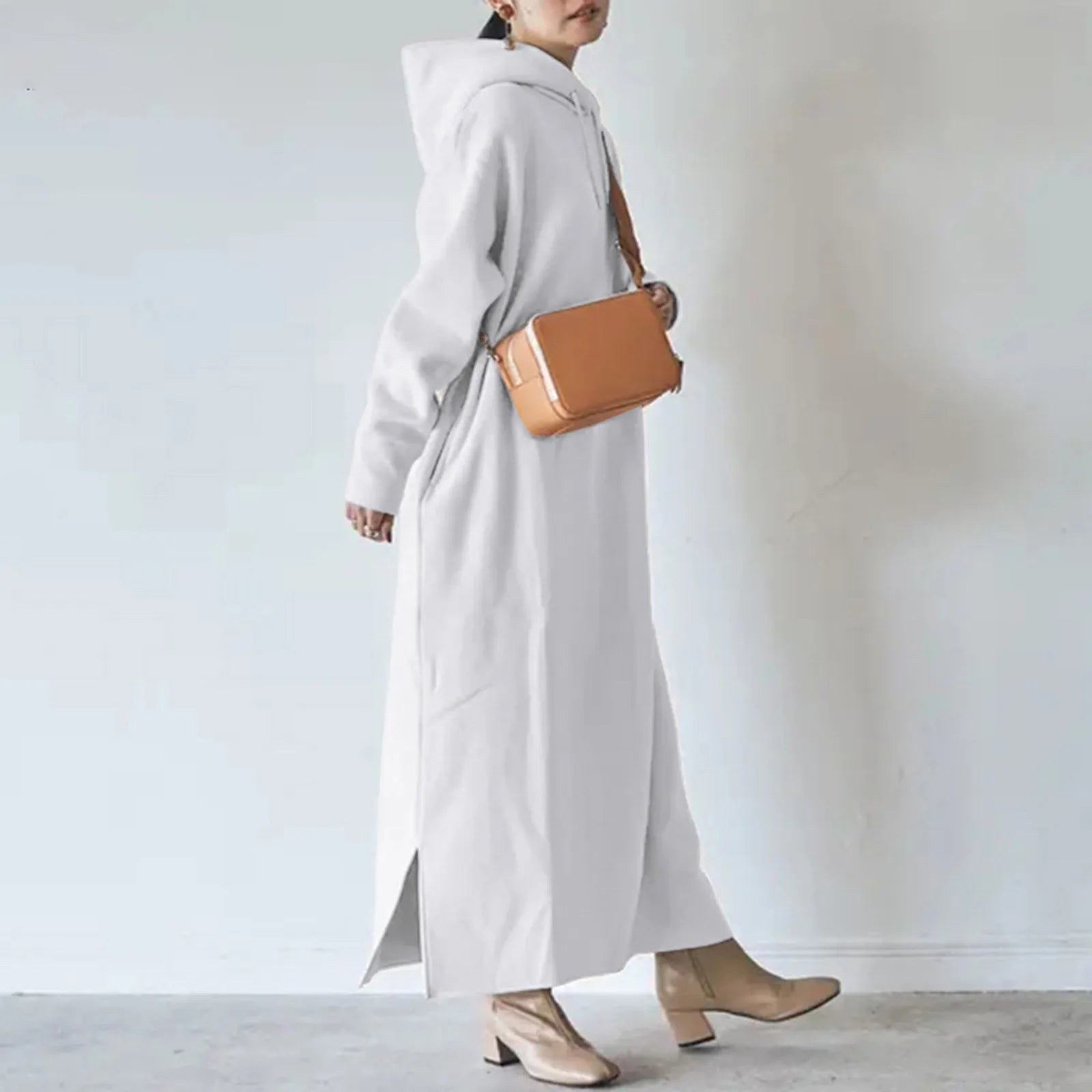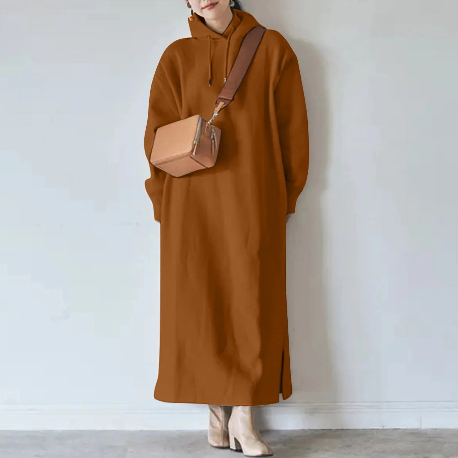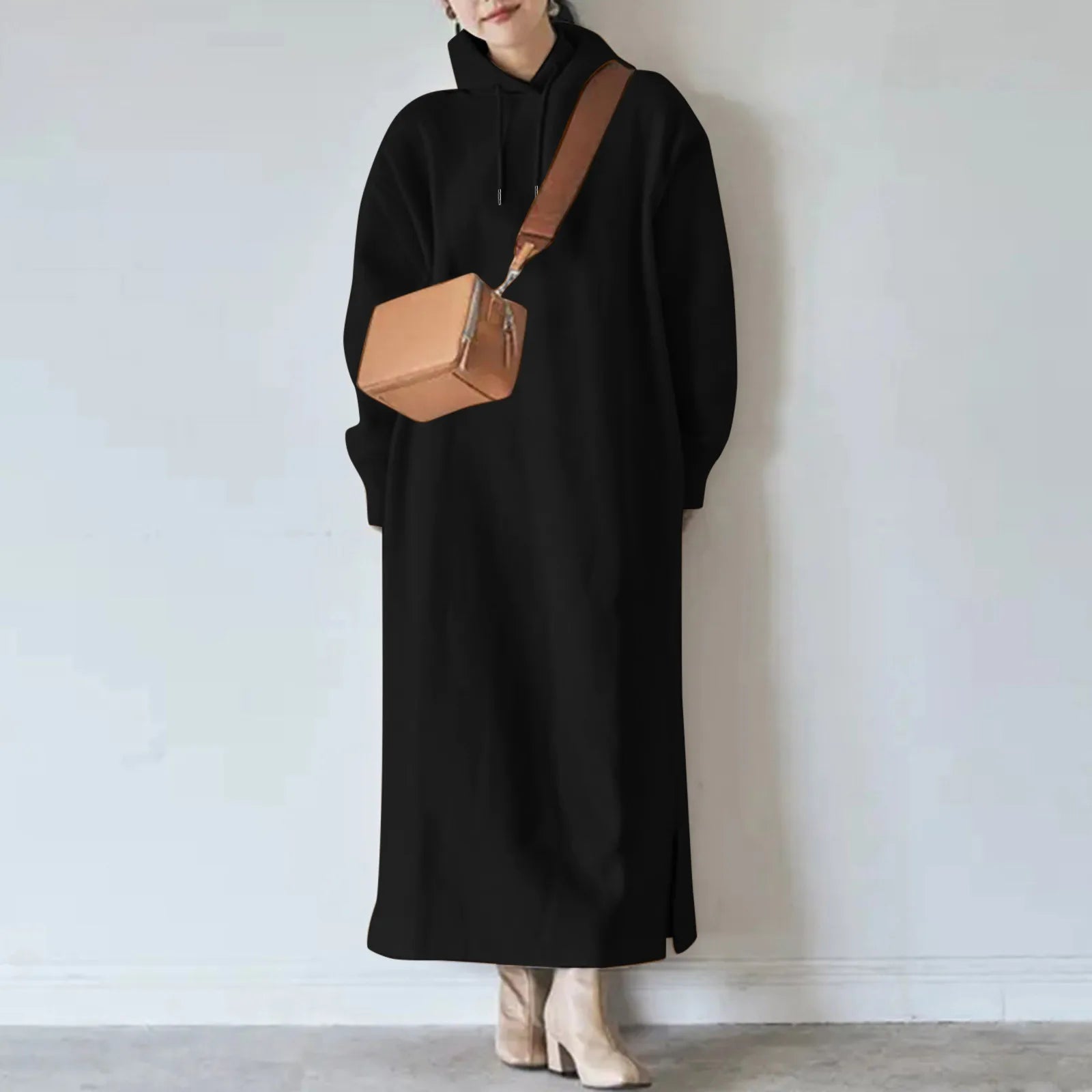 JuliaFashion - New Casual Hooded Vestidos 2024 Autumn Solid Sweatshirt Oversized Hoodies Robe Female Winter Warm Loose Dress