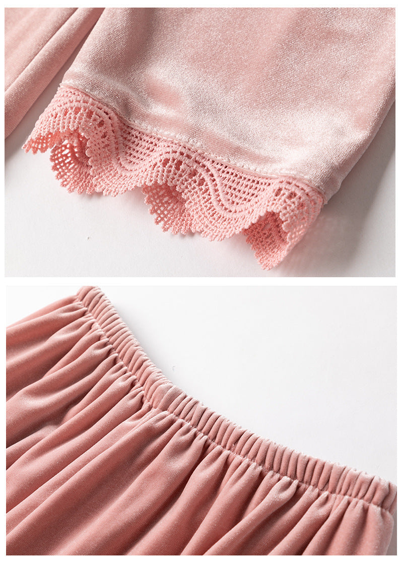 JuliaFashion - 2024 Velvet Long Sleeve Casual Nightwear Pajamas Suit