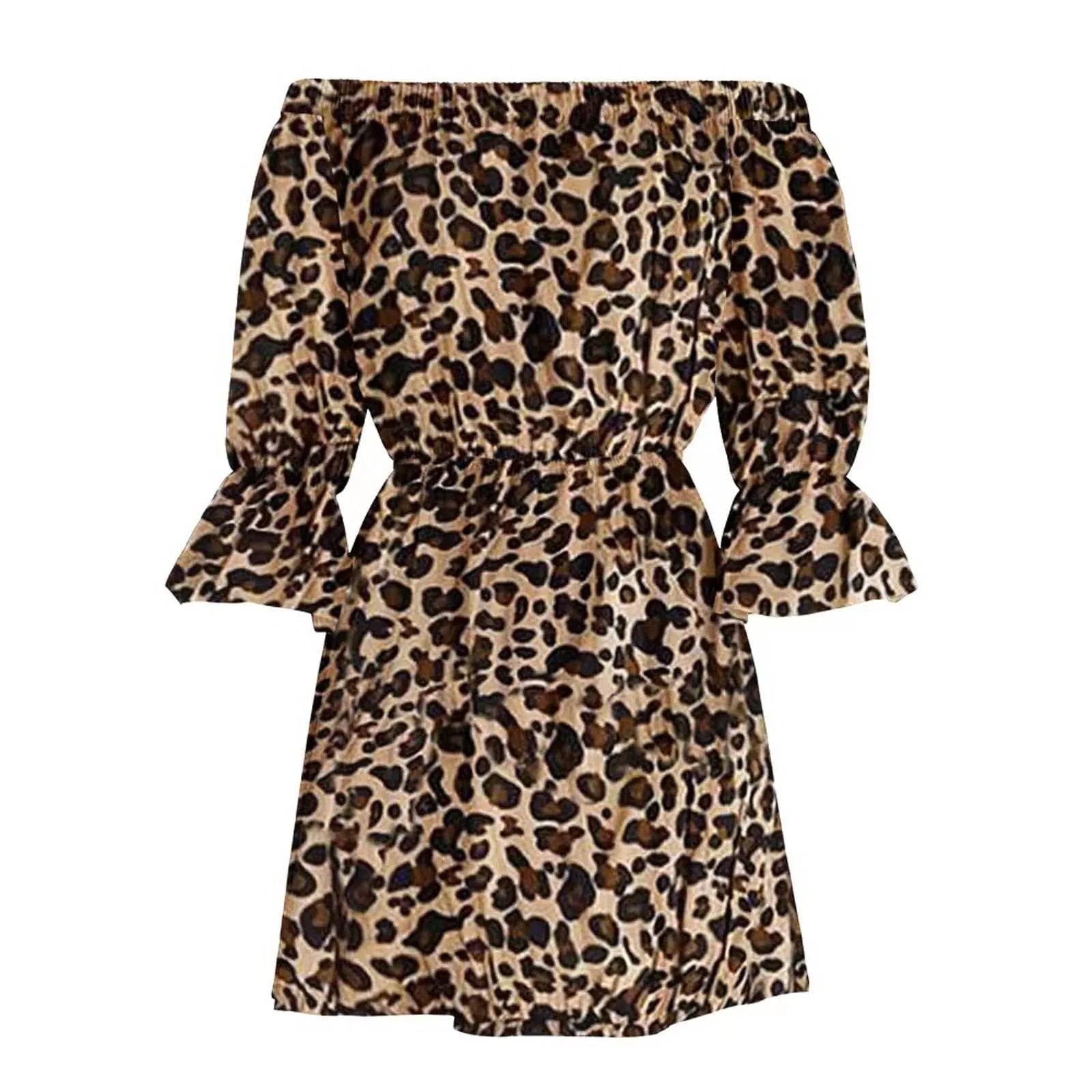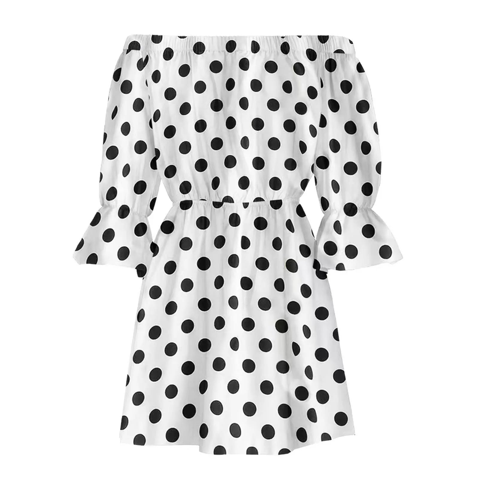 JuliaFashion - Off Shoulder Mini Women Leopard Polka Dot Elegant Summer Casual Loose Fashion Slash Neck Long Sleeve Party Dress