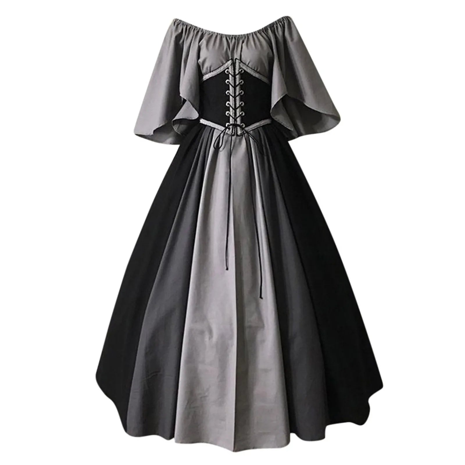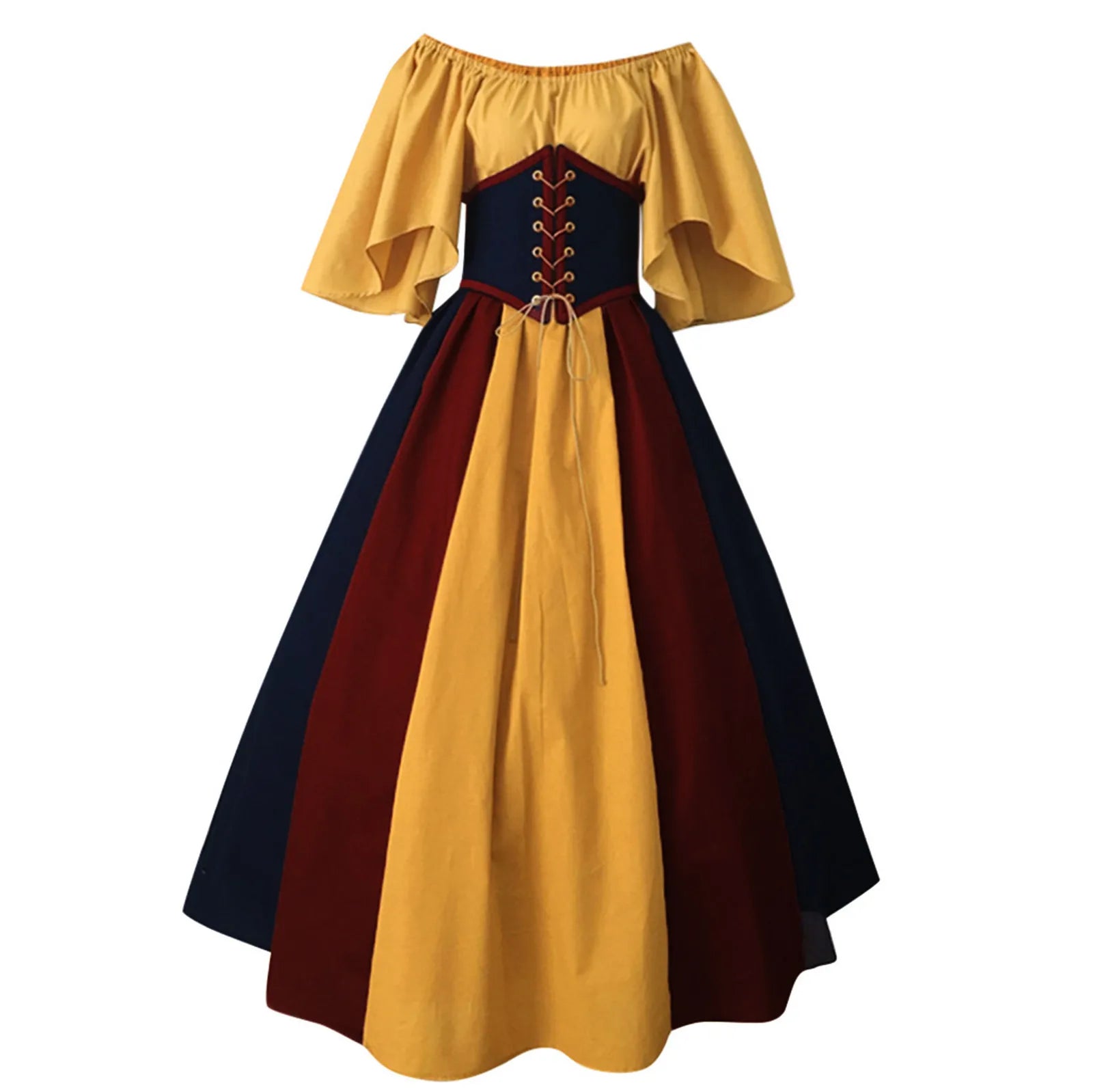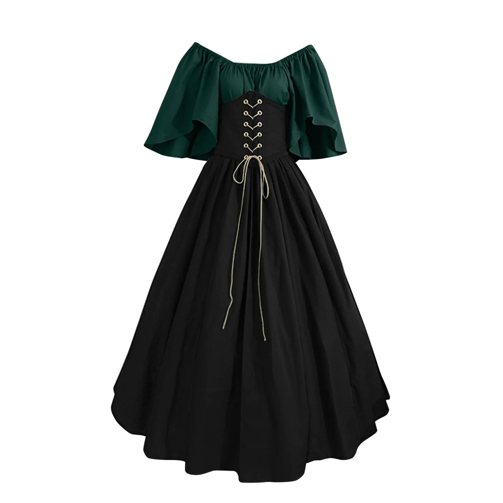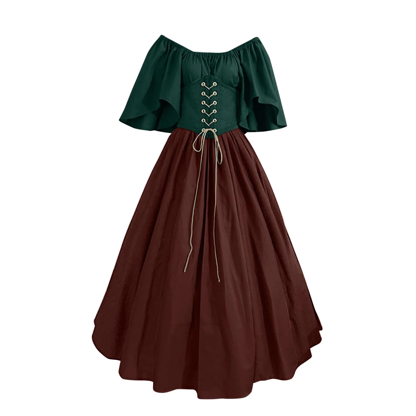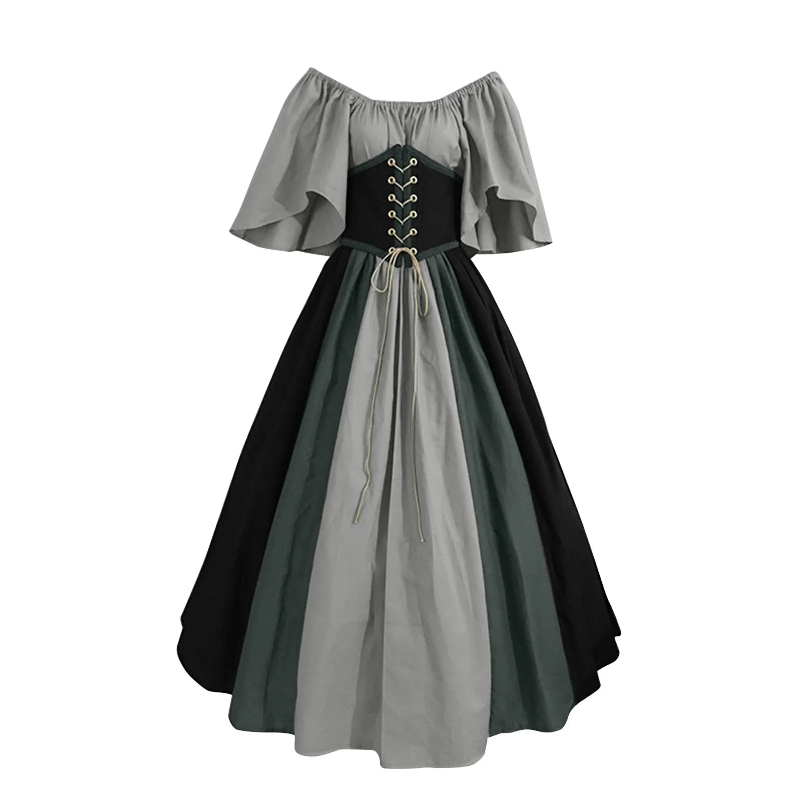 JuliaFashion - Palace Medieval Costume Christmas Vintage Victoria Lace Up Vintage Carnival Party Long Robe Cosplay Fancy Clothing Dress