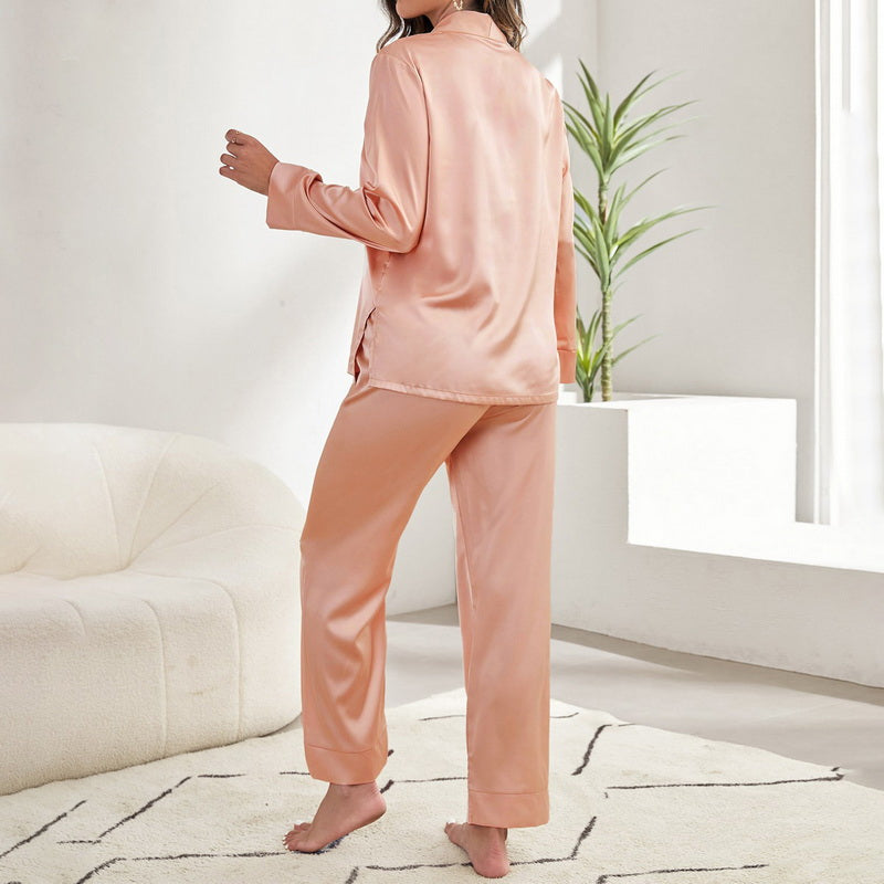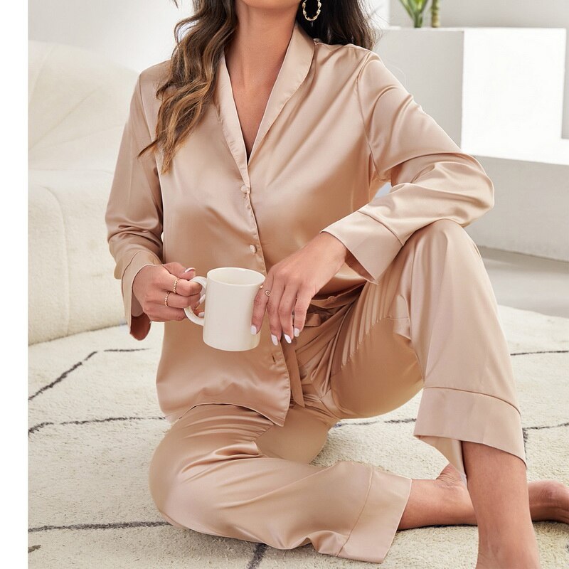 JuliaFashion - 2024 Satin Silk Single-Breasted Sleepwear 2pcs Pajamas Set