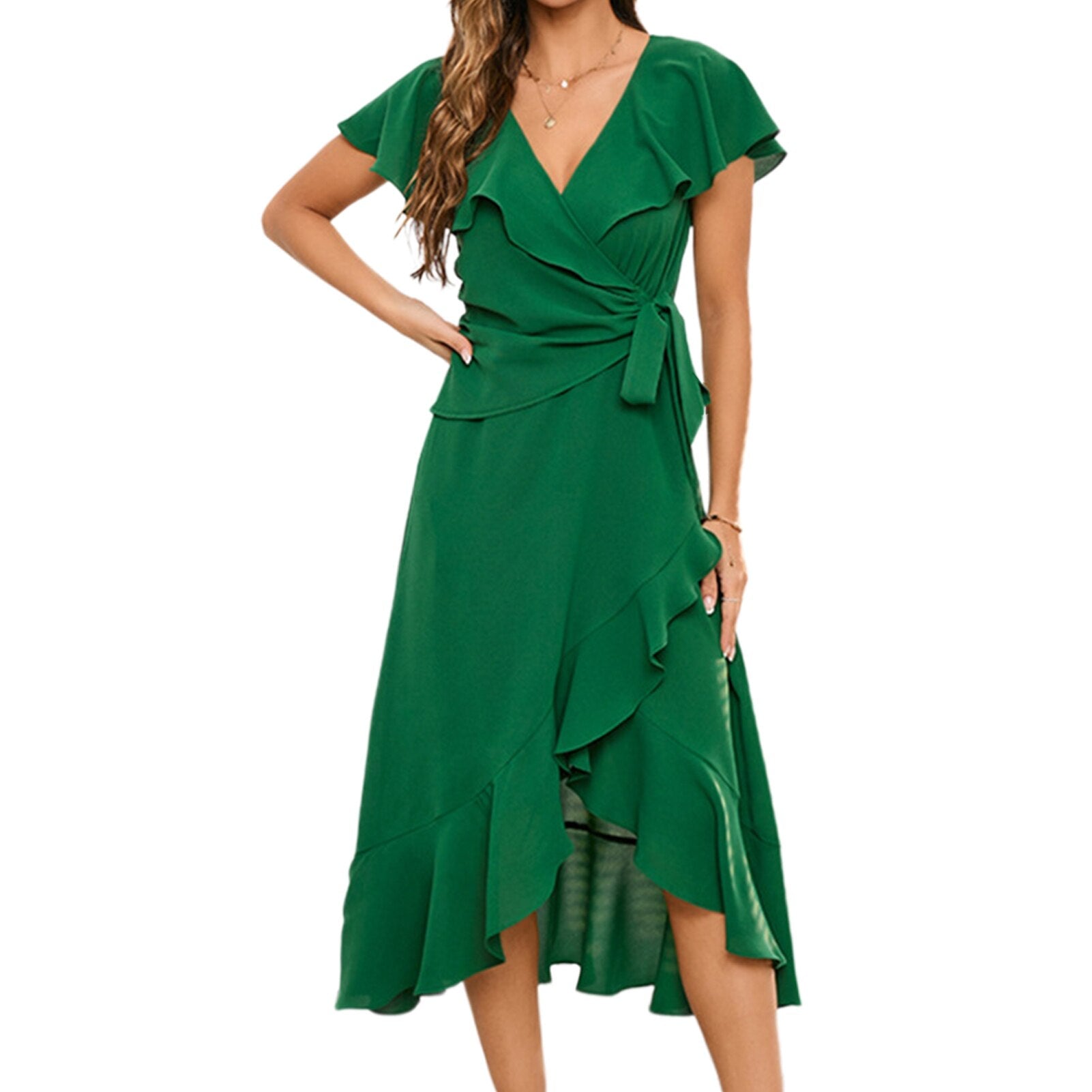 JuliaFashion - Sexy Chiffon Ruffle Hem Midi Beach Dress
