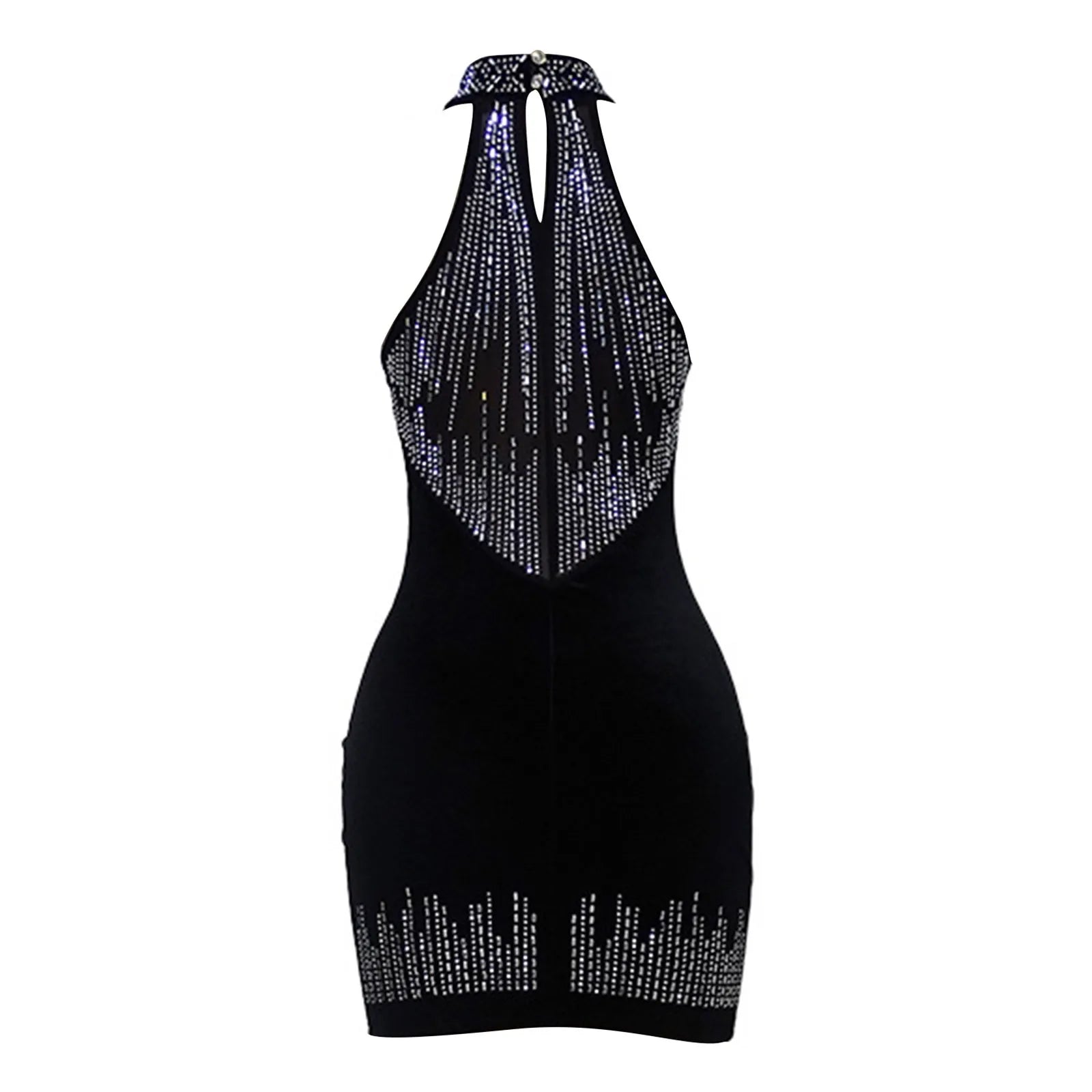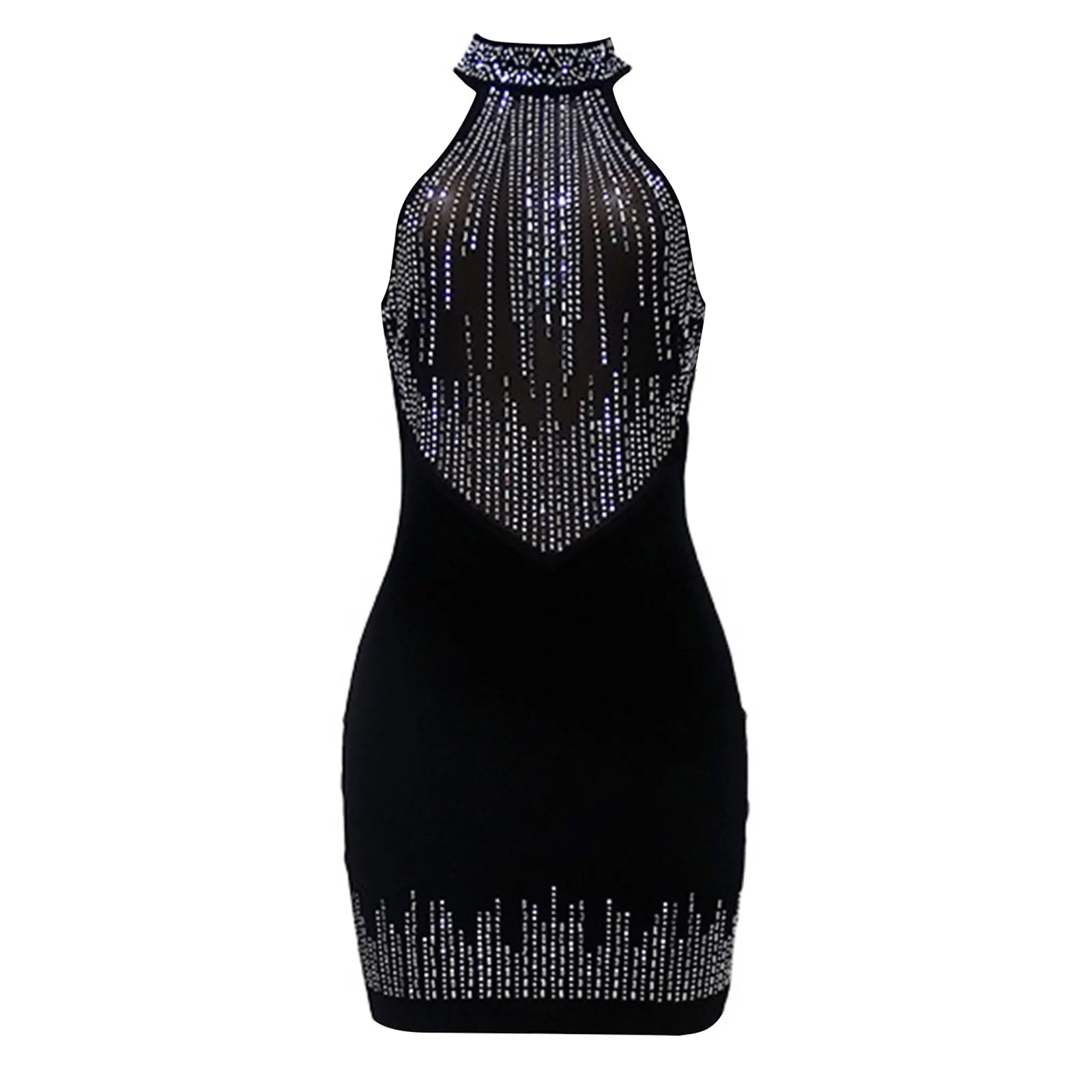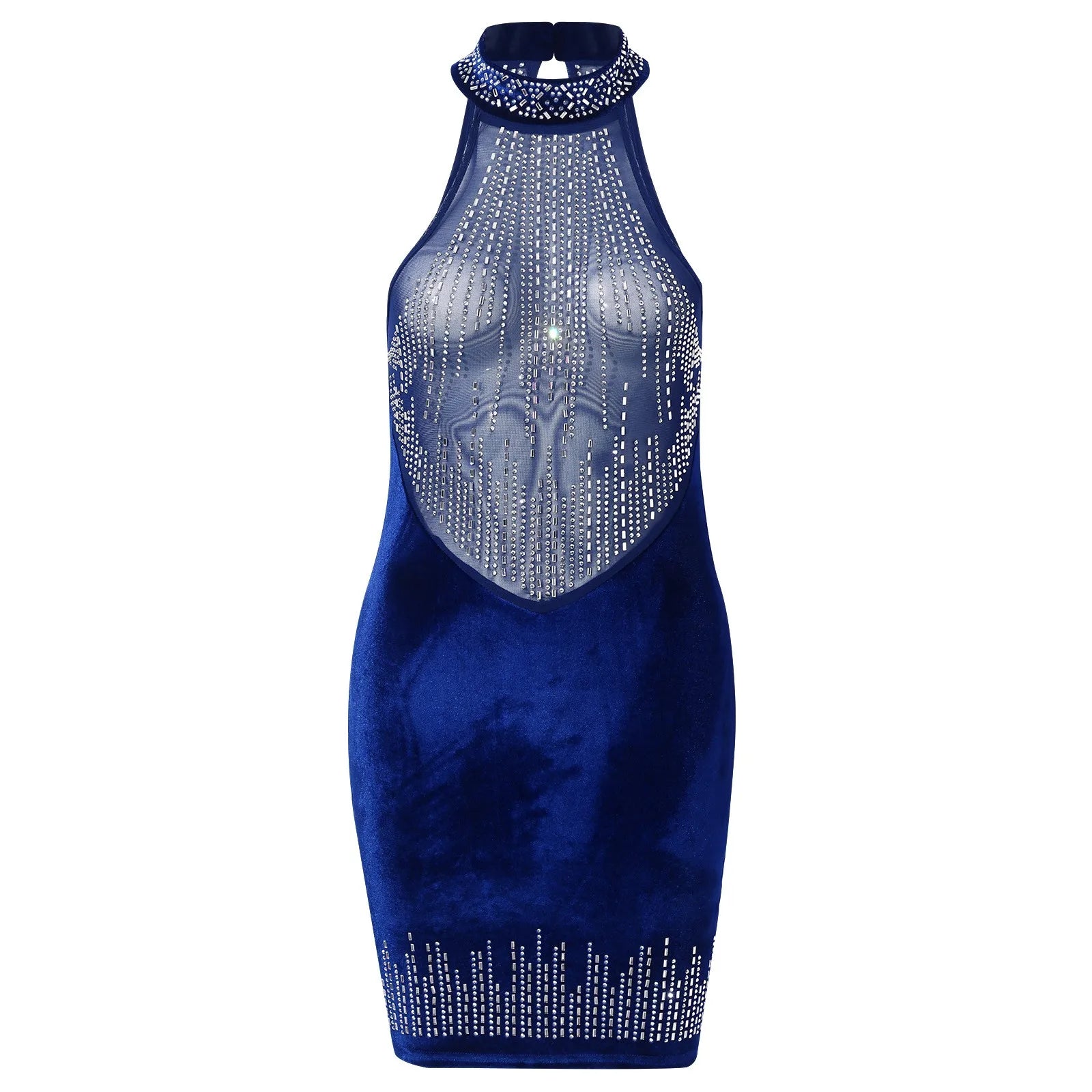 JuliaFashion - Sexy Mesh Splicing Velvet Sleeveless High Neck Hip Wrap Nightclub Cocktail Summer Halter Dress