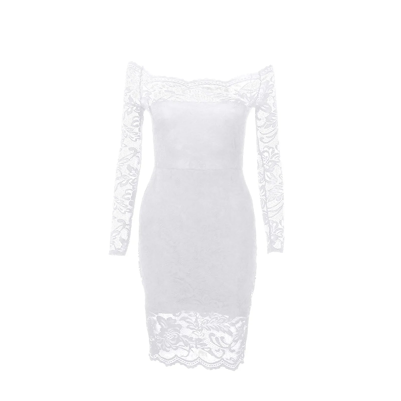 JuliaFashion - Sexy Off Shoulder Lace Party For Women Slim Fit Long Sleeve Mini Cocktail Vestidos Elegant Bodycon Robe Femme Dress