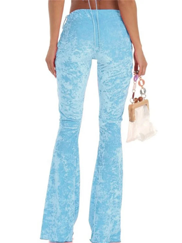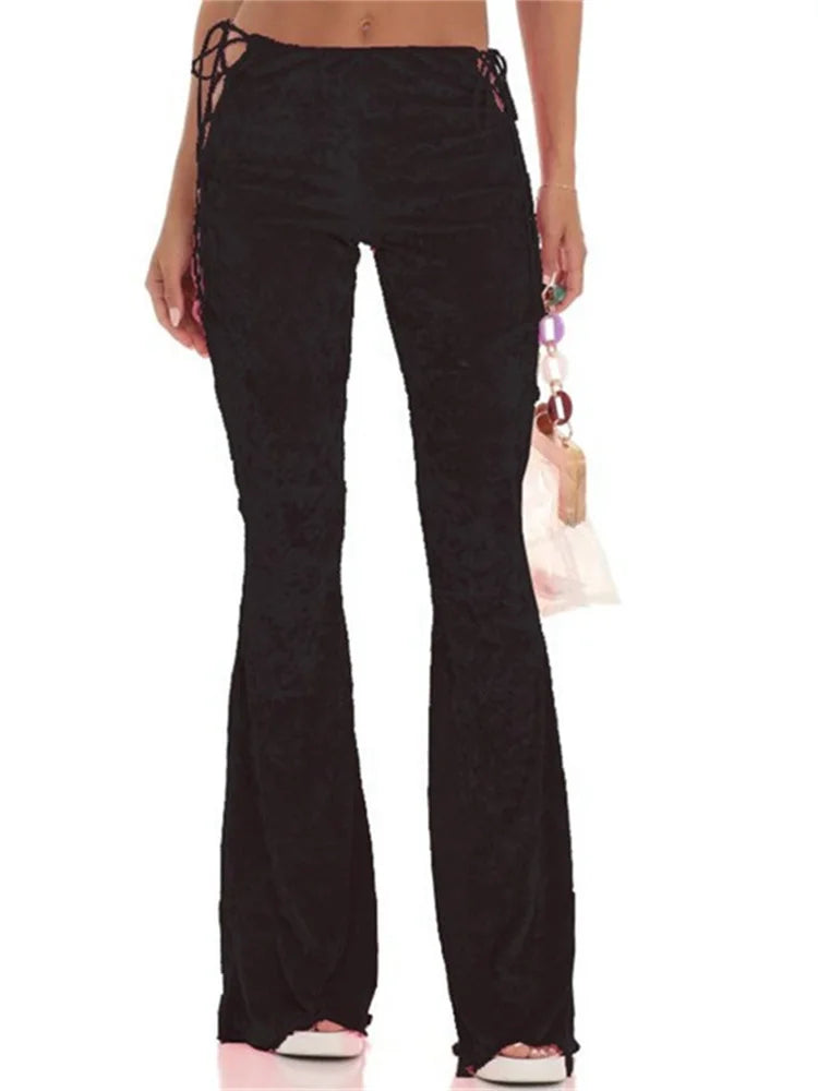 JuliaFashion - Sexy Slim Velvet Side Hollow Out Tie-Up Slim Pants