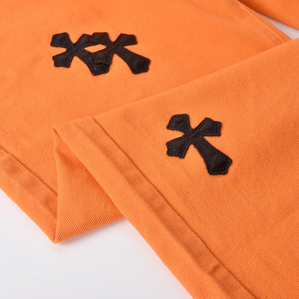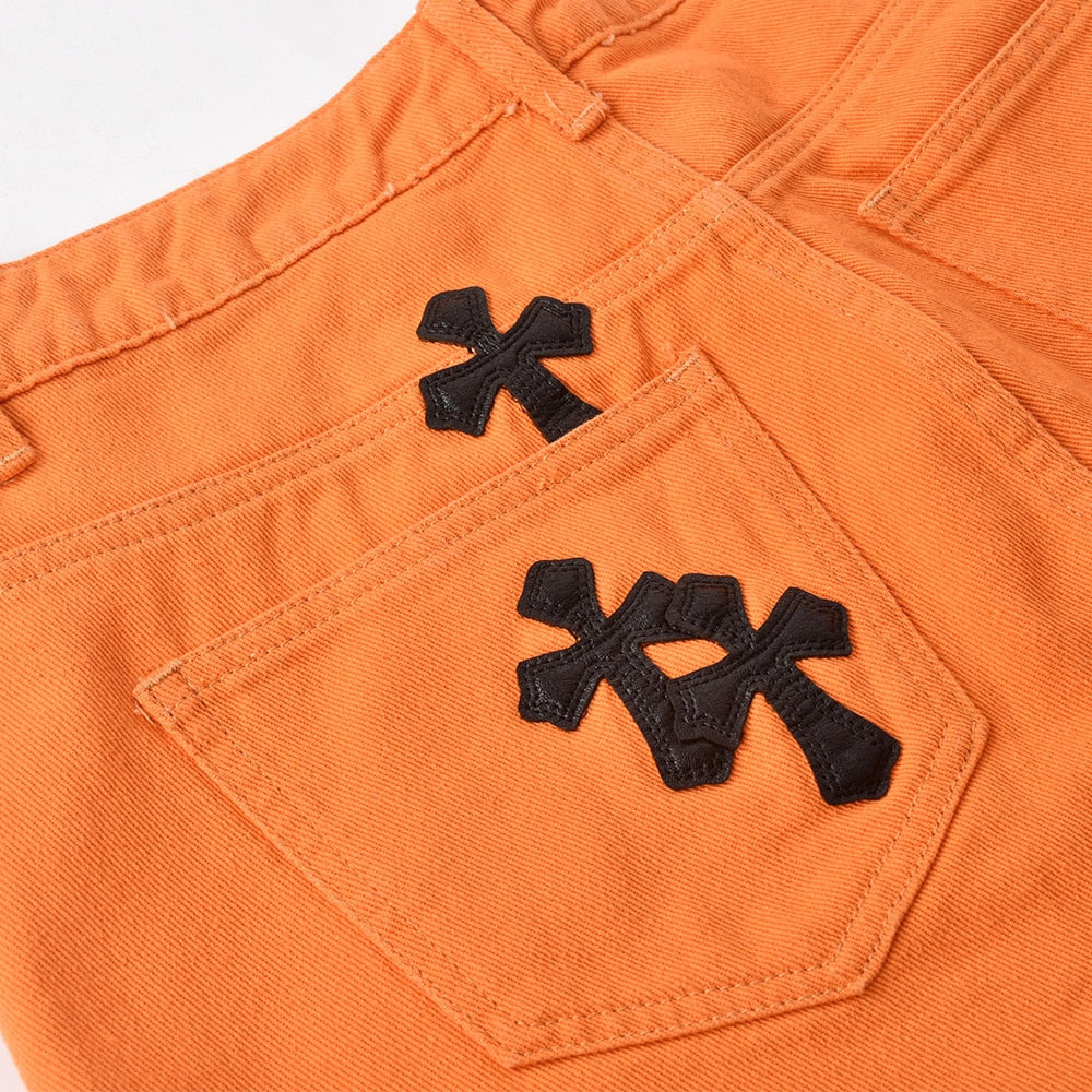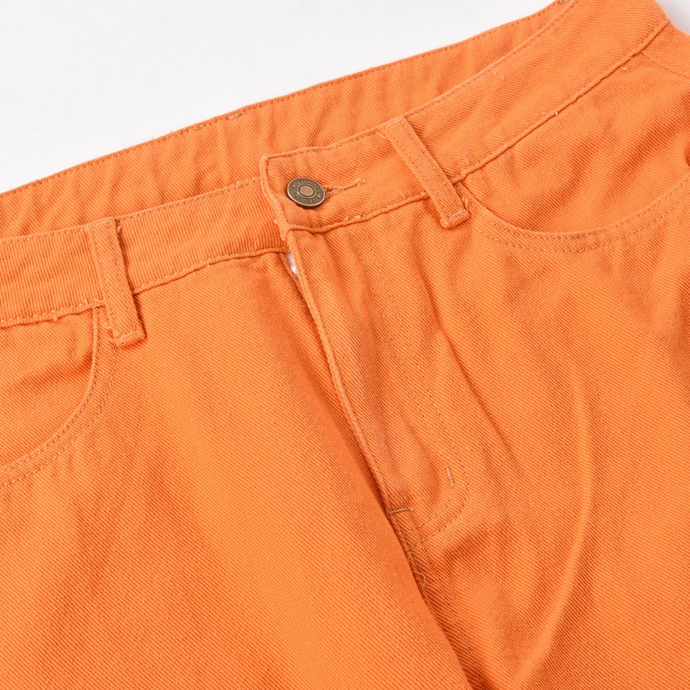 JuliaFashion - 2024 Sifreyr Cross Embroidery Orange Jeans Women Low Waist Straight Streetwear Casual Baggy Jeans