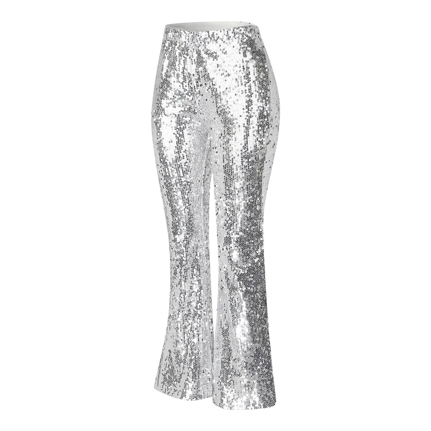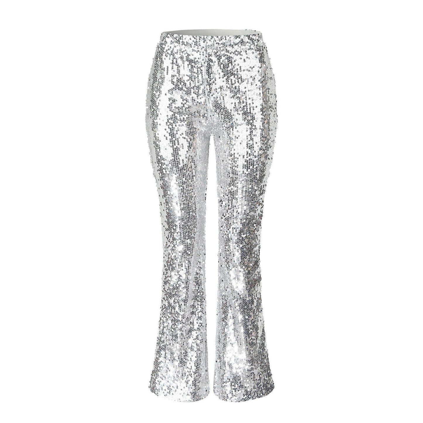 JuliaFashion - Sparkly Silver Sequin Flare Pants