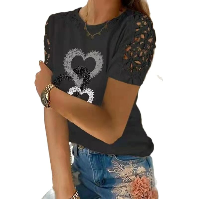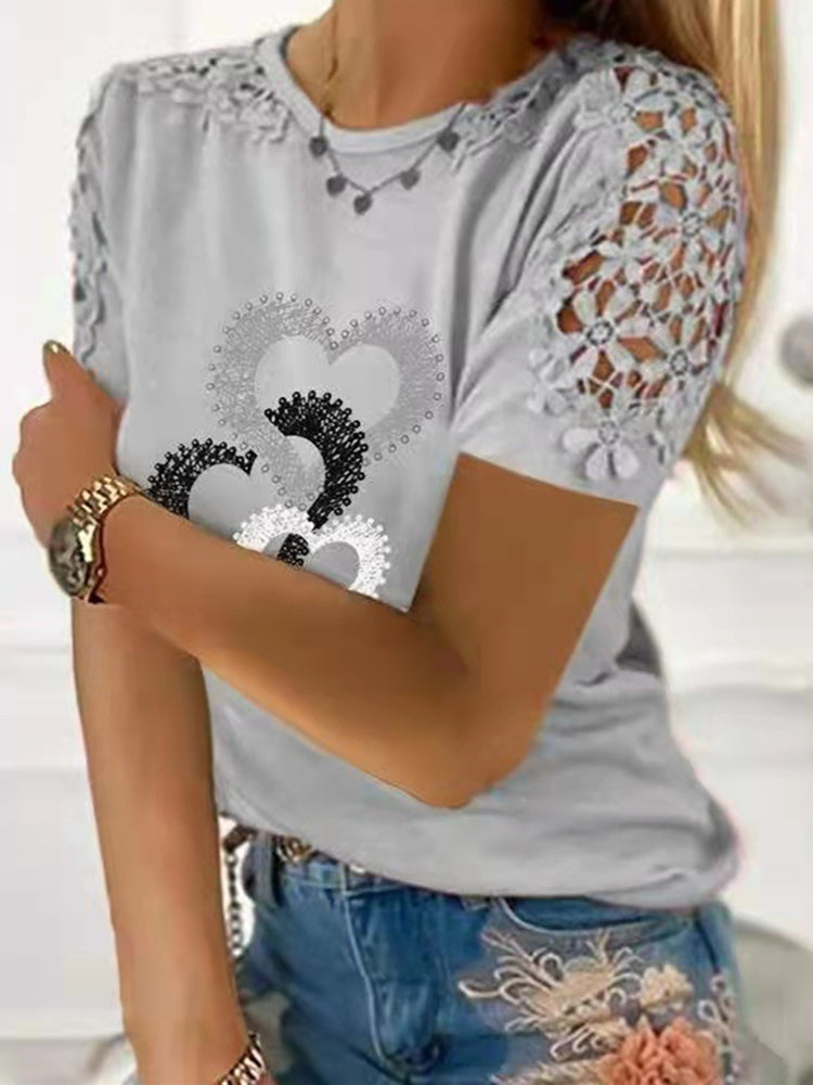 JuliaFashion - 2024 Women's Lace Short Sleeve T-Shirts Loose Pullovers