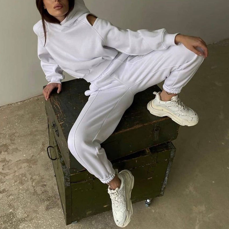 JuliaFashion-Casual Hollow Trouser Suit Waist Elastic Sweatpants Suit