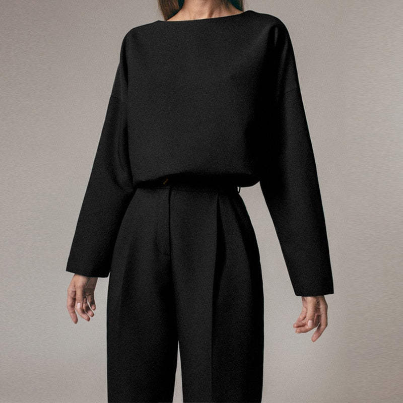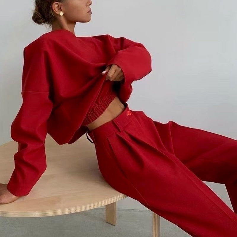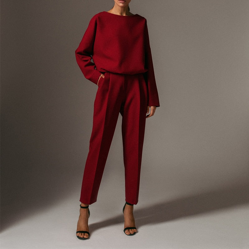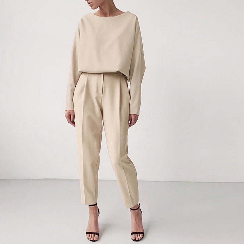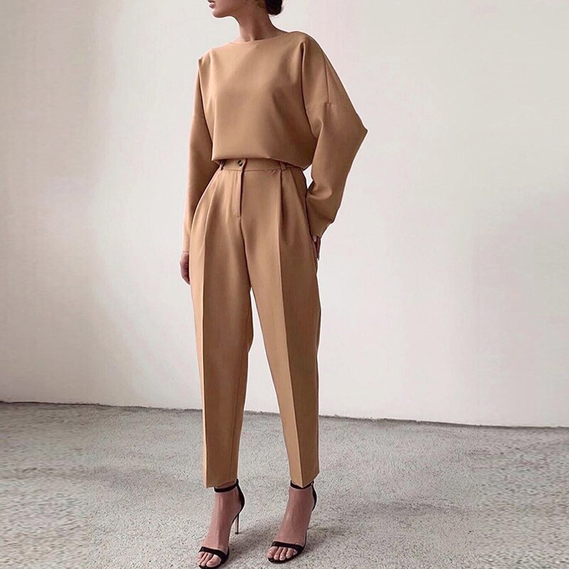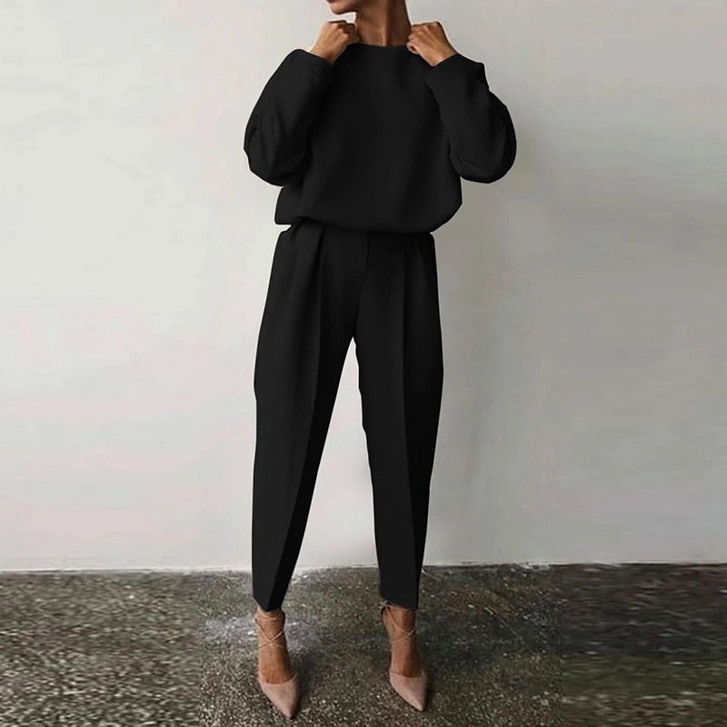JuliaFashion-Casual O-Neck Solid Color 2 Piece Sets