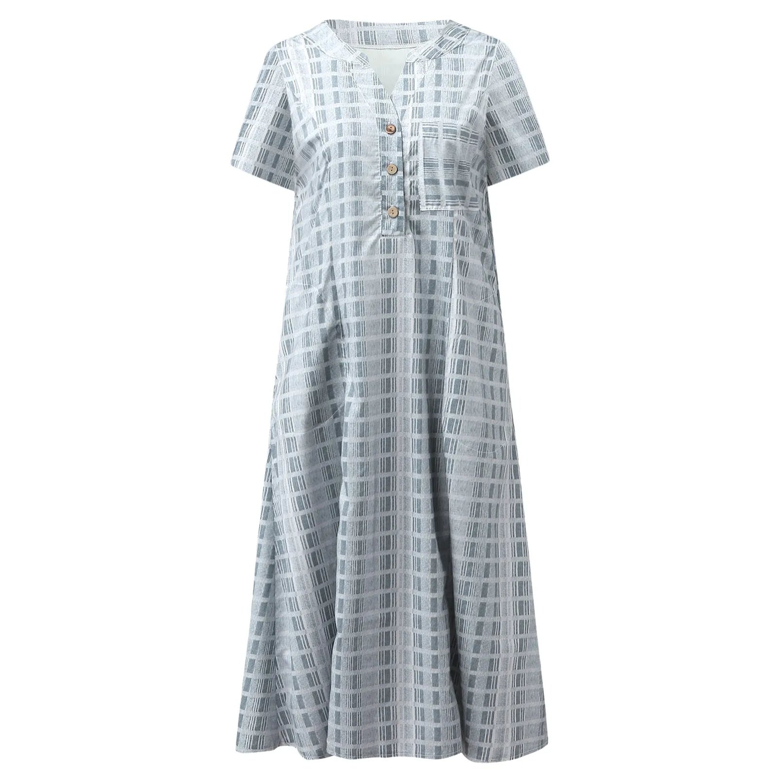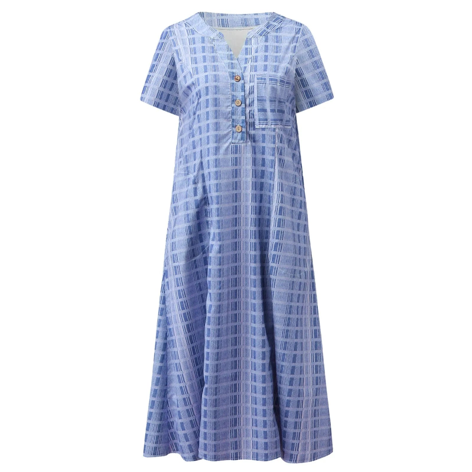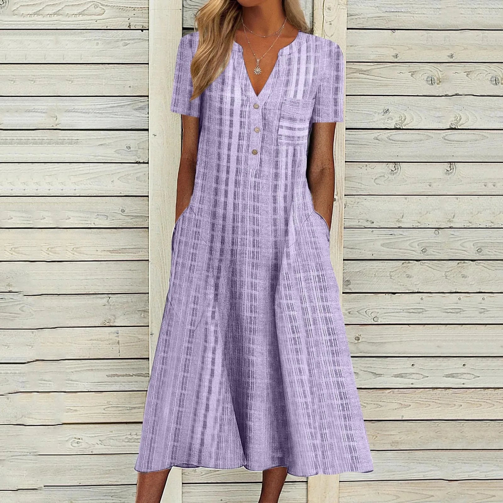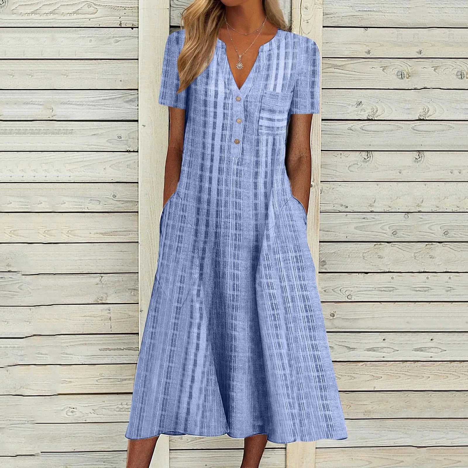 JuliaFashion - Women Fashion Gradient Print Button V Neck Short Sleeve Splice Loose Casual Holiday 2024 Summer Women's Dress