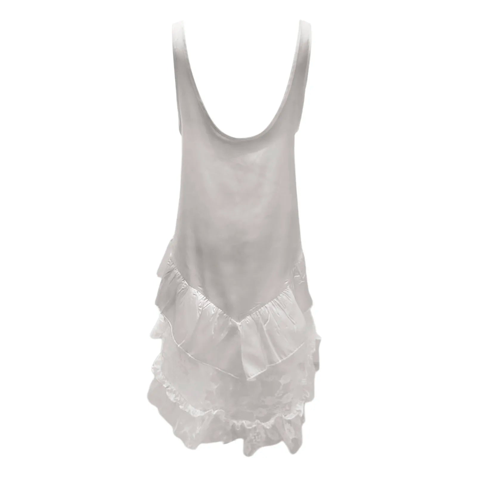 JuliaFashion - Women Lace Mini Sleeveless Backless V Neck Flowy Loose Short Tank Summer Y2K Aesthetics Casual Solid Dress