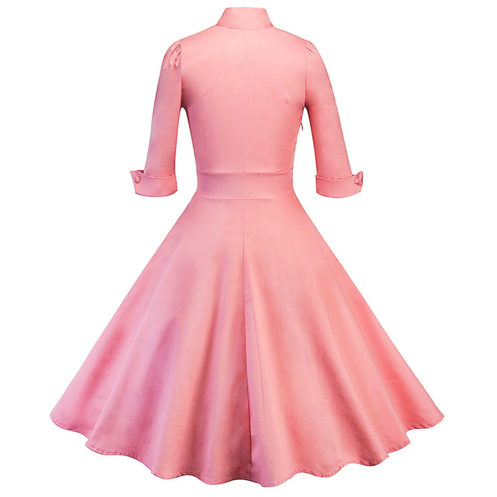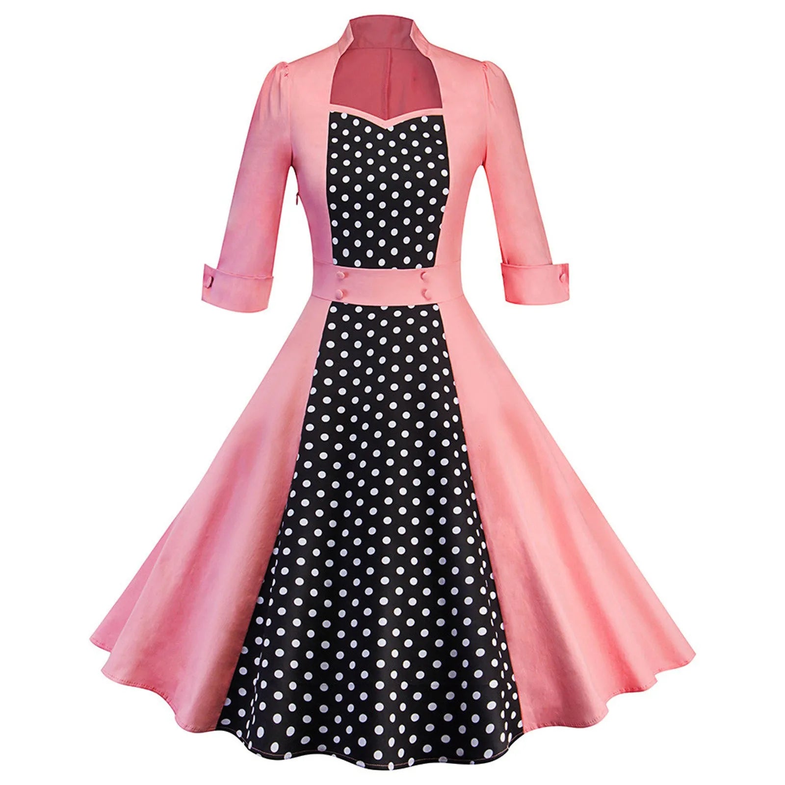 JuliaFashion - Women Robe Retro Vintage Casual Polka Dot Stitching 50s 60s Rockabilly Swing Pin Up Elegant Tunic Party Dress