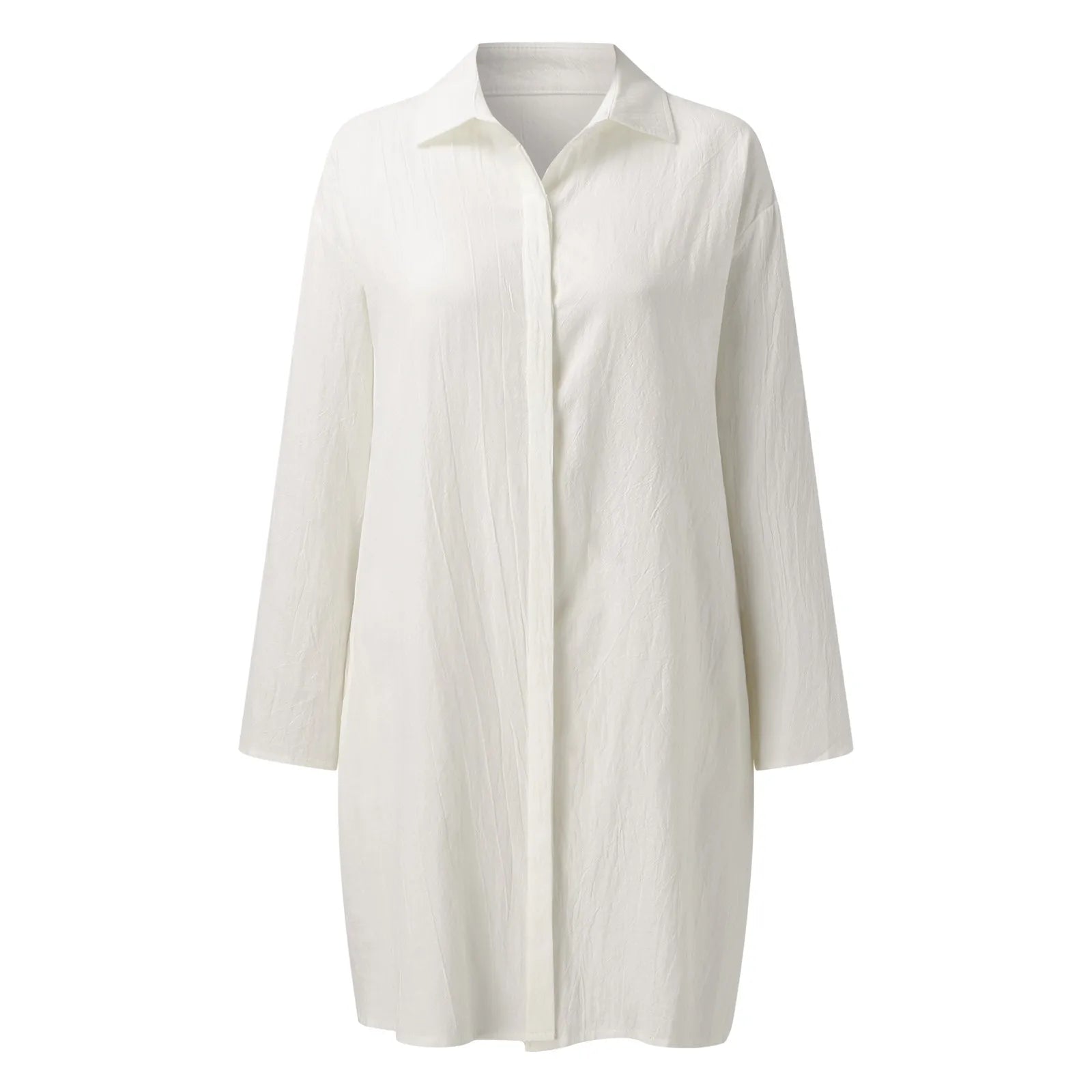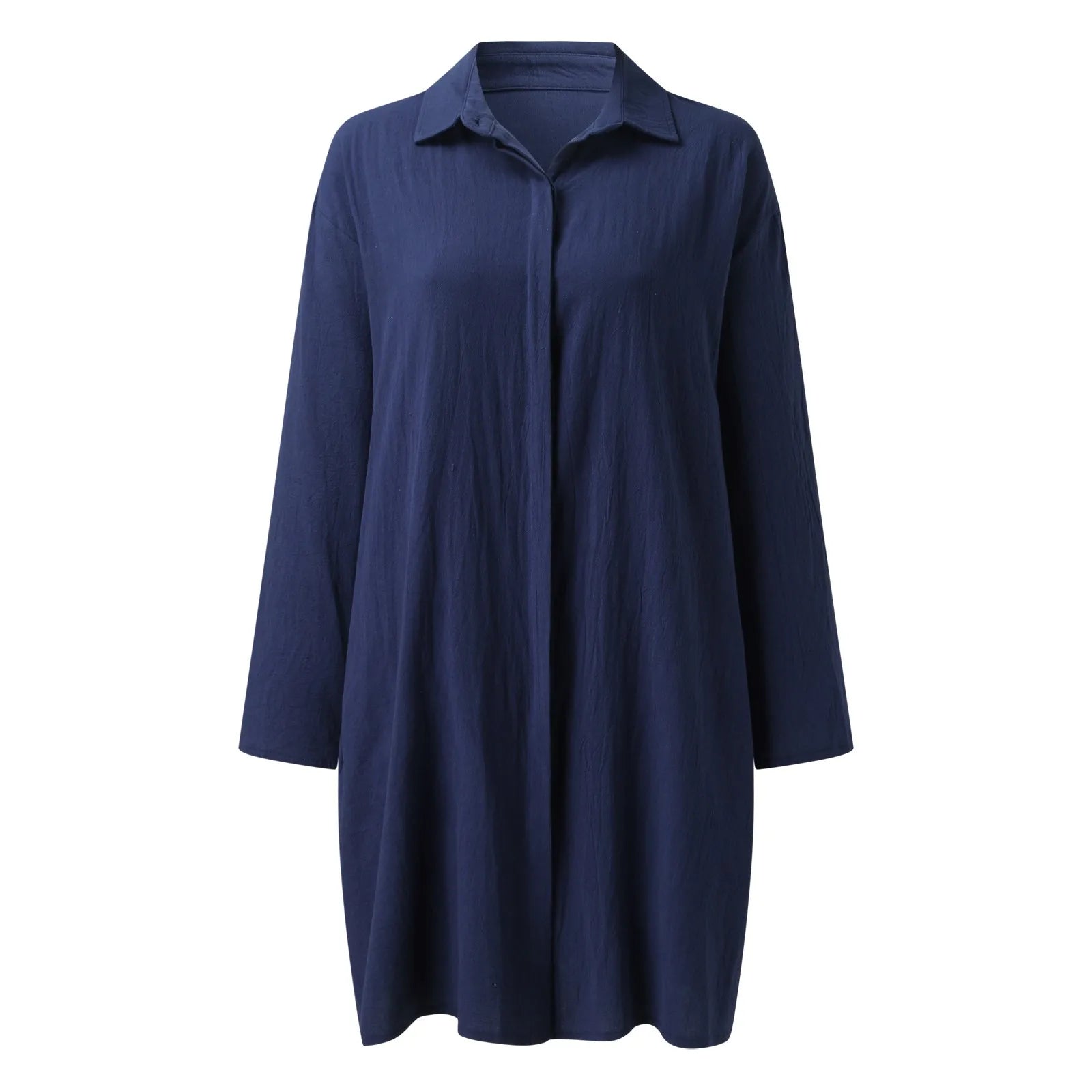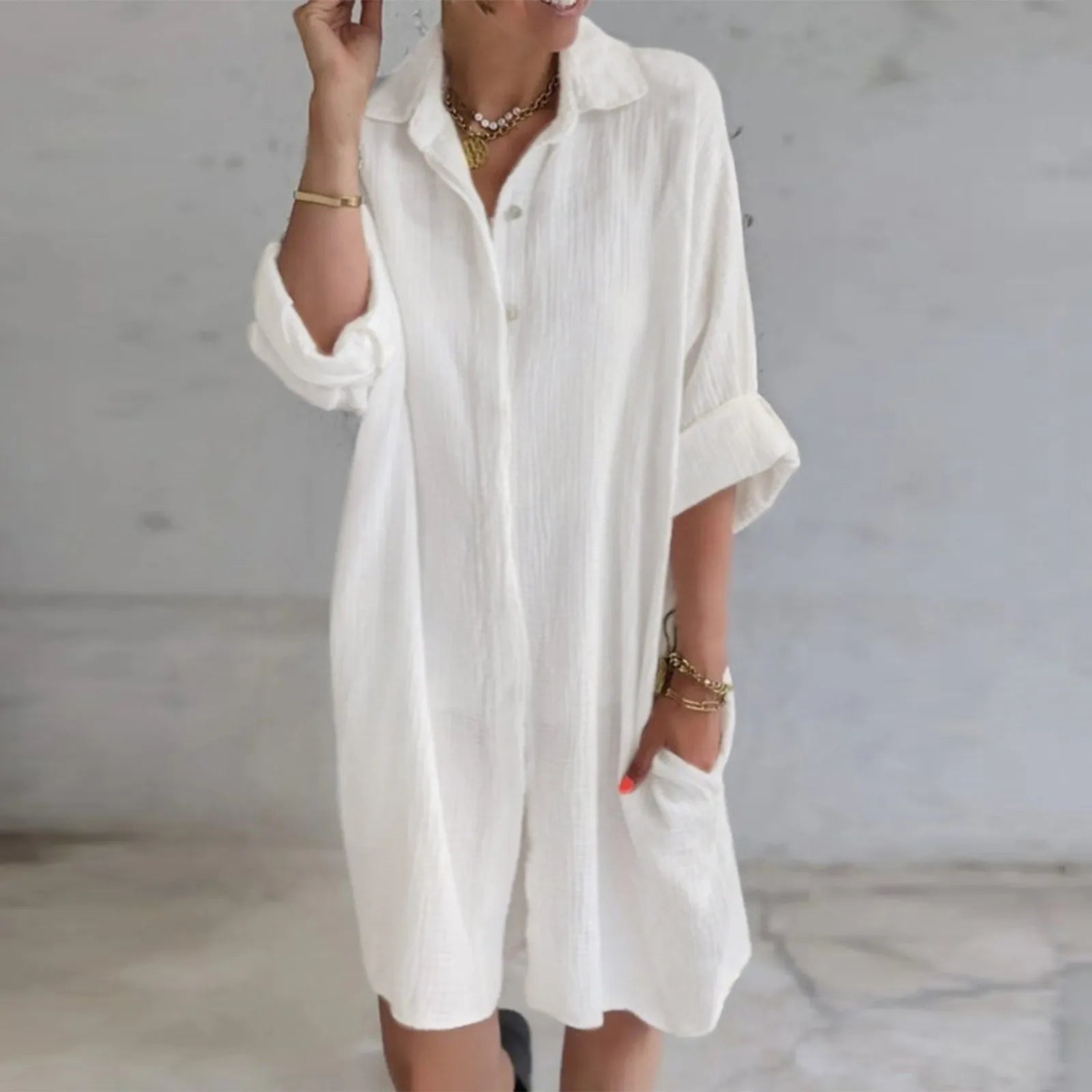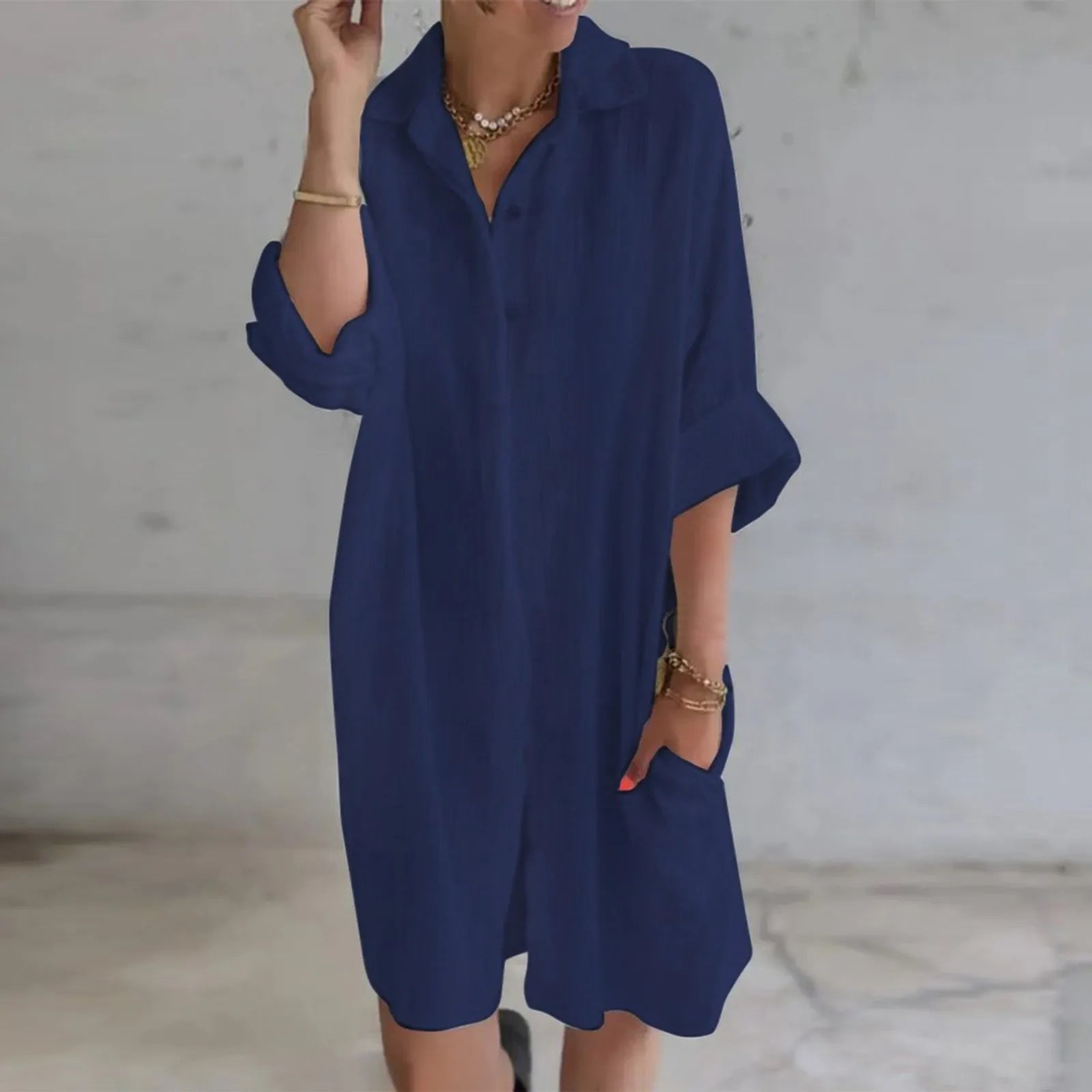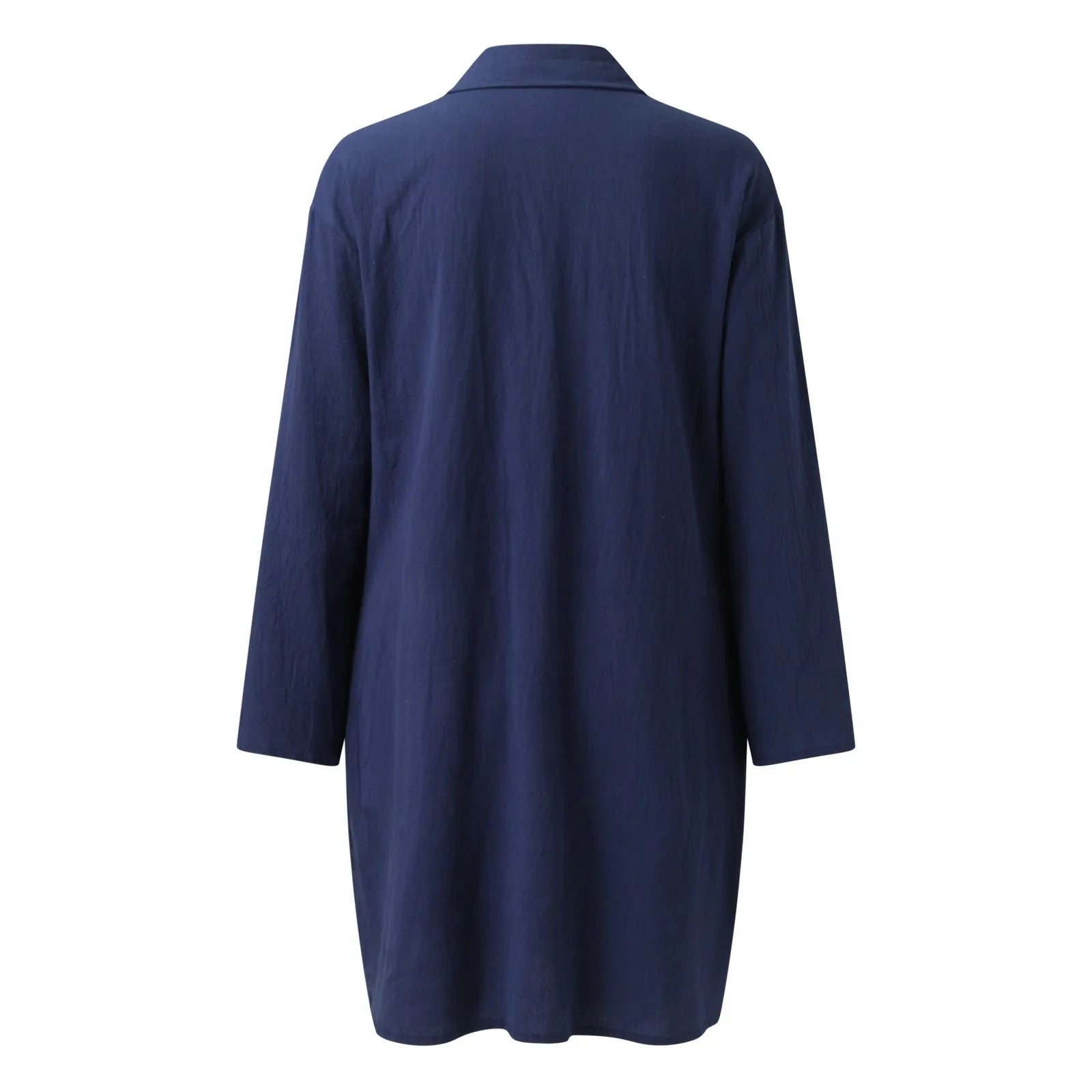 JuliaFashion - Women's Casual Loose Solid Color Cotton Linen Pockets Long Shirt Female Casual Elegant Loose Midi Harajuku Dress